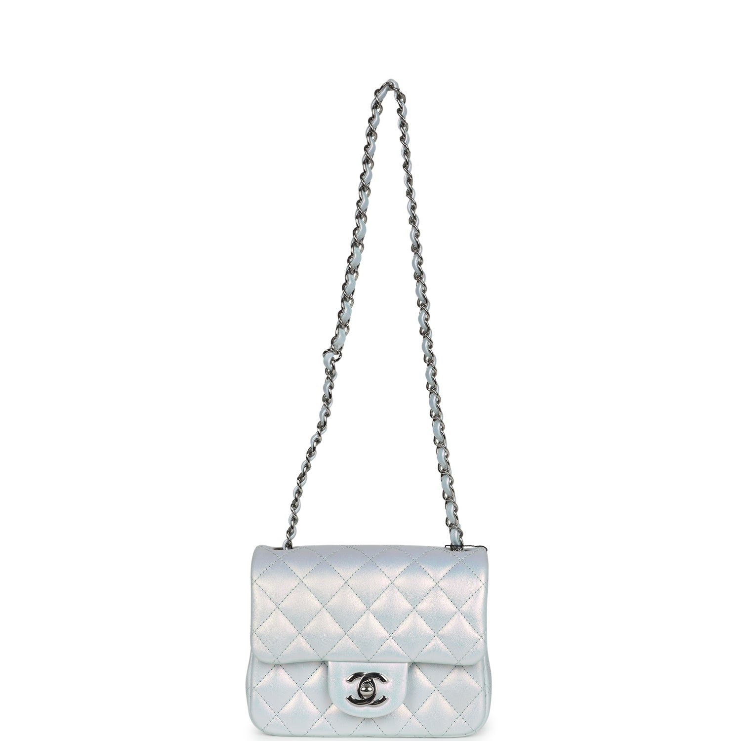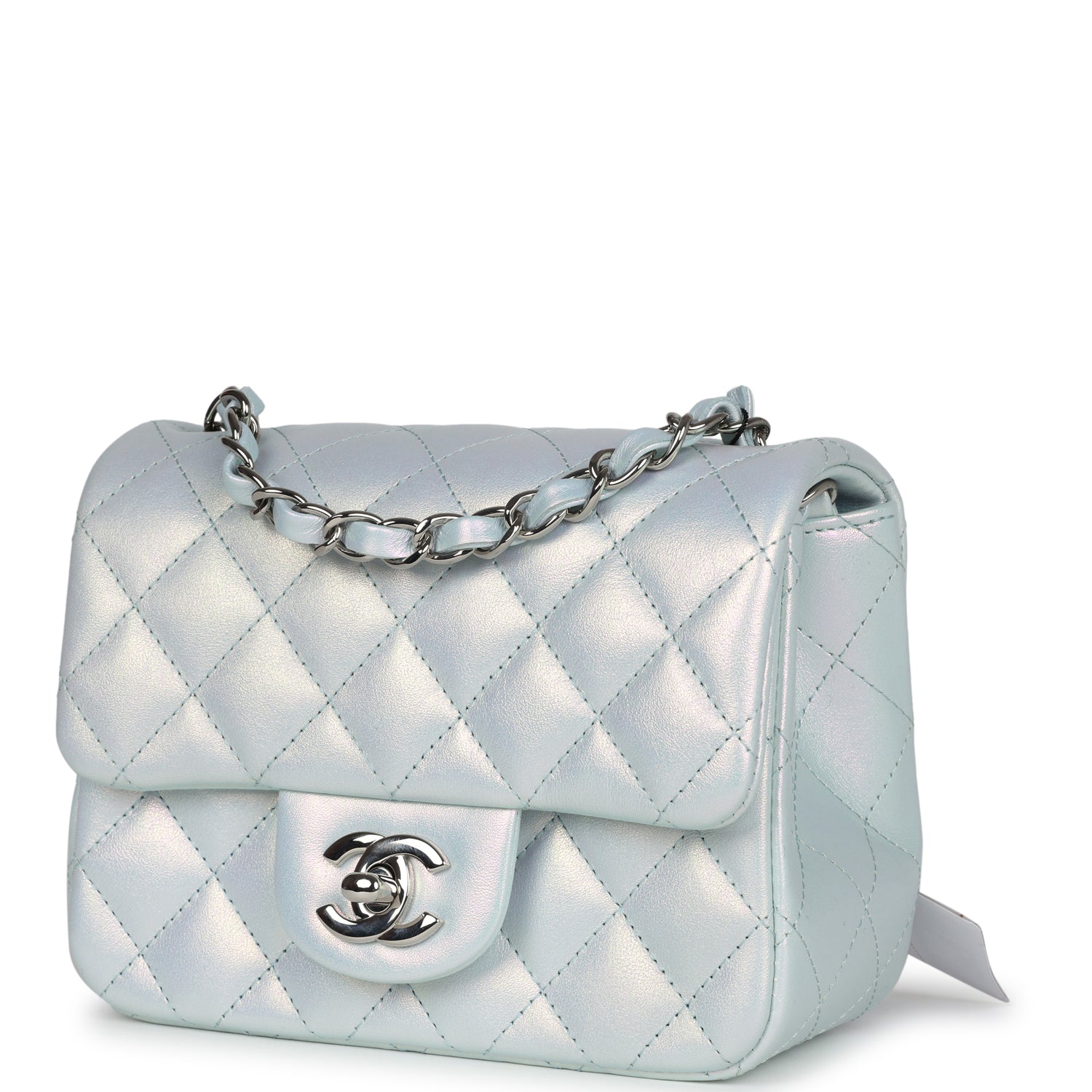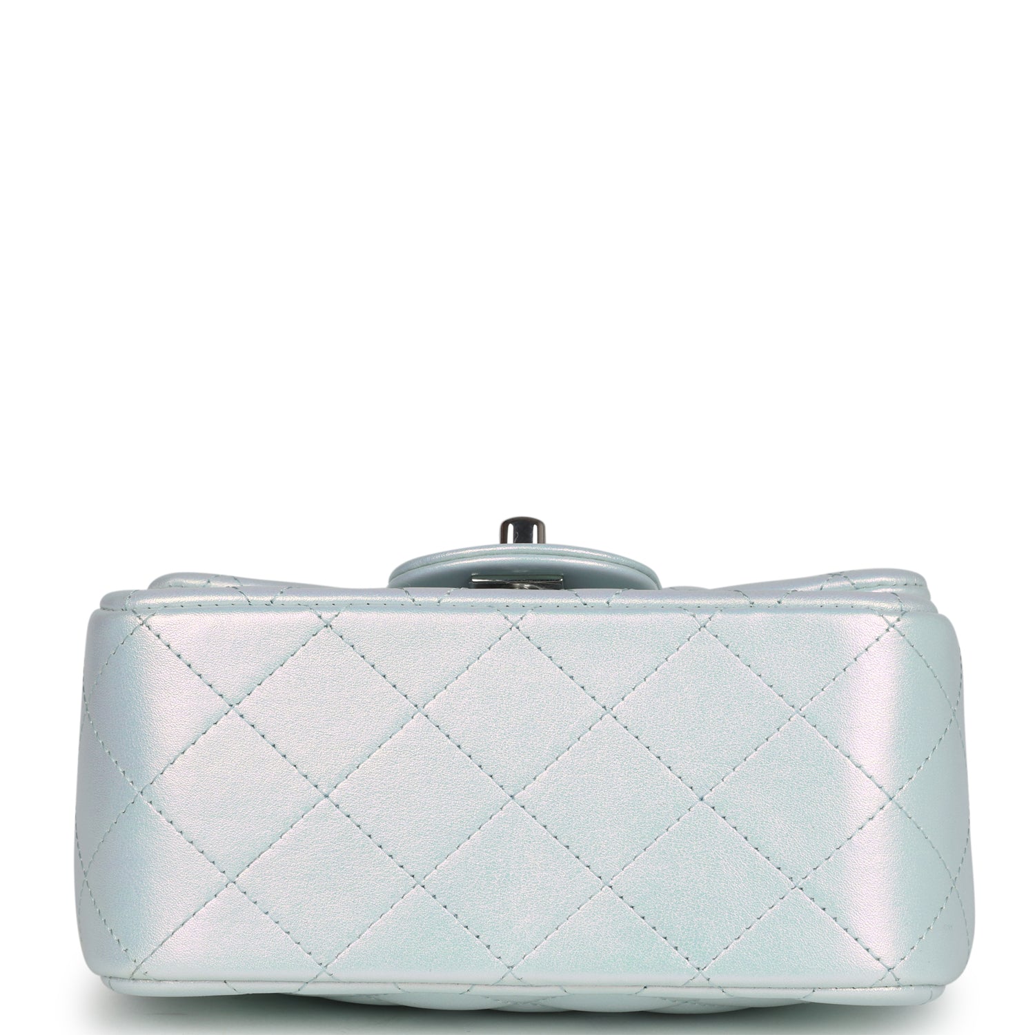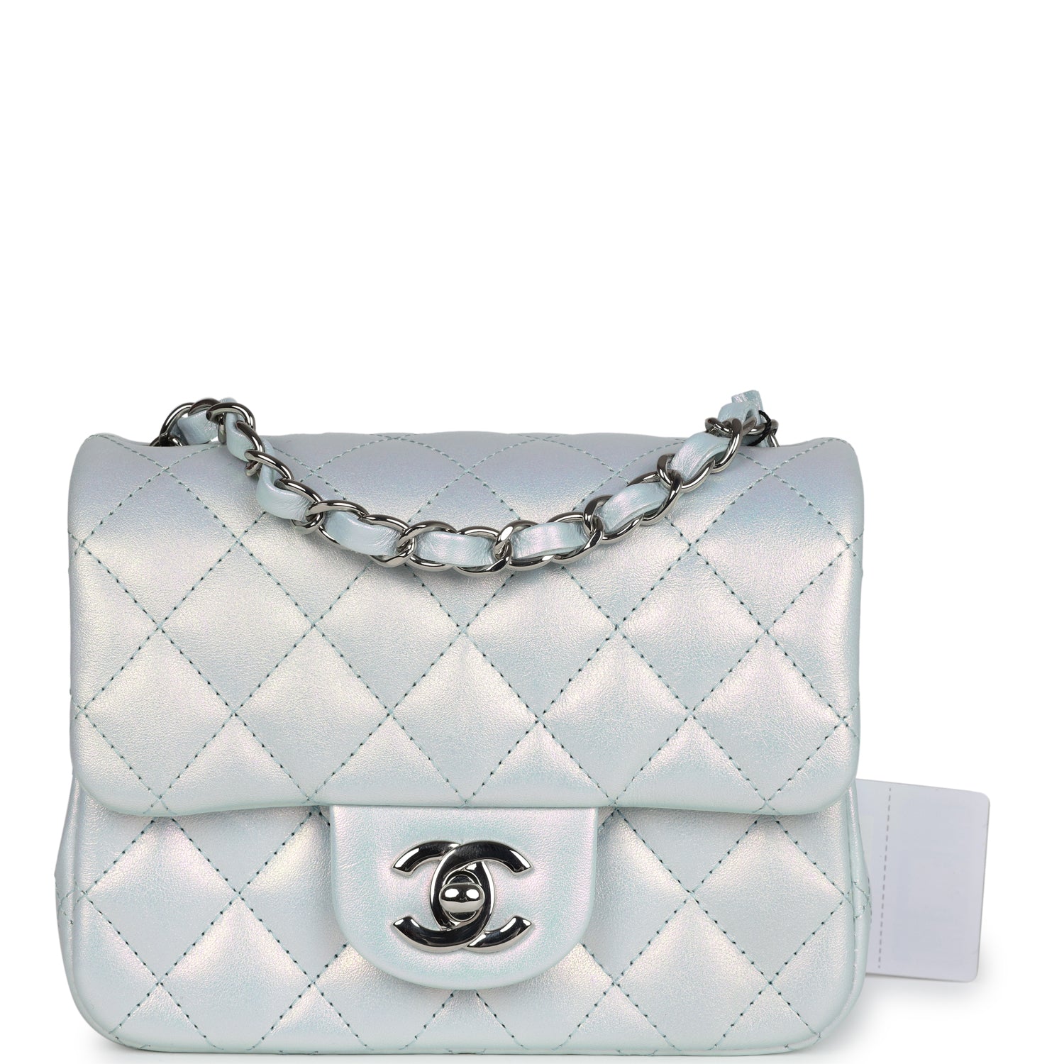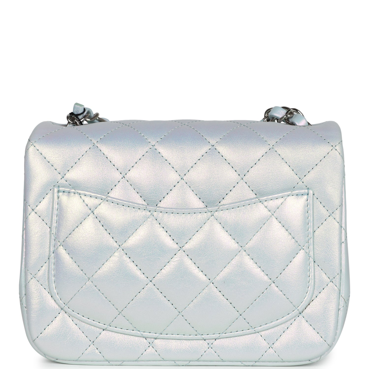 Chanel Mini Classic Square Flap Bag Blue Iridescent Calfskin Silver Hardware