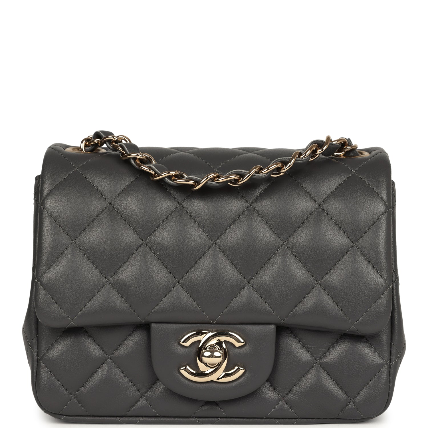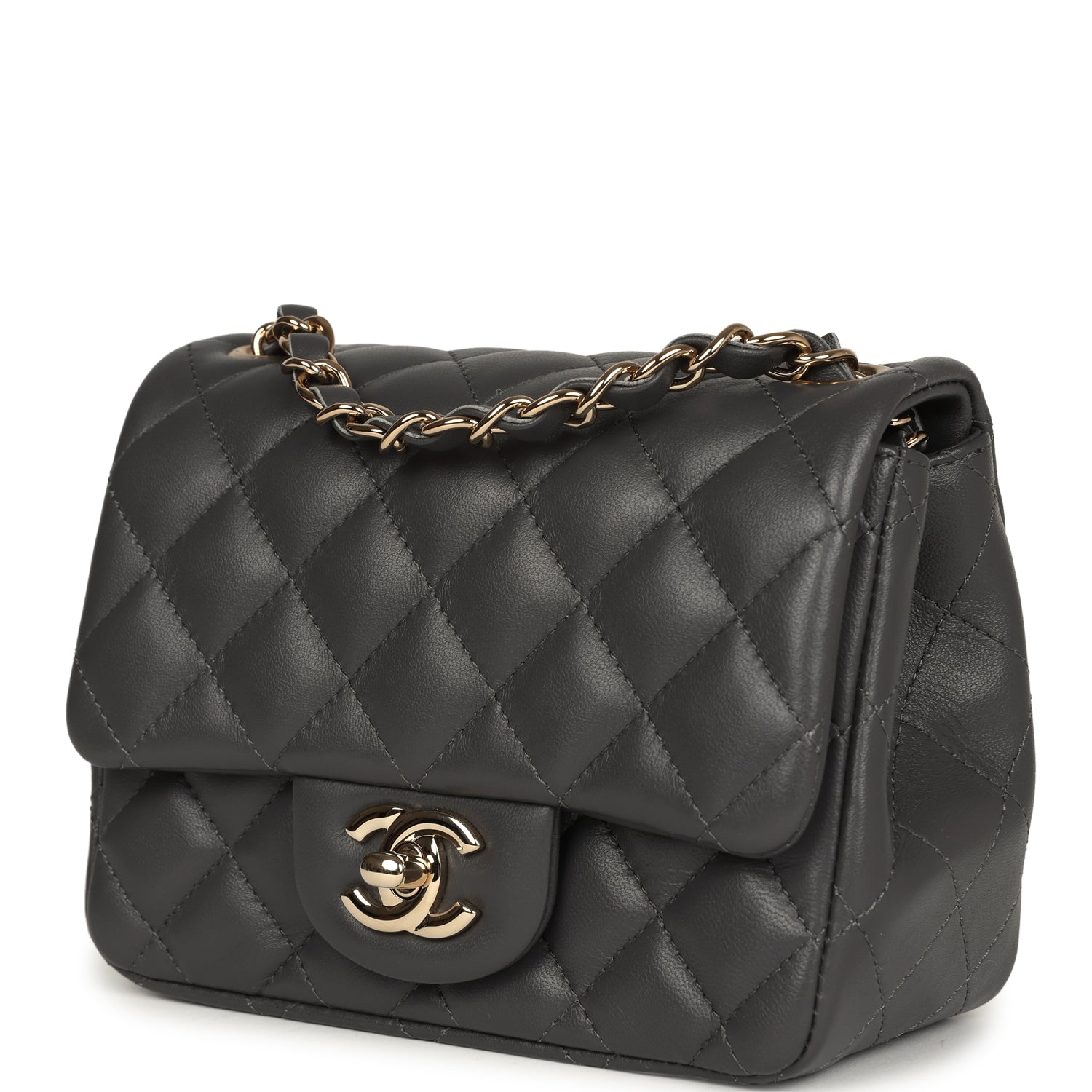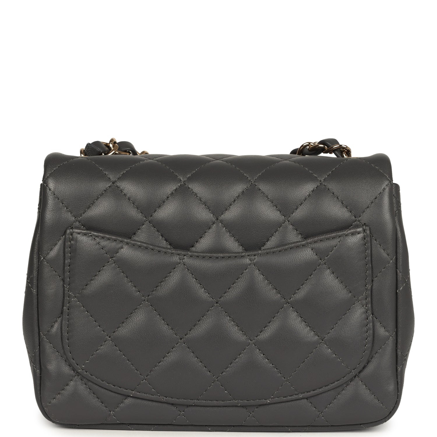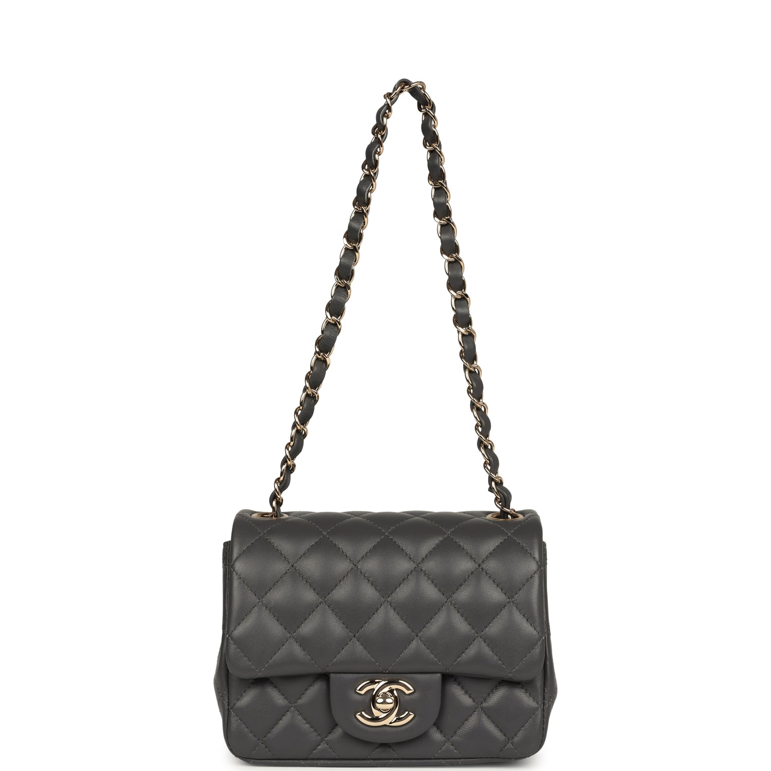 Chanel Mini Square Flap Bag Dark Grey Lambskin Light Gold Hardware