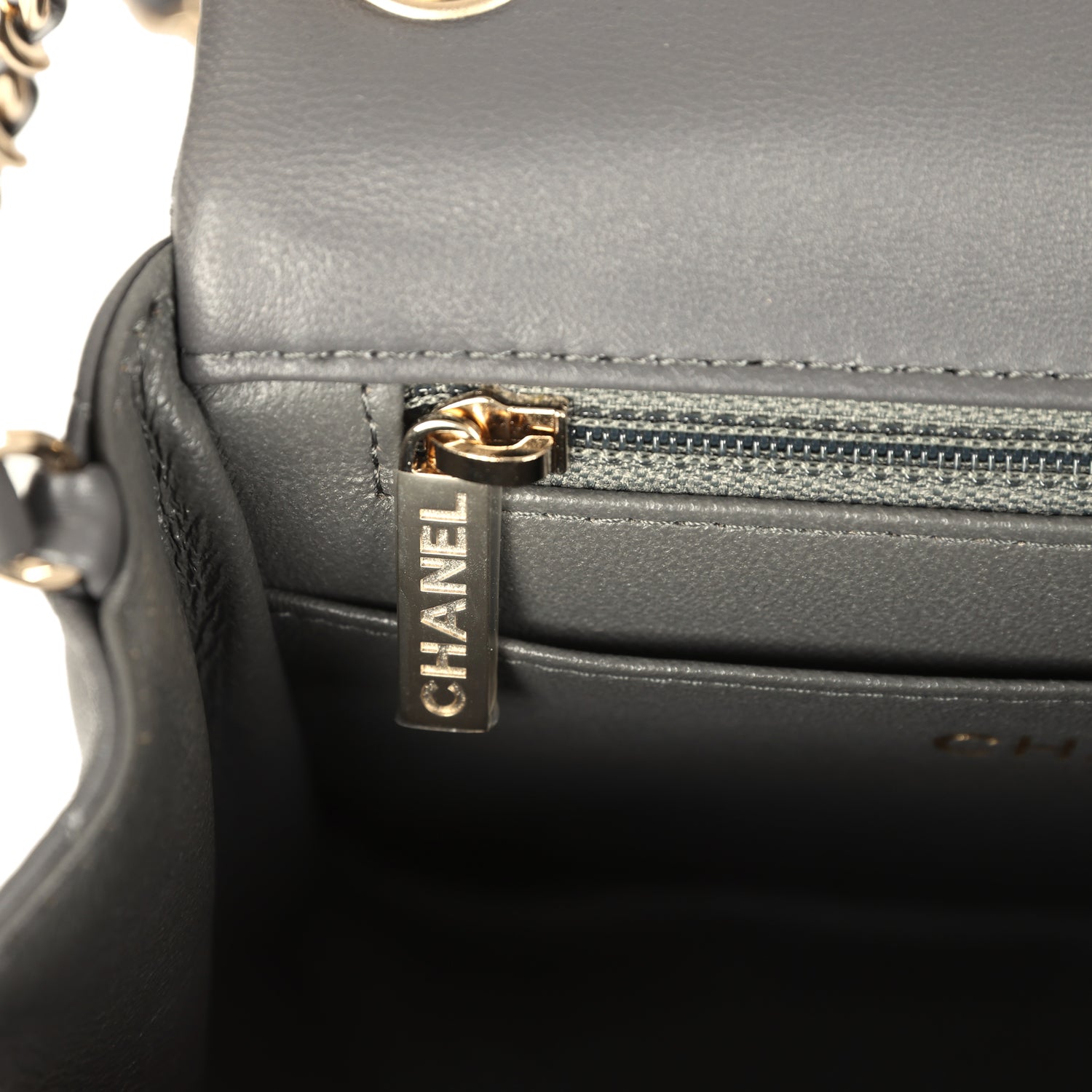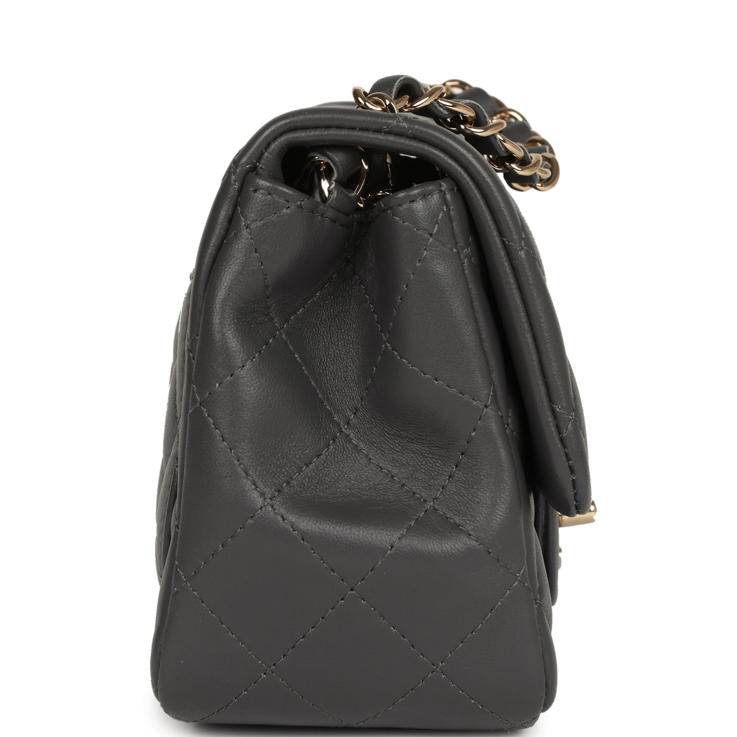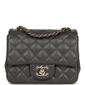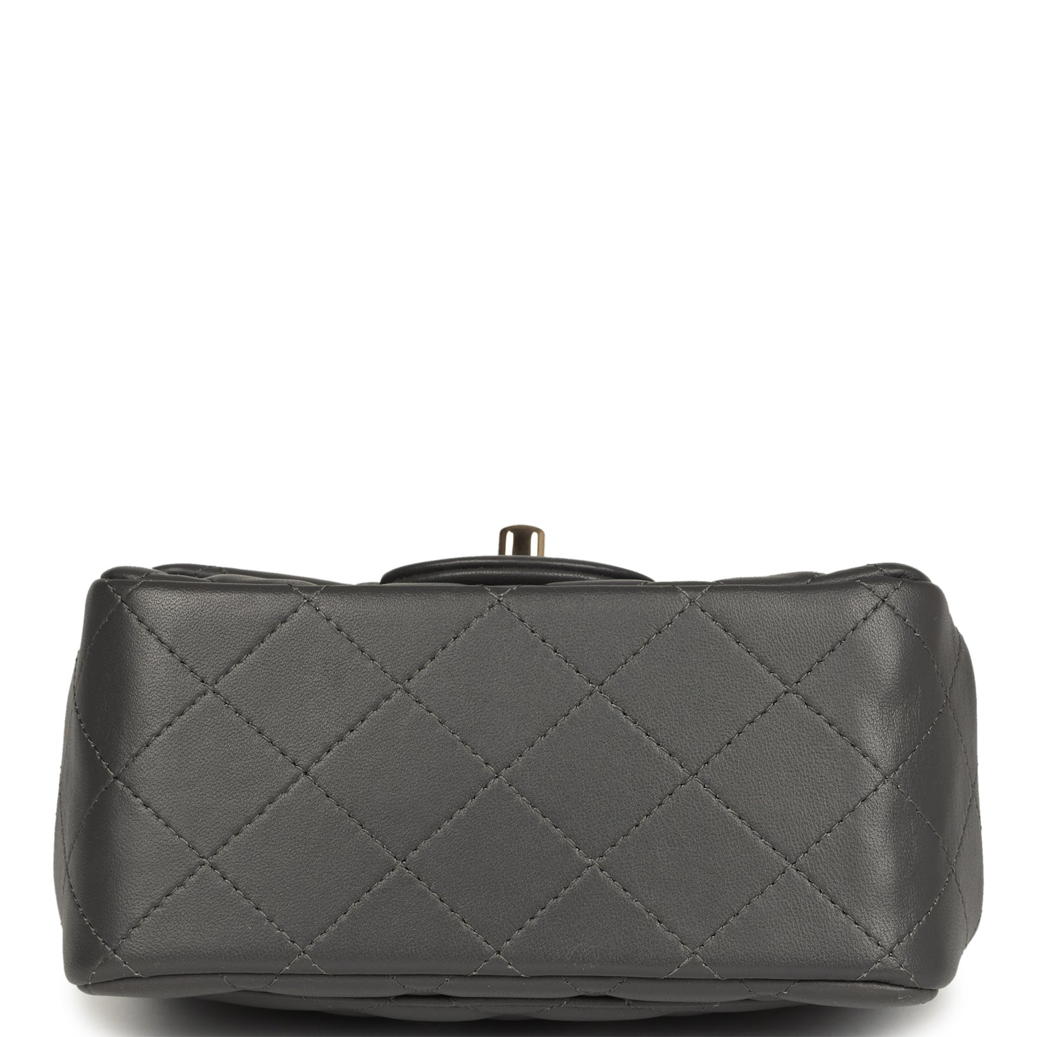 Chanel Mini Square Flap Bag Dark Grey Lambskin Light Gold Hardware