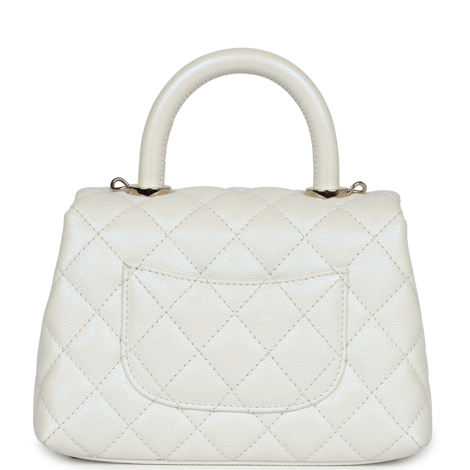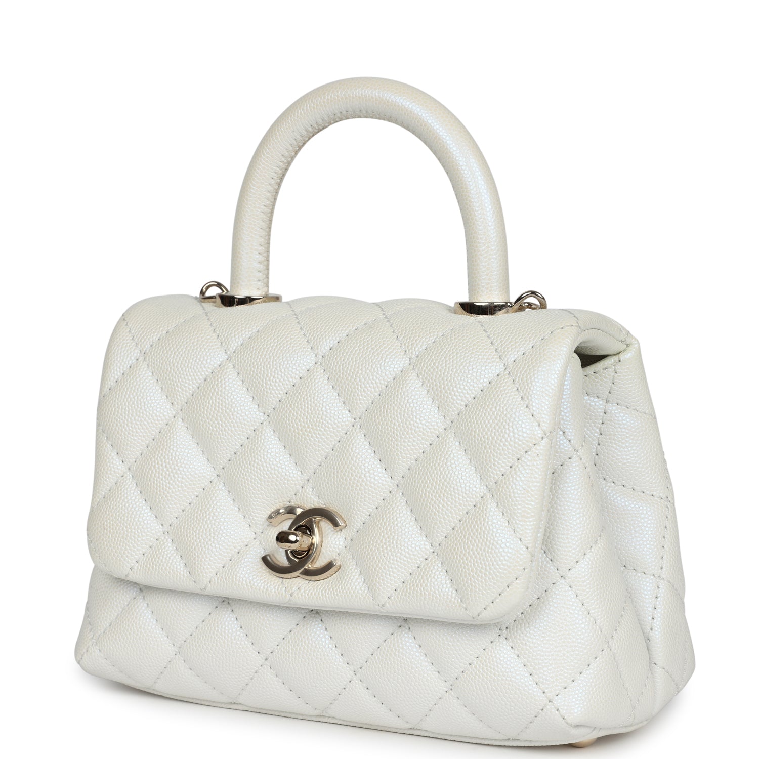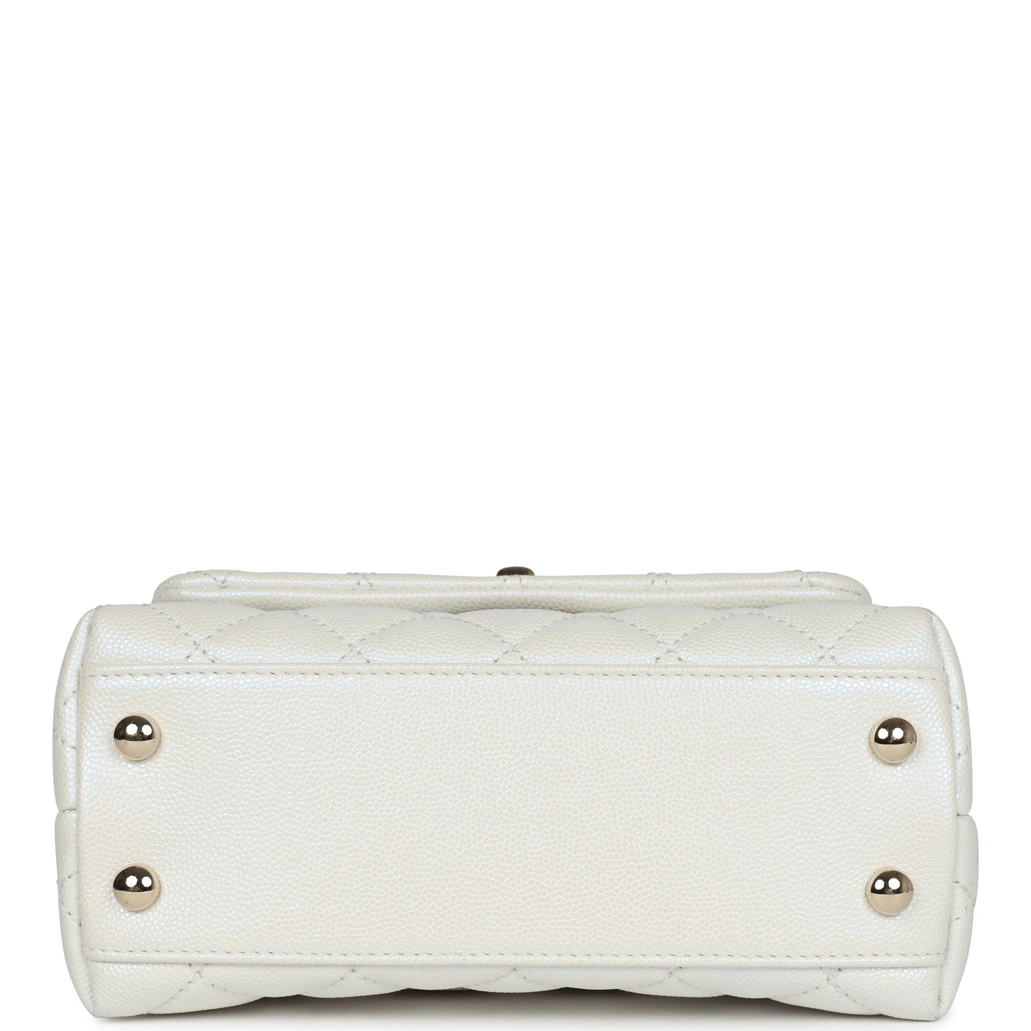 Chanel Mini Coco Handle Flap Bag Ivory Pearly Iridescent Caviar Light Gold Hardware