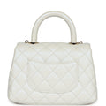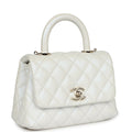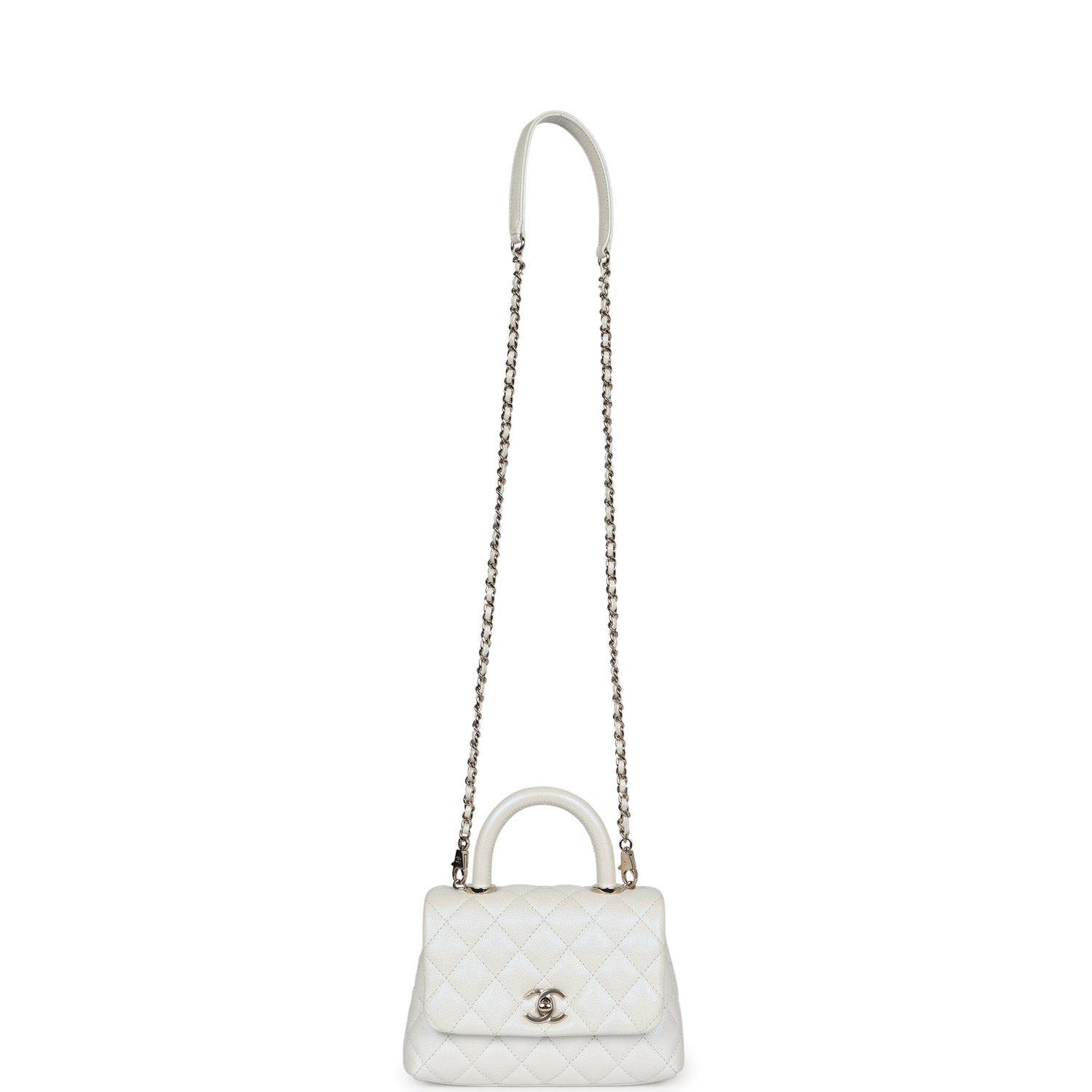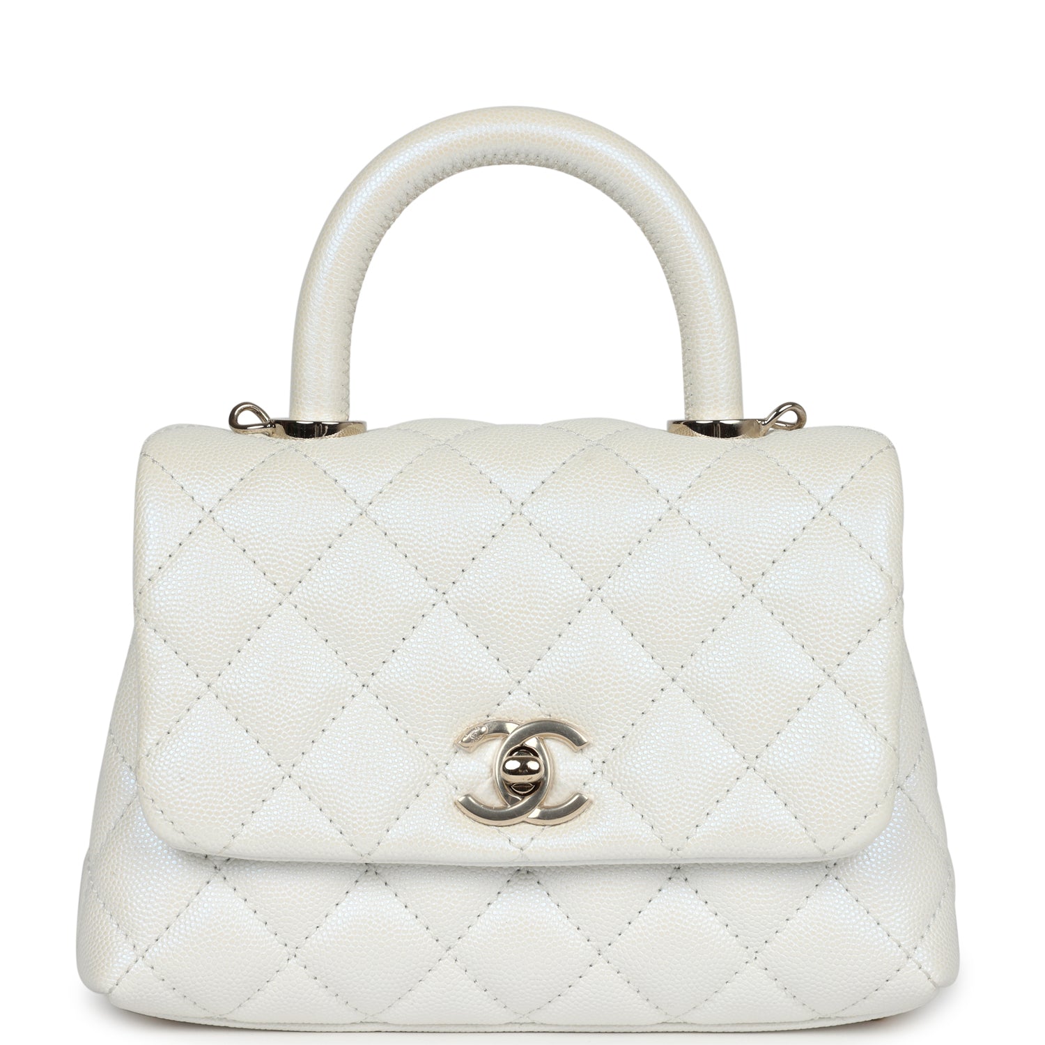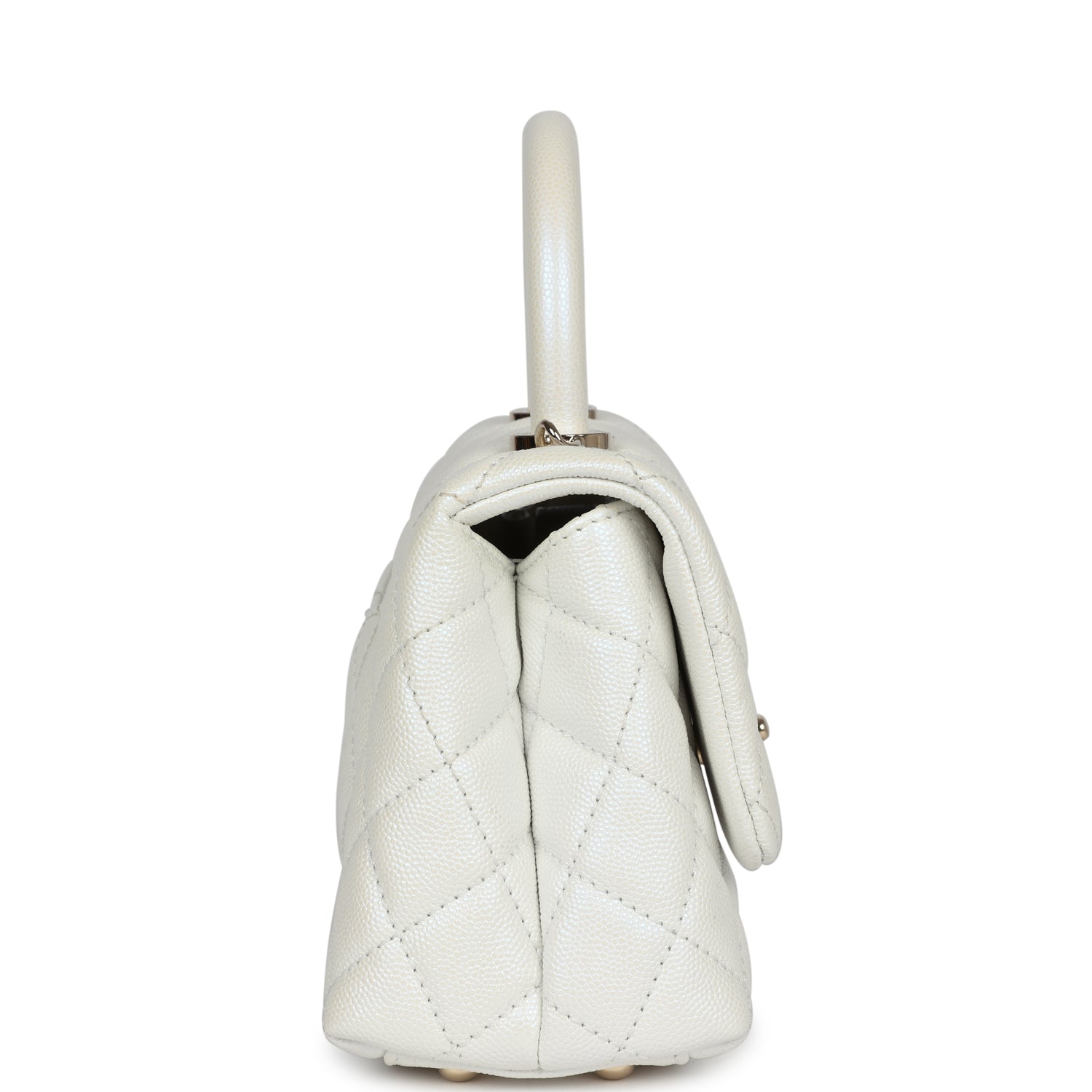 Chanel Mini Coco Handle Flap Bag Ivory Pearly Iridescent Caviar Light Gold Hardware