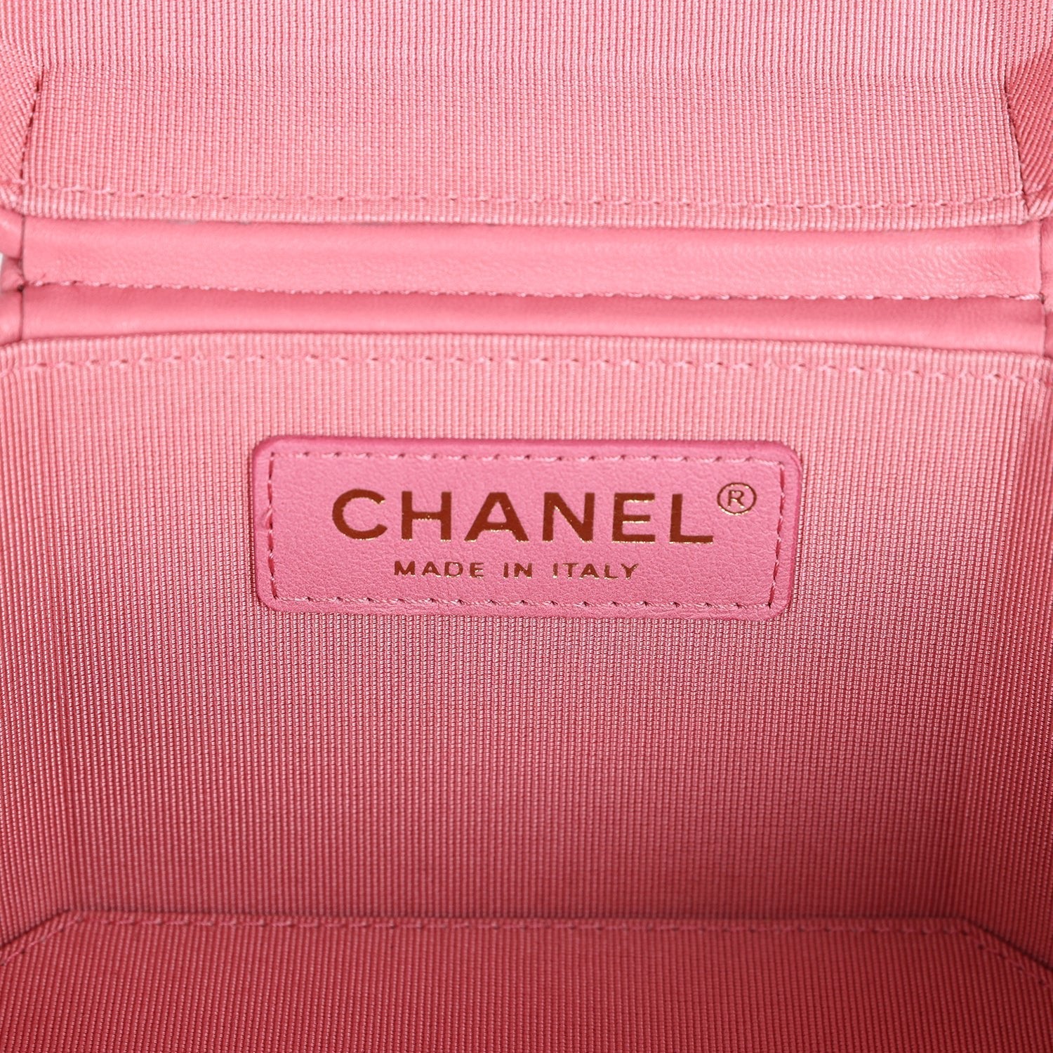 The interior is lined in dark pink grossgrain fabric.