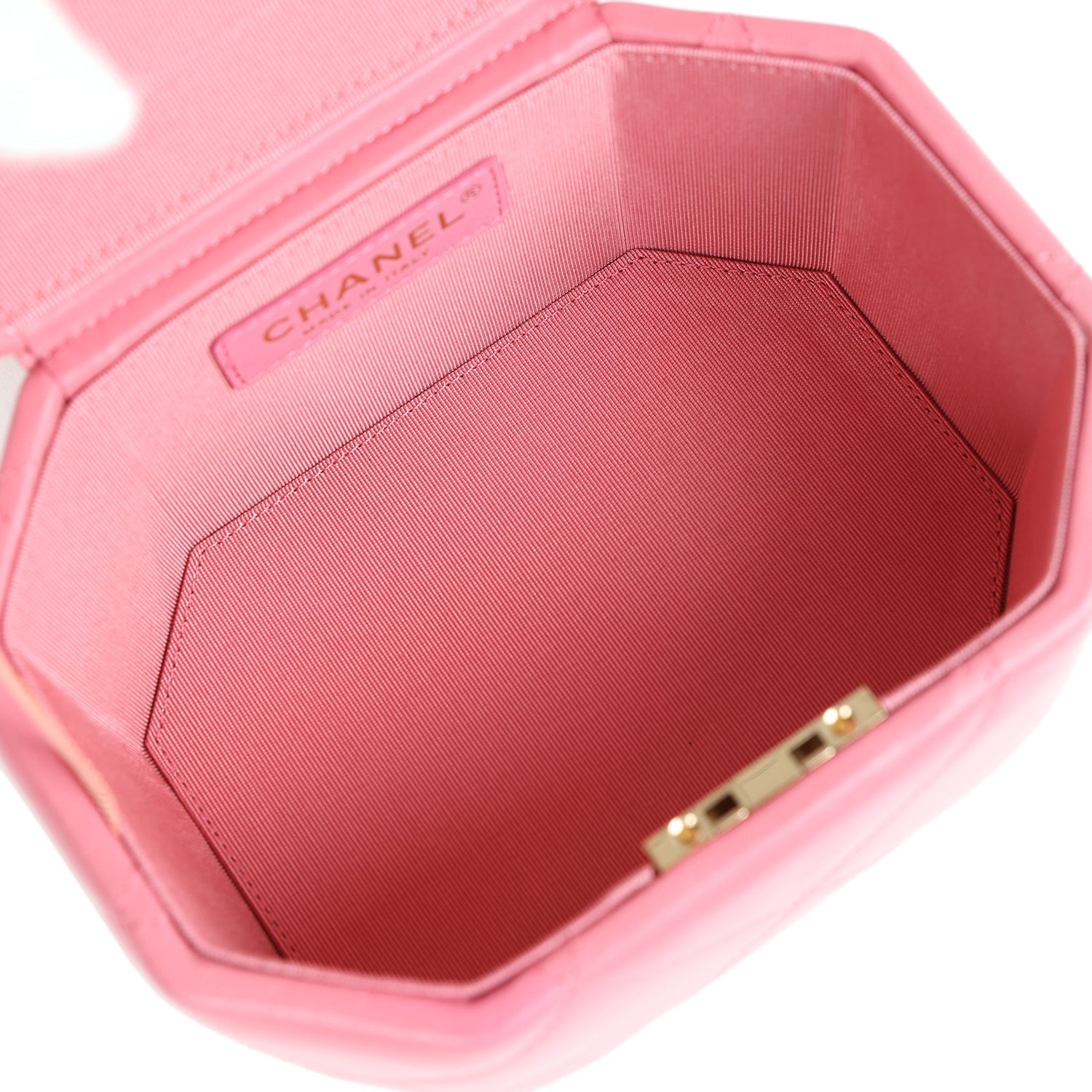 Chanel Mini Hexagon Top Handle Vanity Case Dark Pink Lambskin Gold Hardware