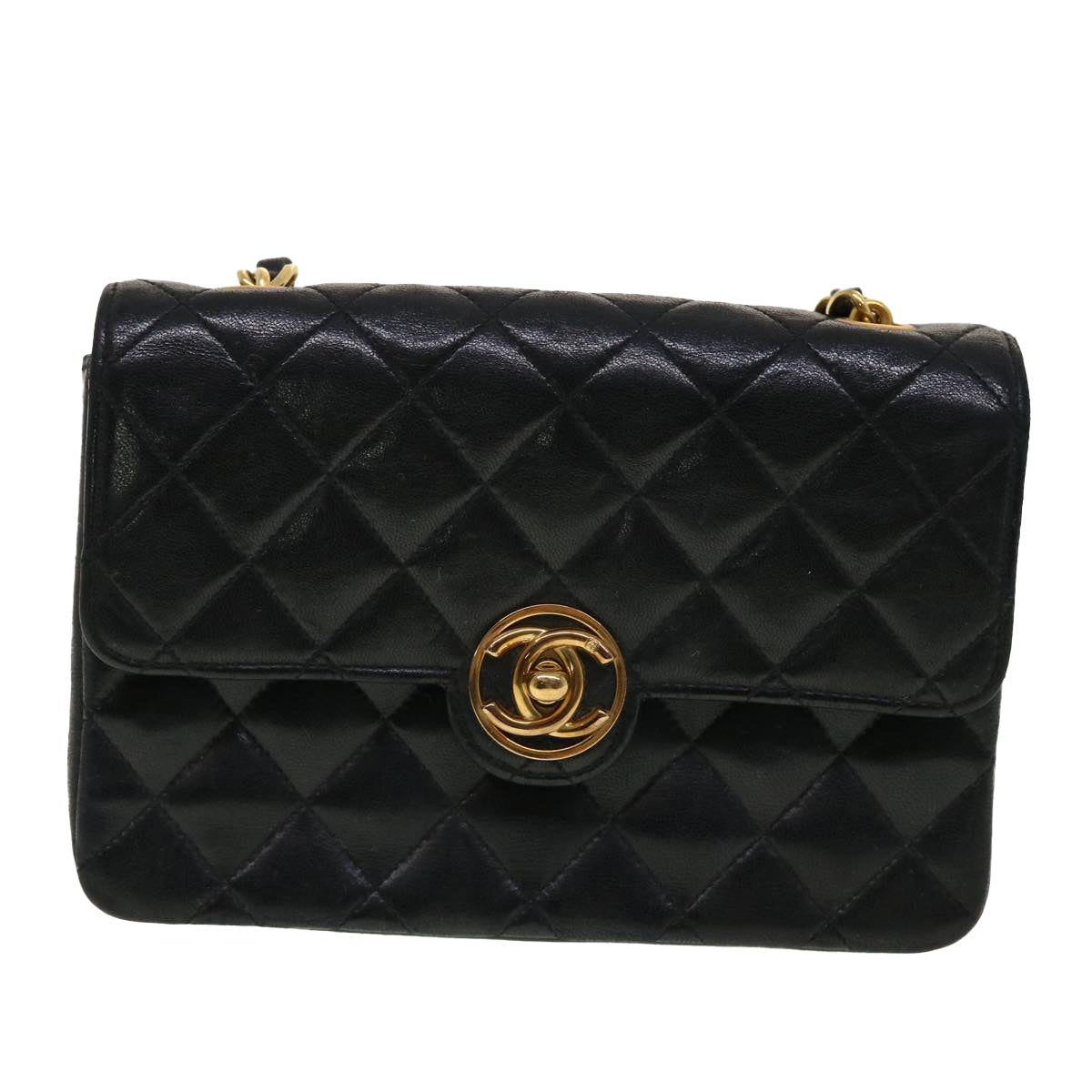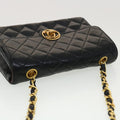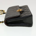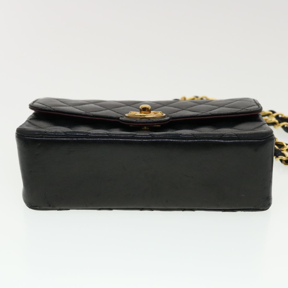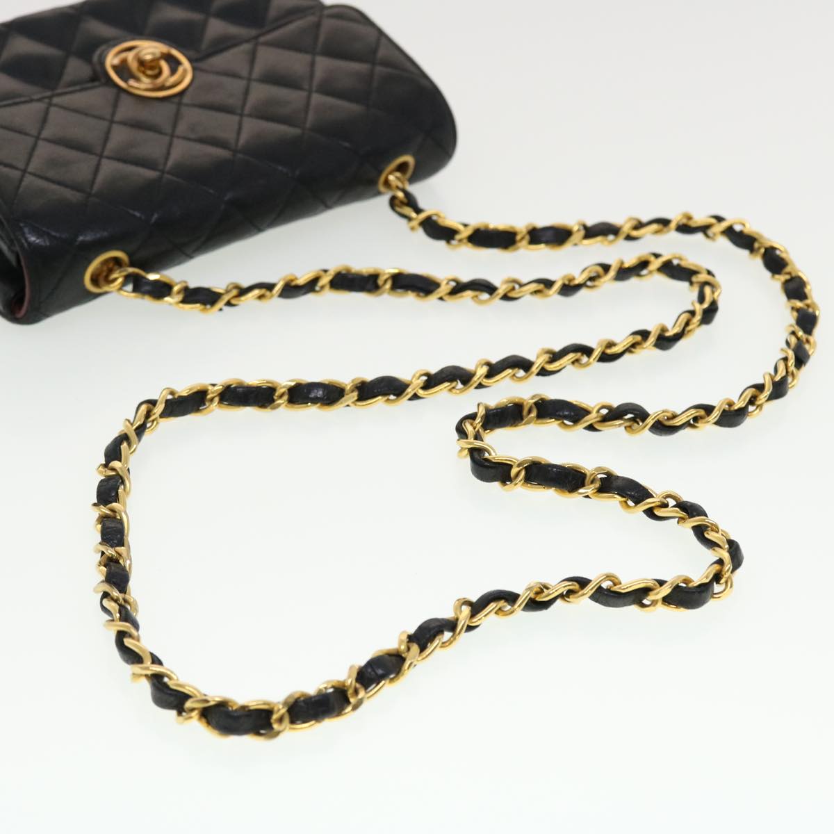 CHANEL Mini Matelasse Chain Shoulder Bag Lamb Skin Black CC Auth 42862A