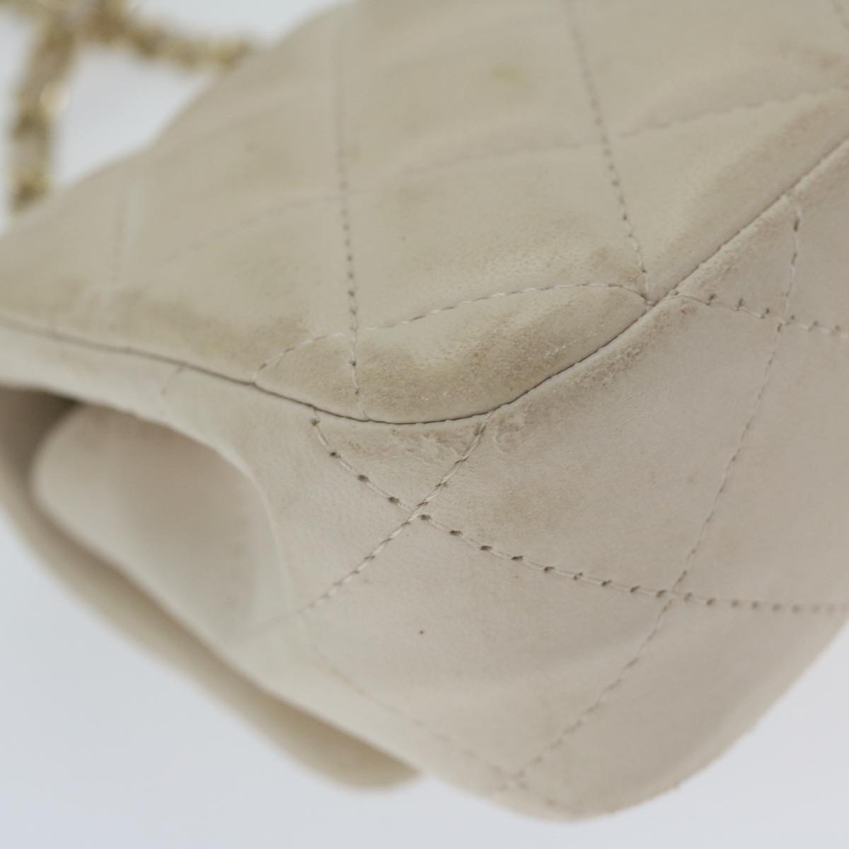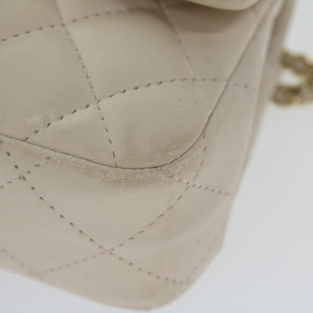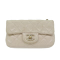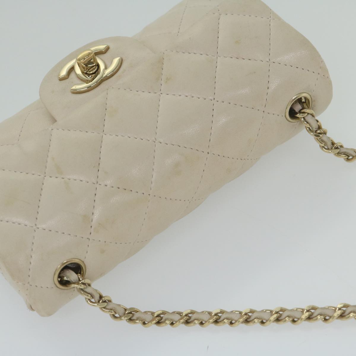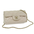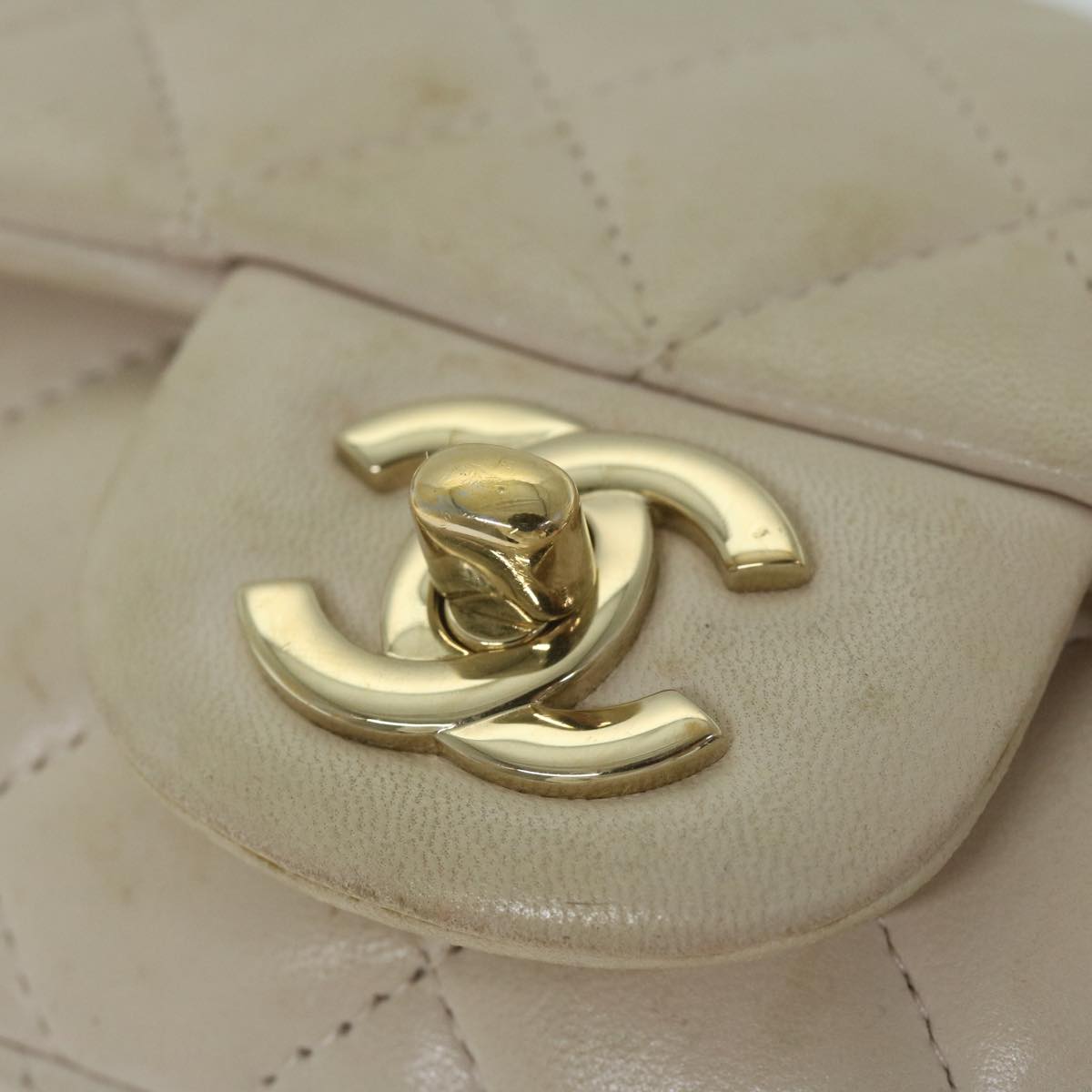 CHANEL Mini Matelasse Turn Lock Shoulder Bag Lamb Skin Beige CC Auth ar10895A