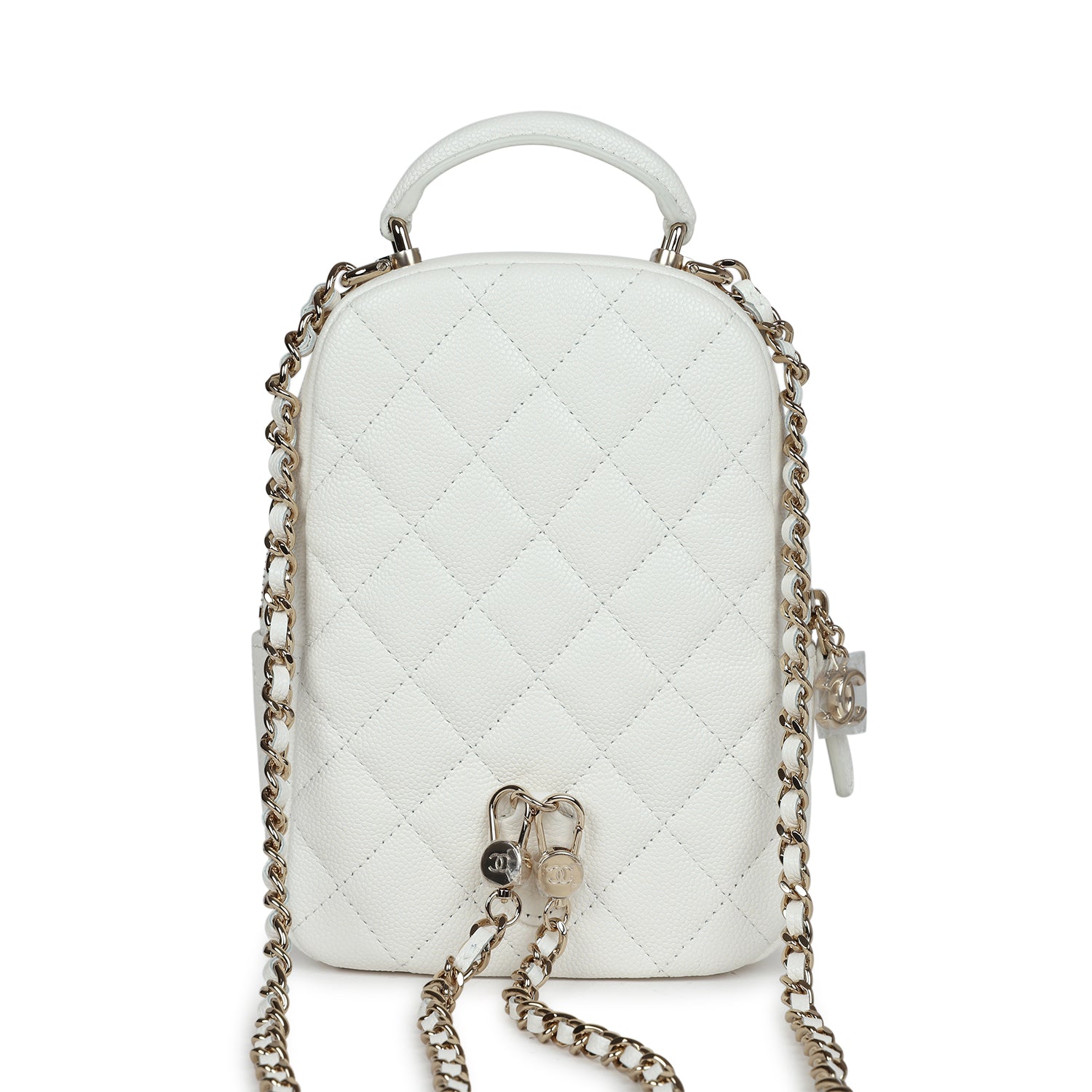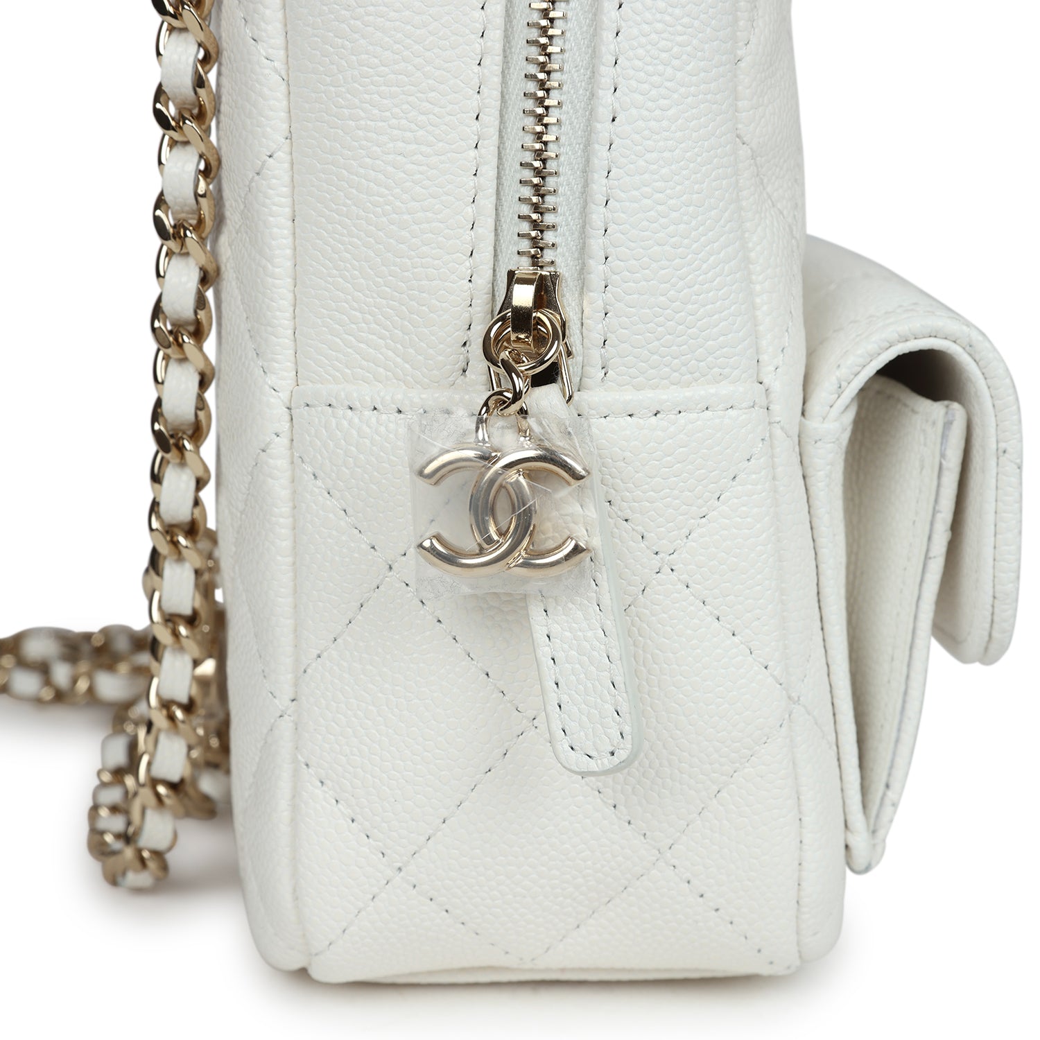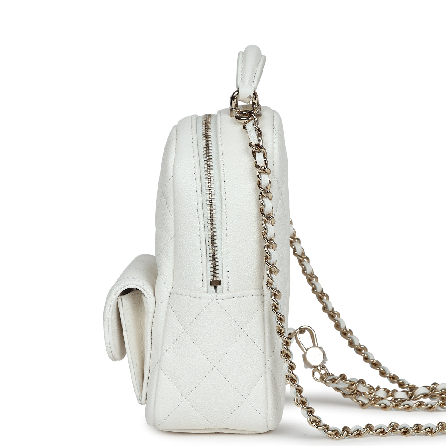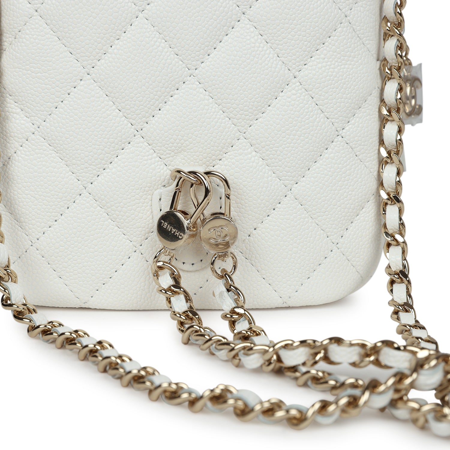 Chanel Mini Phone Holder Backpack White Caviar Light Gold Hardware