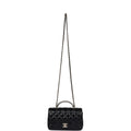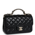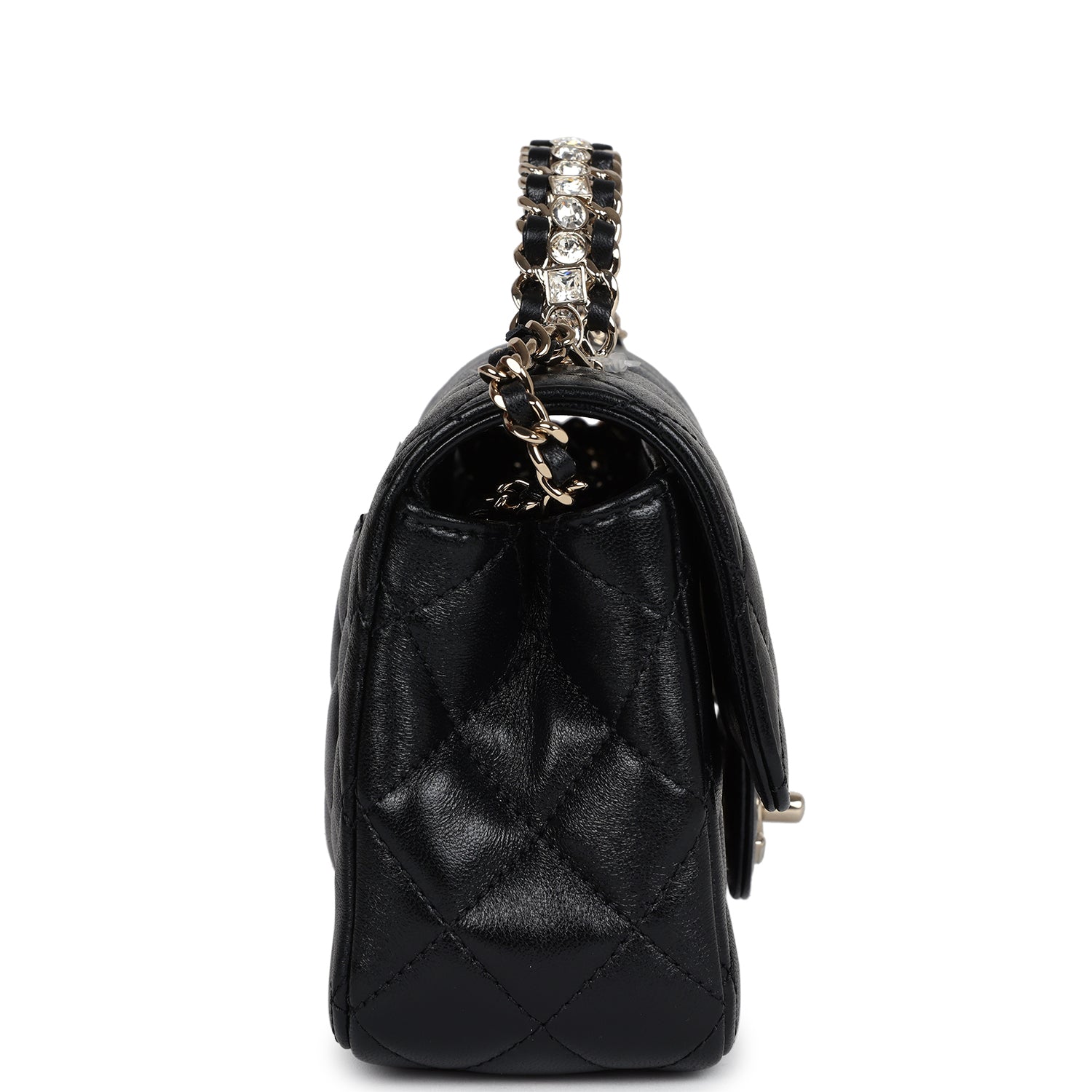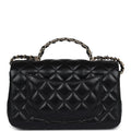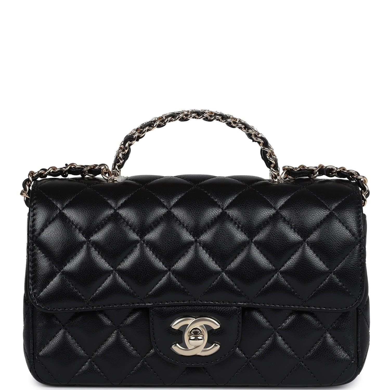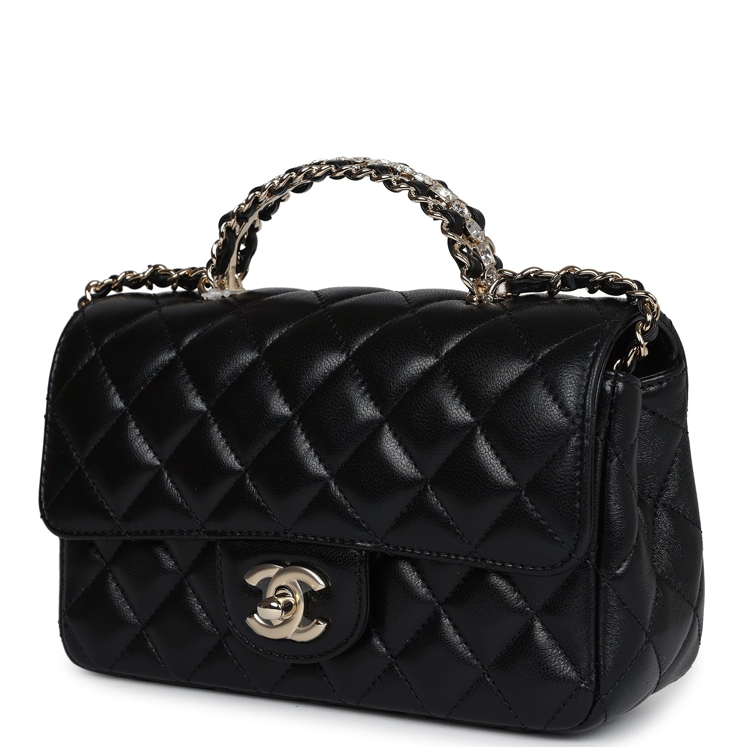 Chanel Mini Rectangular Crystal Top Handle Flap Bag Black Lambskin Light Gold Hardware