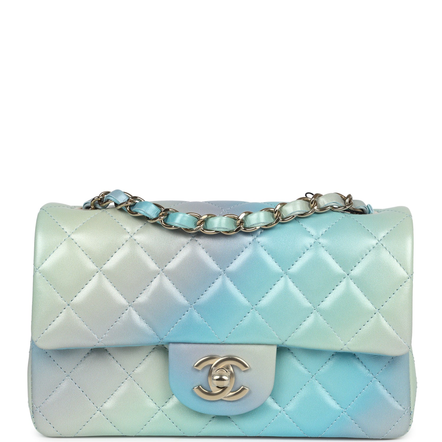 Chanel Mini Rectangular Flap Bag Iridescent Ombre Lambskin Light Gold Hardware
