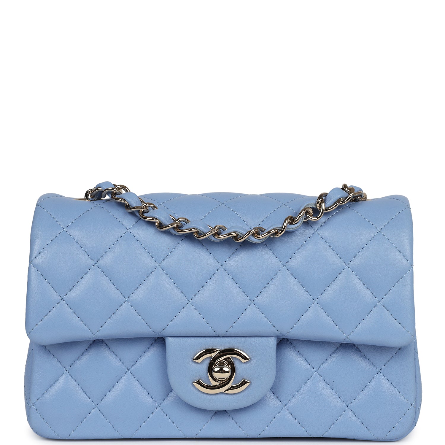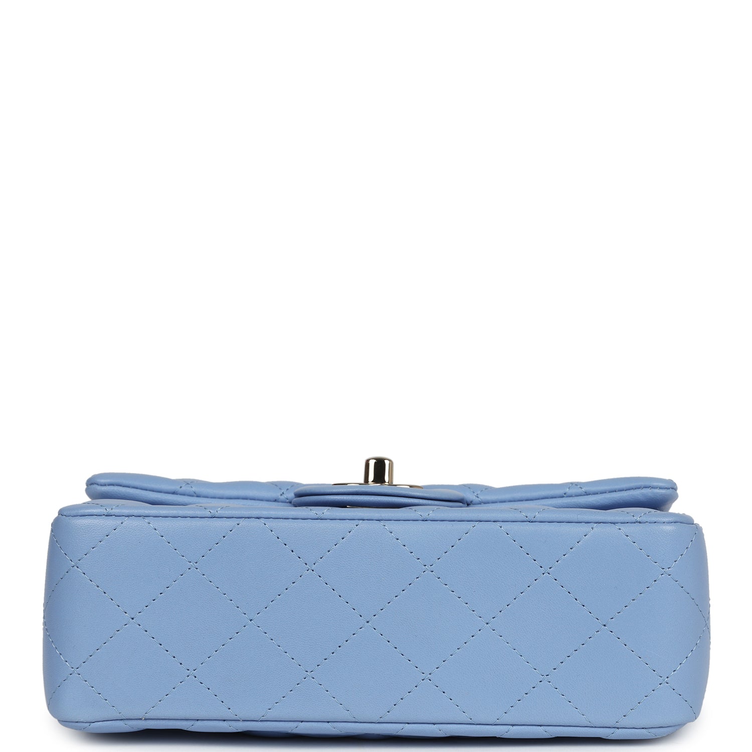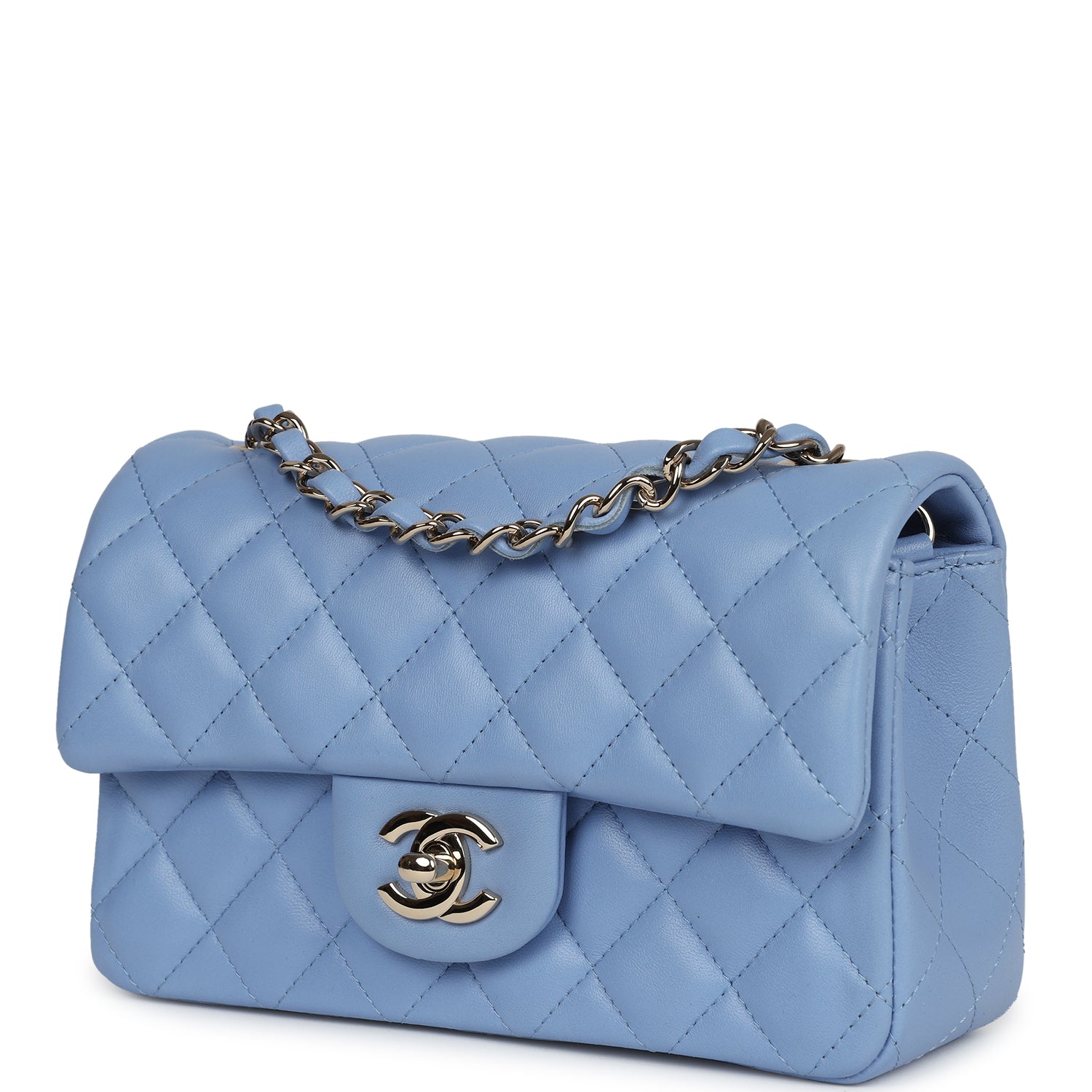 Chanel Mini Rectangular Flap Bag Light Blue Lambskin Light Gold Hardware