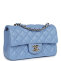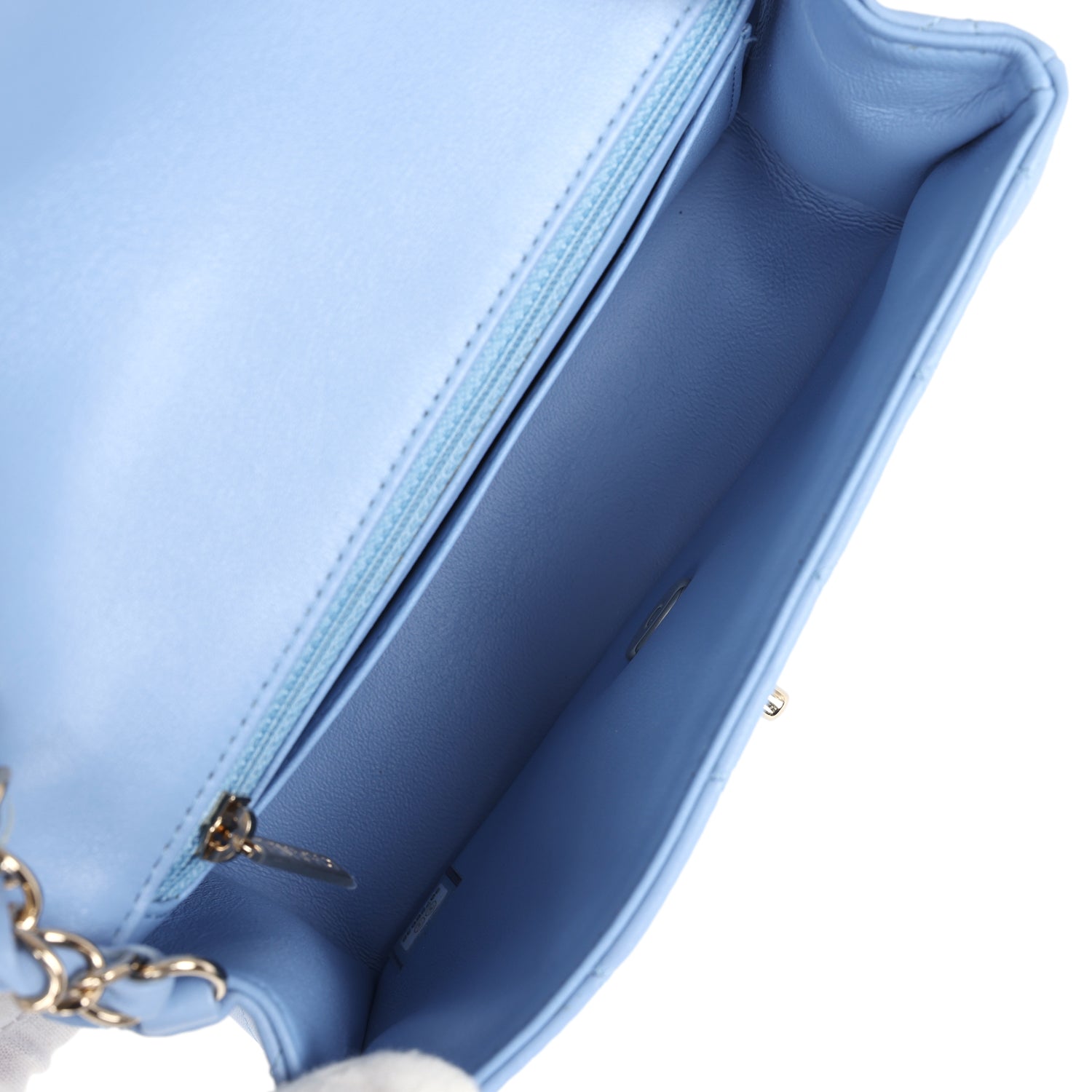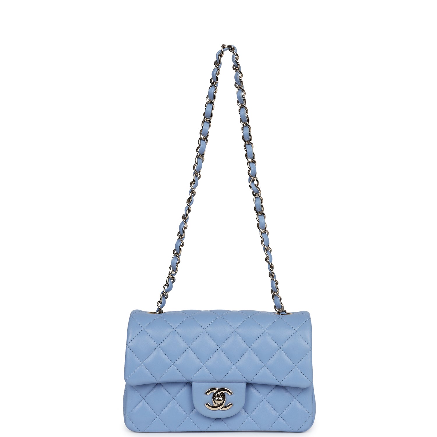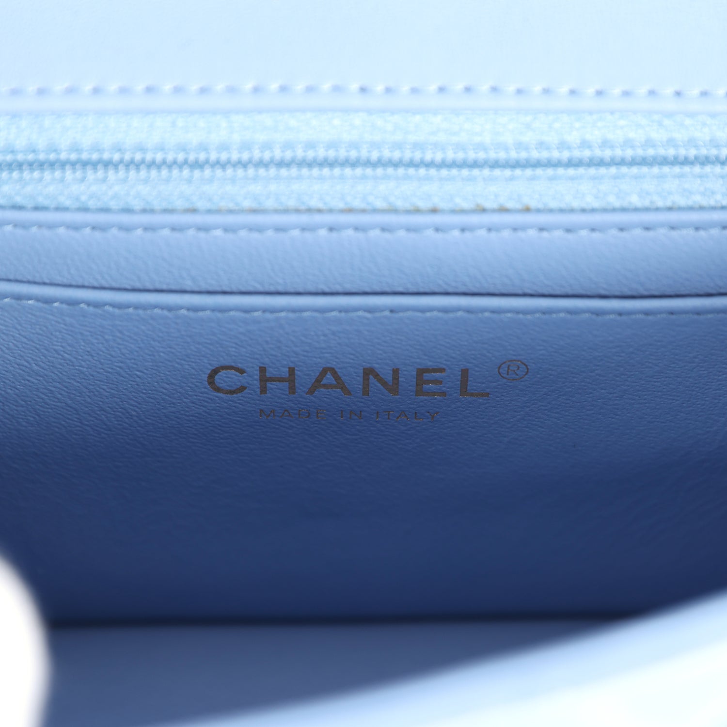 Chanel Mini Rectangular Flap Bag Light Blue Lambskin Light Gold Hardware