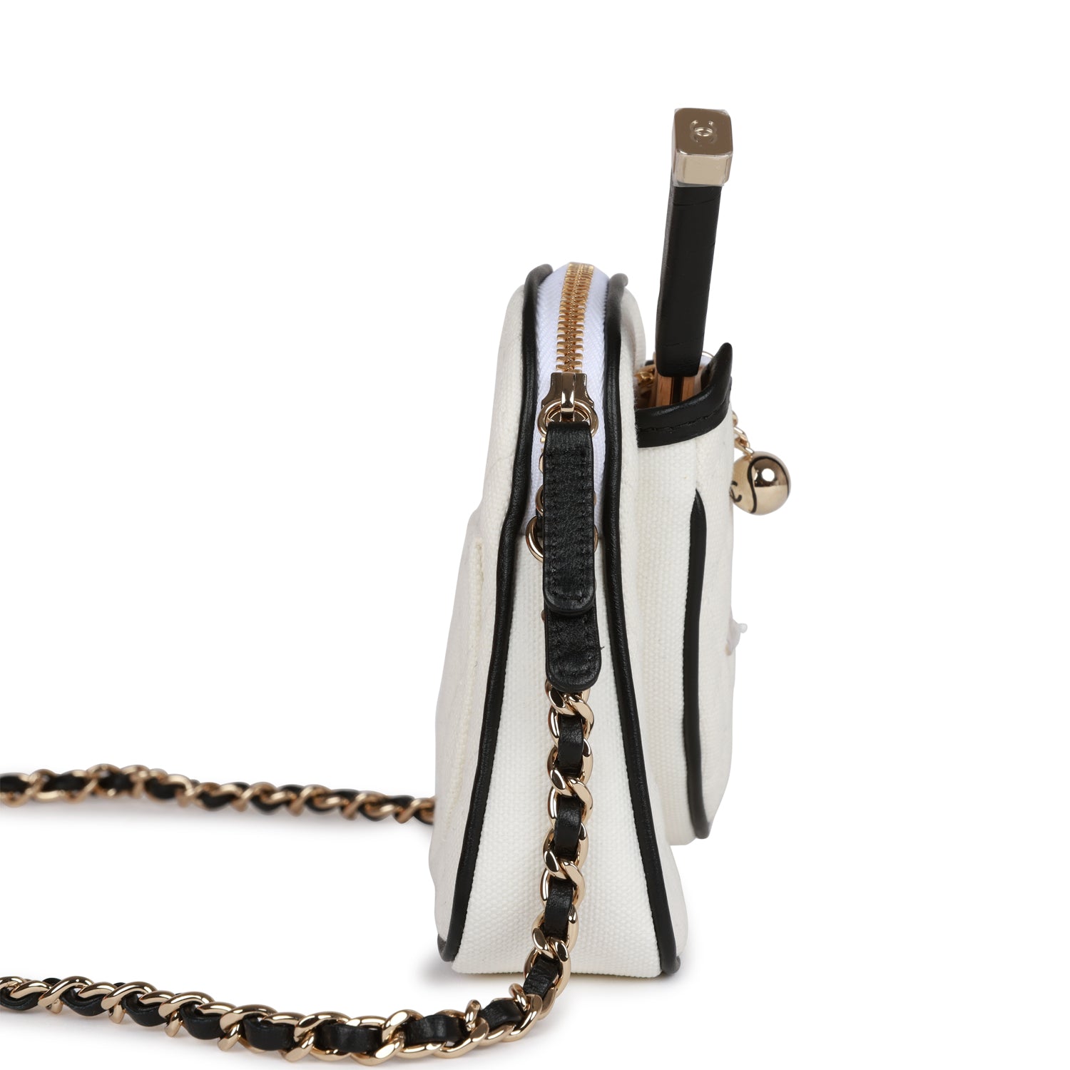 Chanel "Monte-Carlo" Mini Crossbody Tennis Bag White Canvas Light Gold Hardware