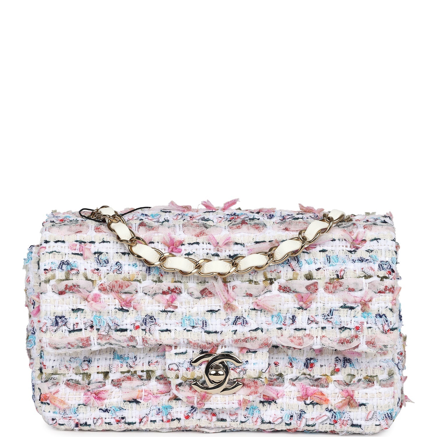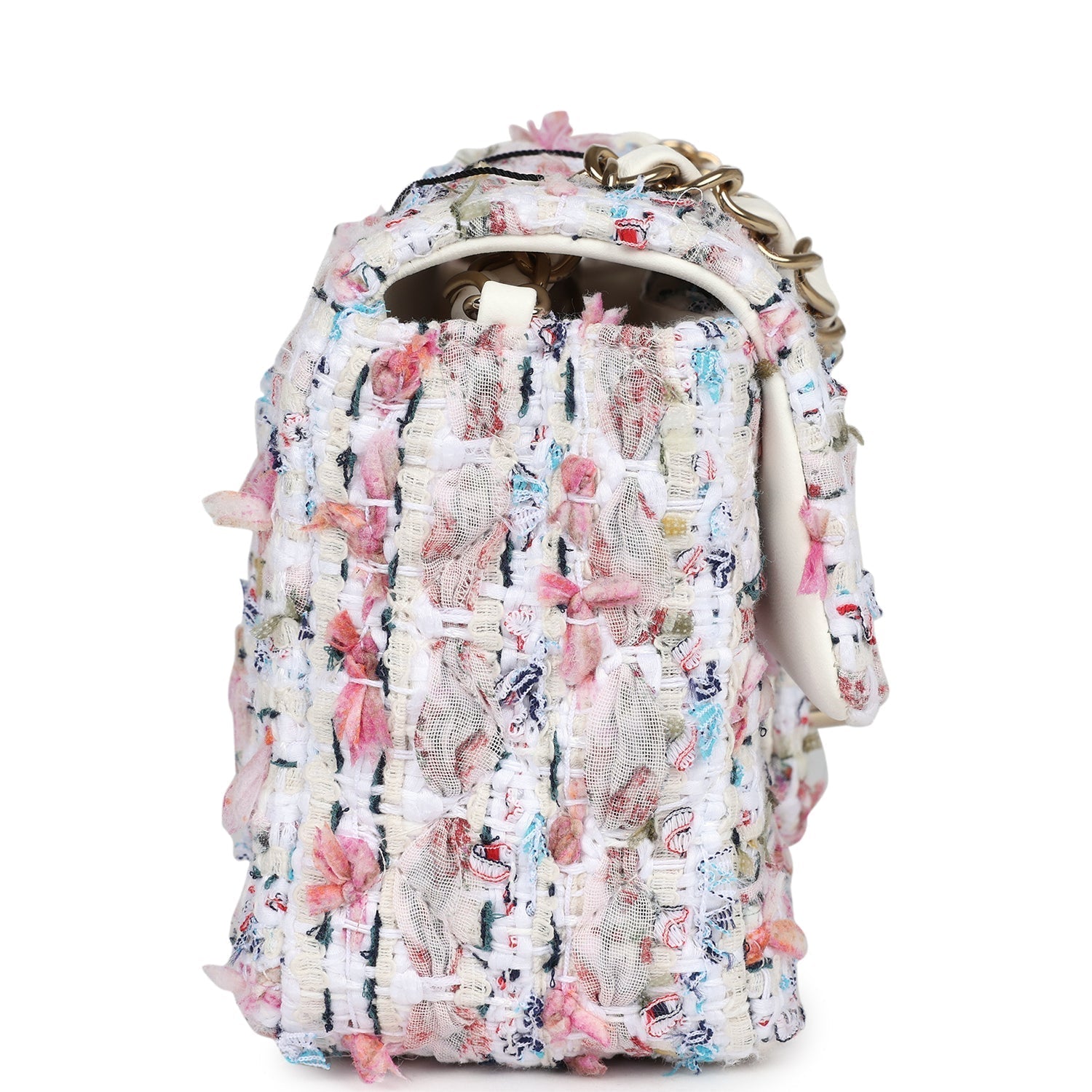 Chanel Mini Rectangular Flap Bag White/Pink/ Multicolored Tweed Light Gold Hardware