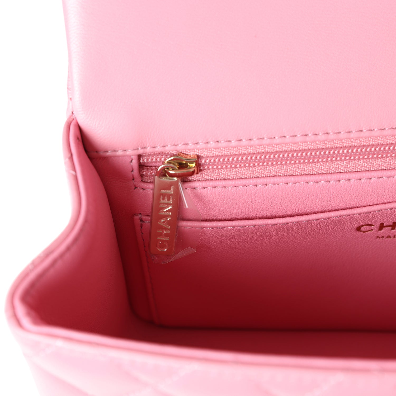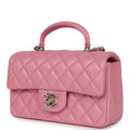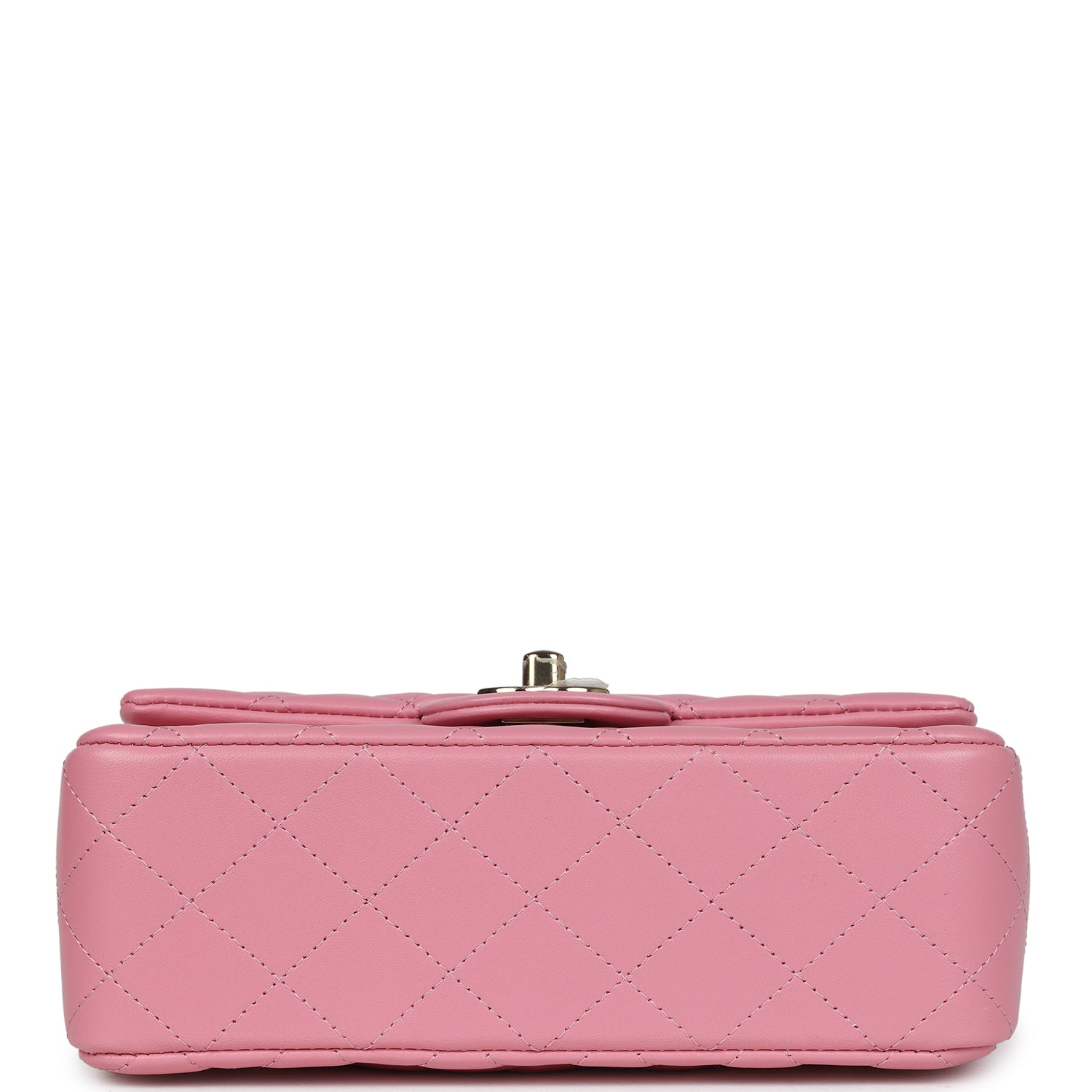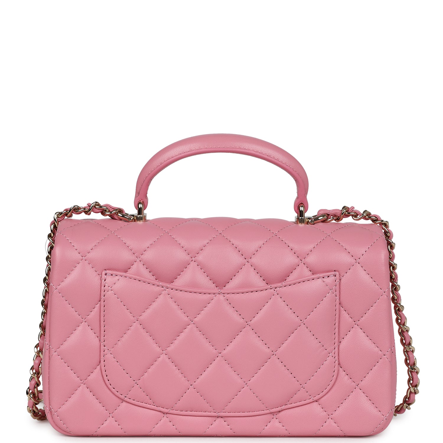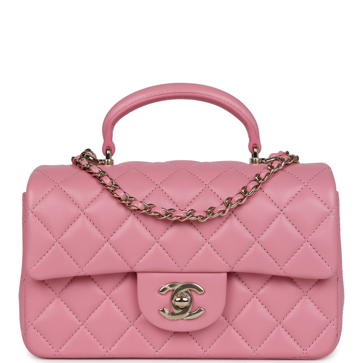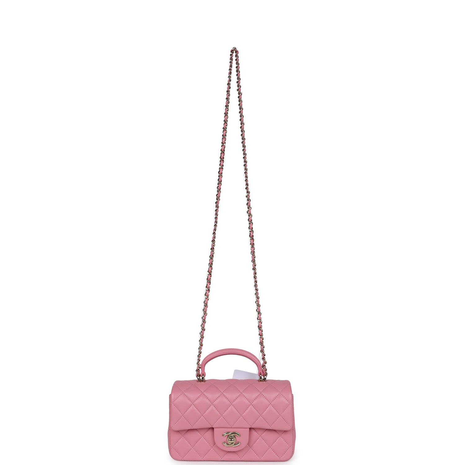 Chanel Mini Rectangular Flap Top Handle Dark Pink Lambskin Light Gold Hardware
