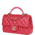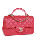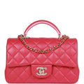 Chanel Mini Rectangular Flap with Top Handle Pink Lambskin Light Gold Hardware
