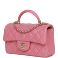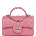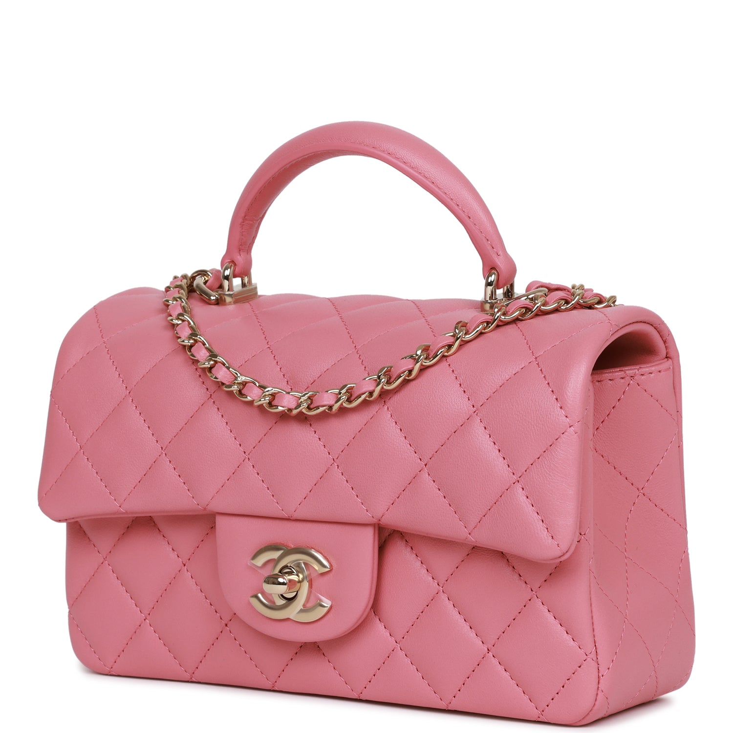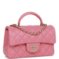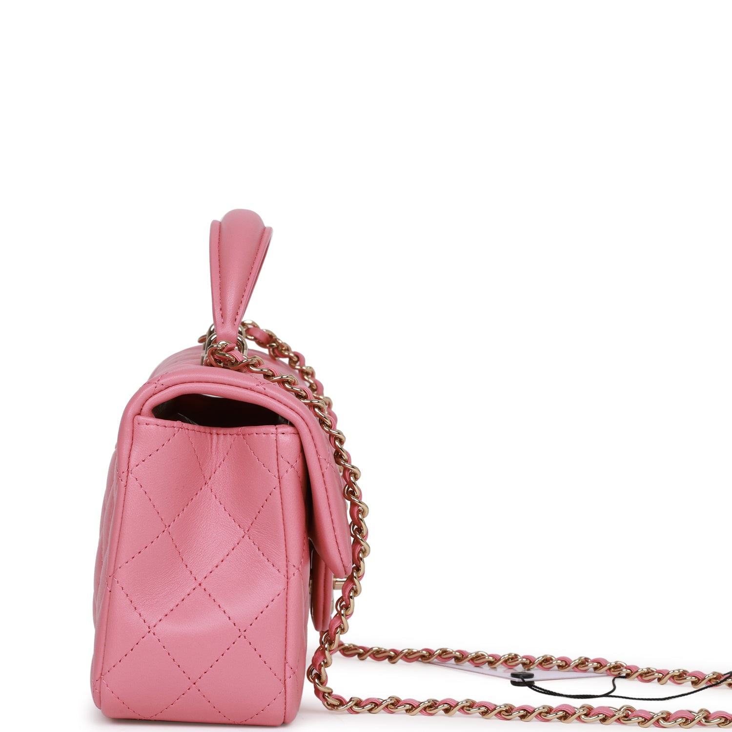 Chanel Mini Rectangular Flap Bag with Top Handle Pink Lambskin Light Gold Hardware