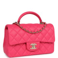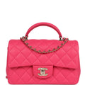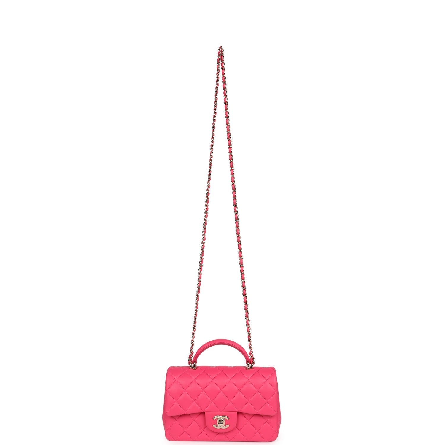 Chanel Mini Rectangular Flap with Top Handle Pink Lambskin Light Gold Hardware