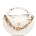 Chanel Mini Round Hobo Pouch Bag White Caviar Antique Gold Hardware
