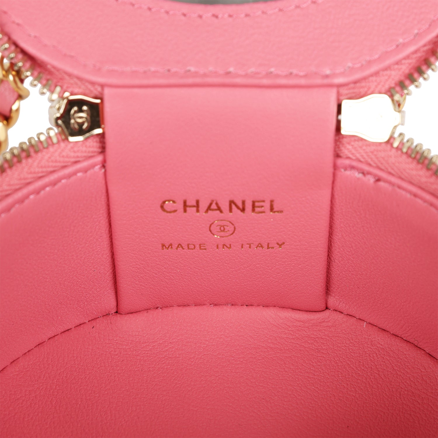 Chanel Mini Round Top Handle Vanity Case Dark Pink Lambskin Gold Hardware