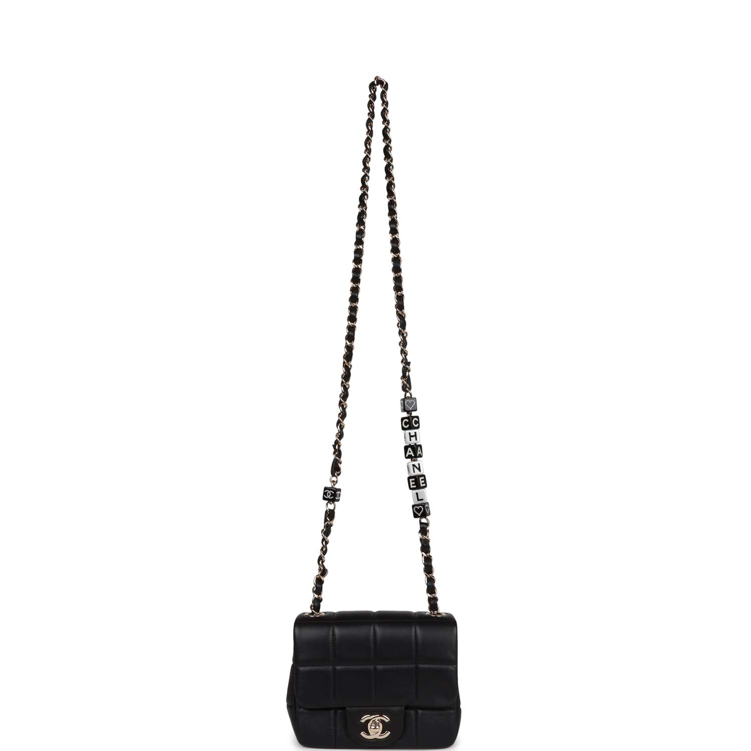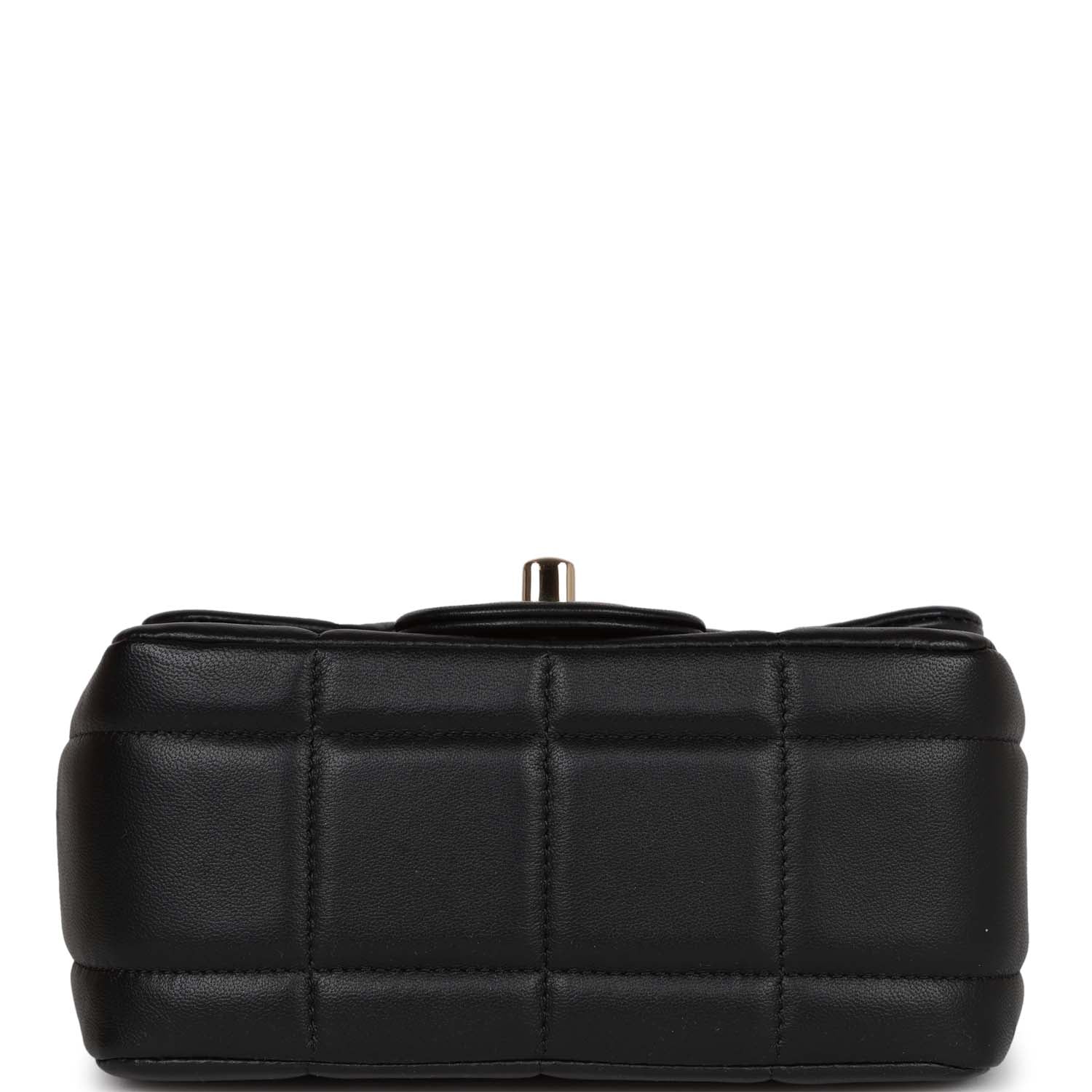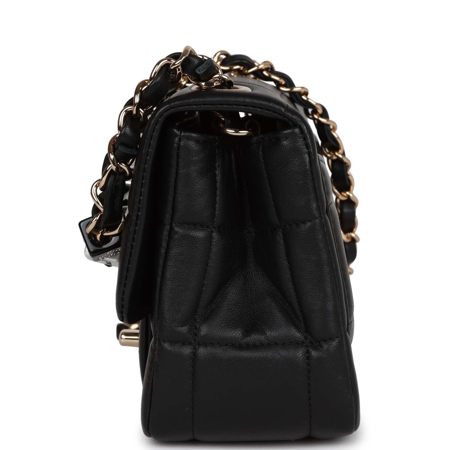 Chanel Monaco Mini Square Flap Bag Black Lambskin Light Gold Hardware