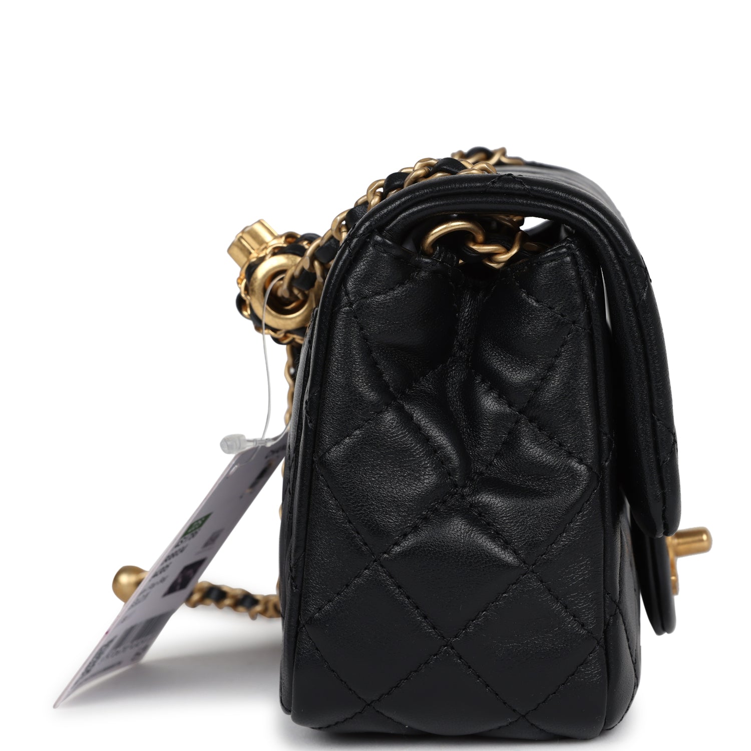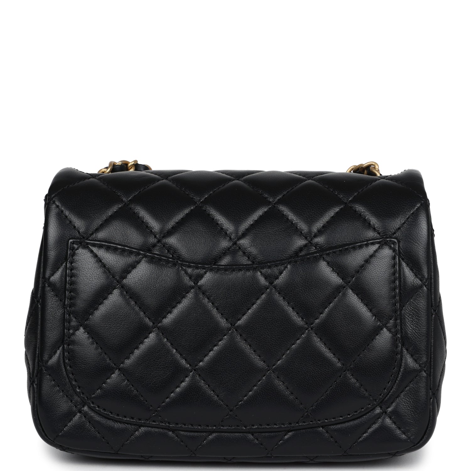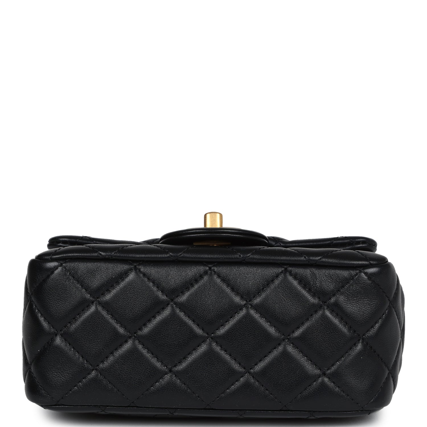 Chanel Mini Square Pearl Crush Flap Bag Black Lambskin Anitque Gold Hardware