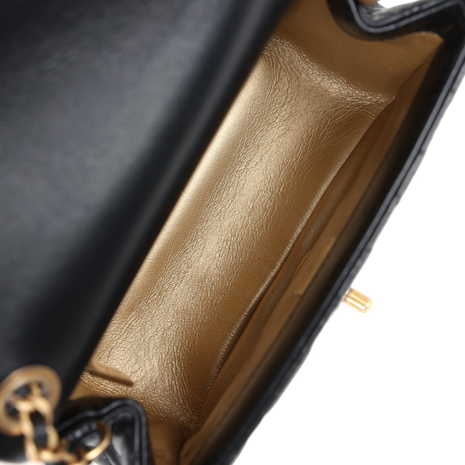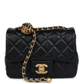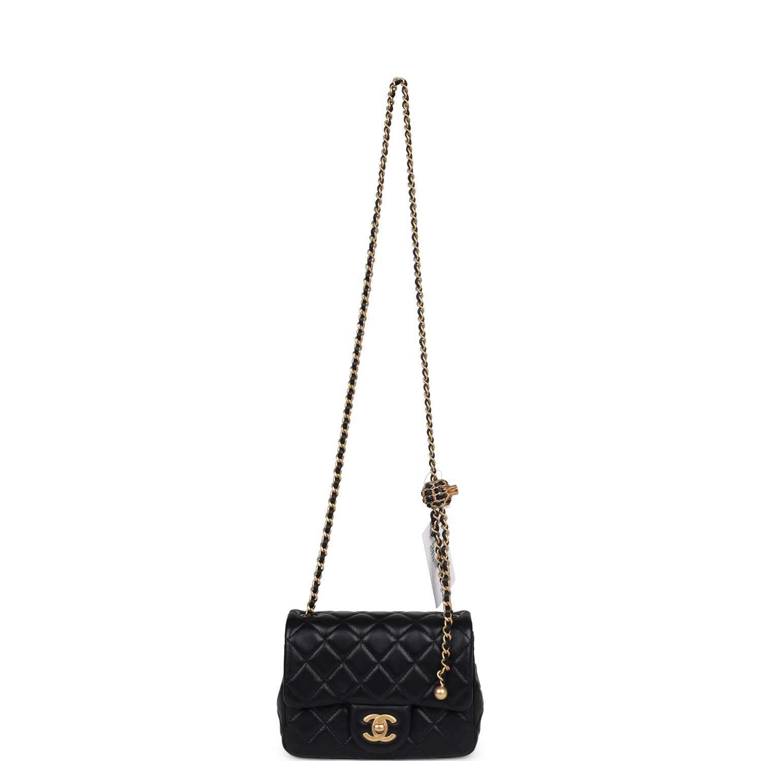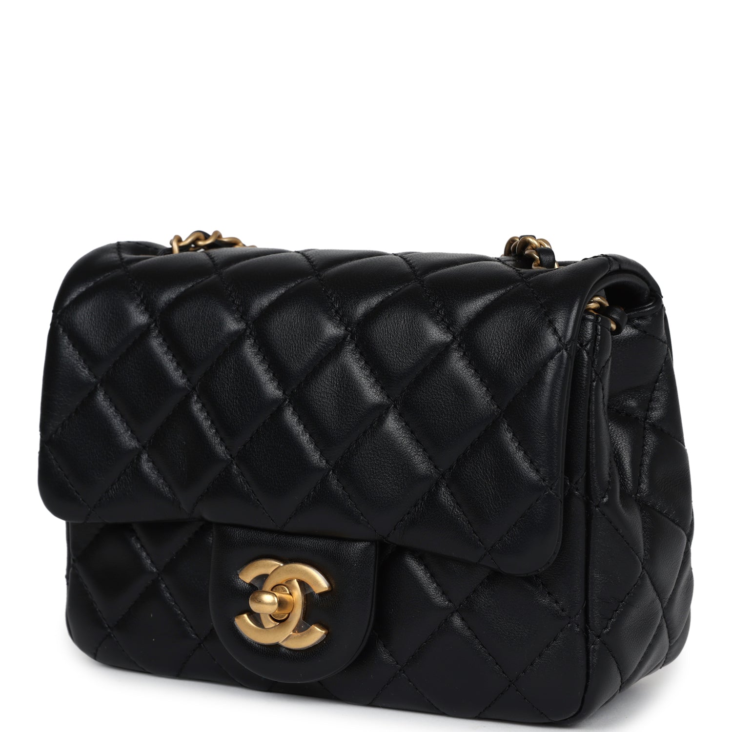 Chanel Mini Square Pearl Crush Flap Bag Black Lambskin Anitque Gold Hardware