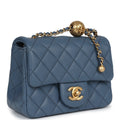 Chanel Mini Square Pearl Crush Flap Blue Lambskin Antique Gold Hardware