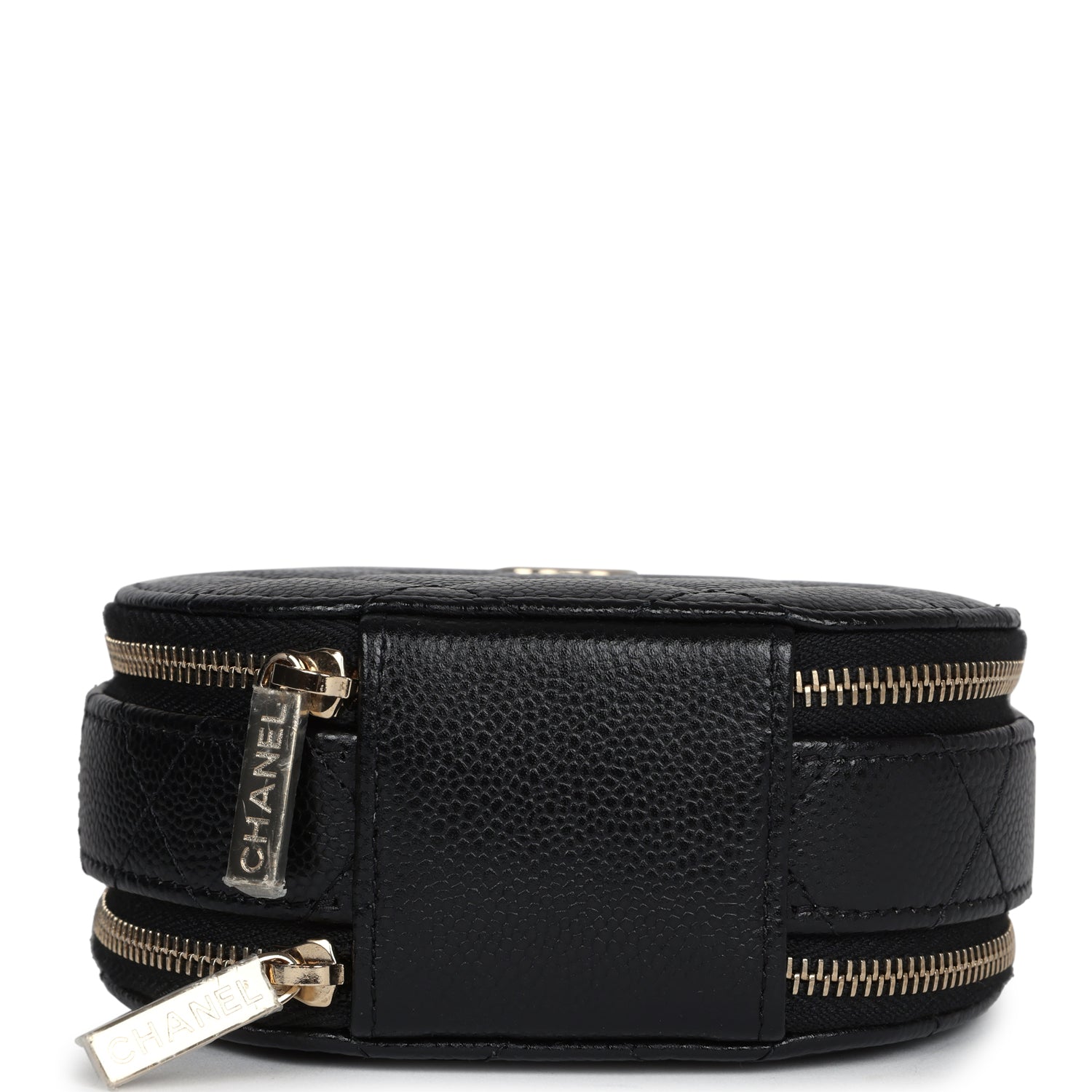 Chanel Mini Top Handle Round Vanity Bag Black Caviar Gold Hardware