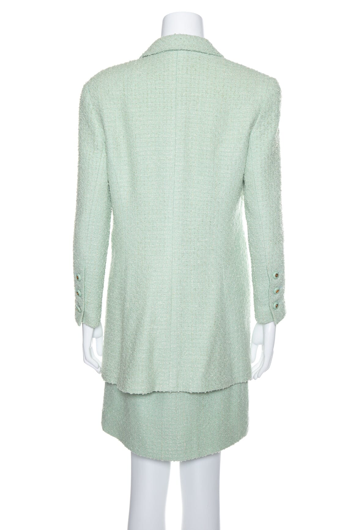 Chanel Mint Tweed Jacket and Skirt Set SZ 42