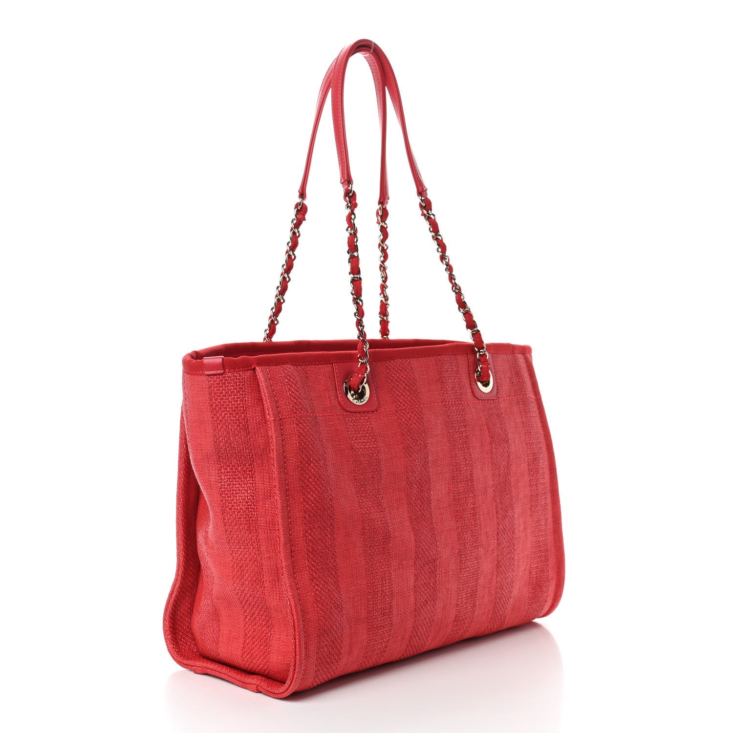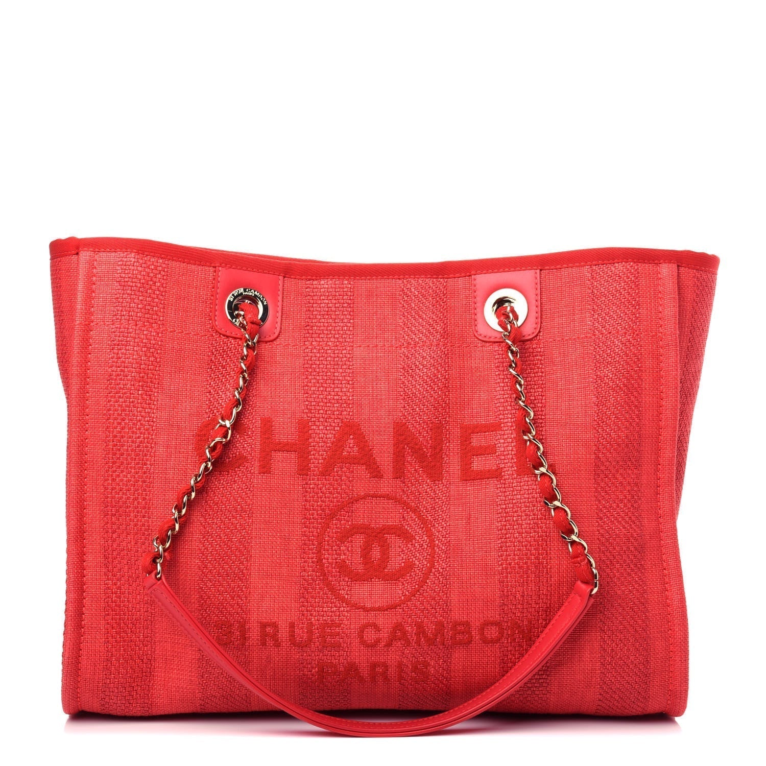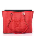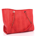 CHANEL Mixed Fibers Striped Deauville Tote-Red