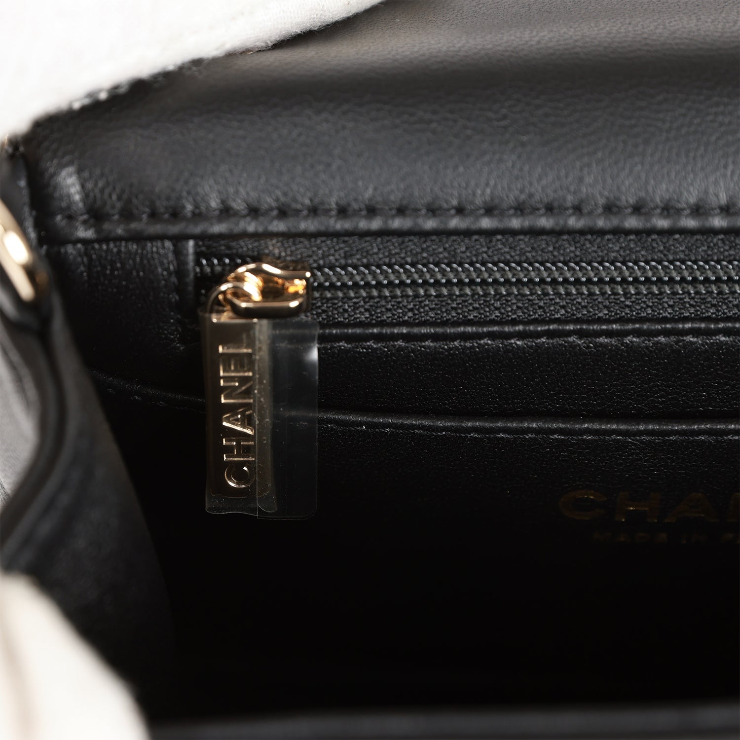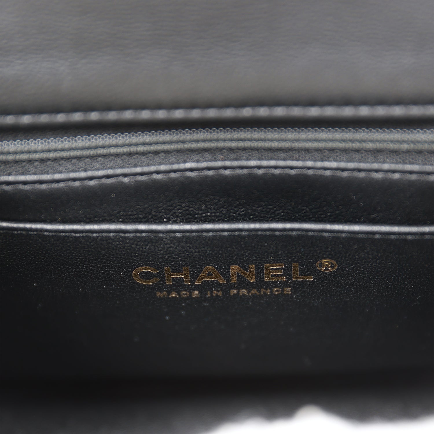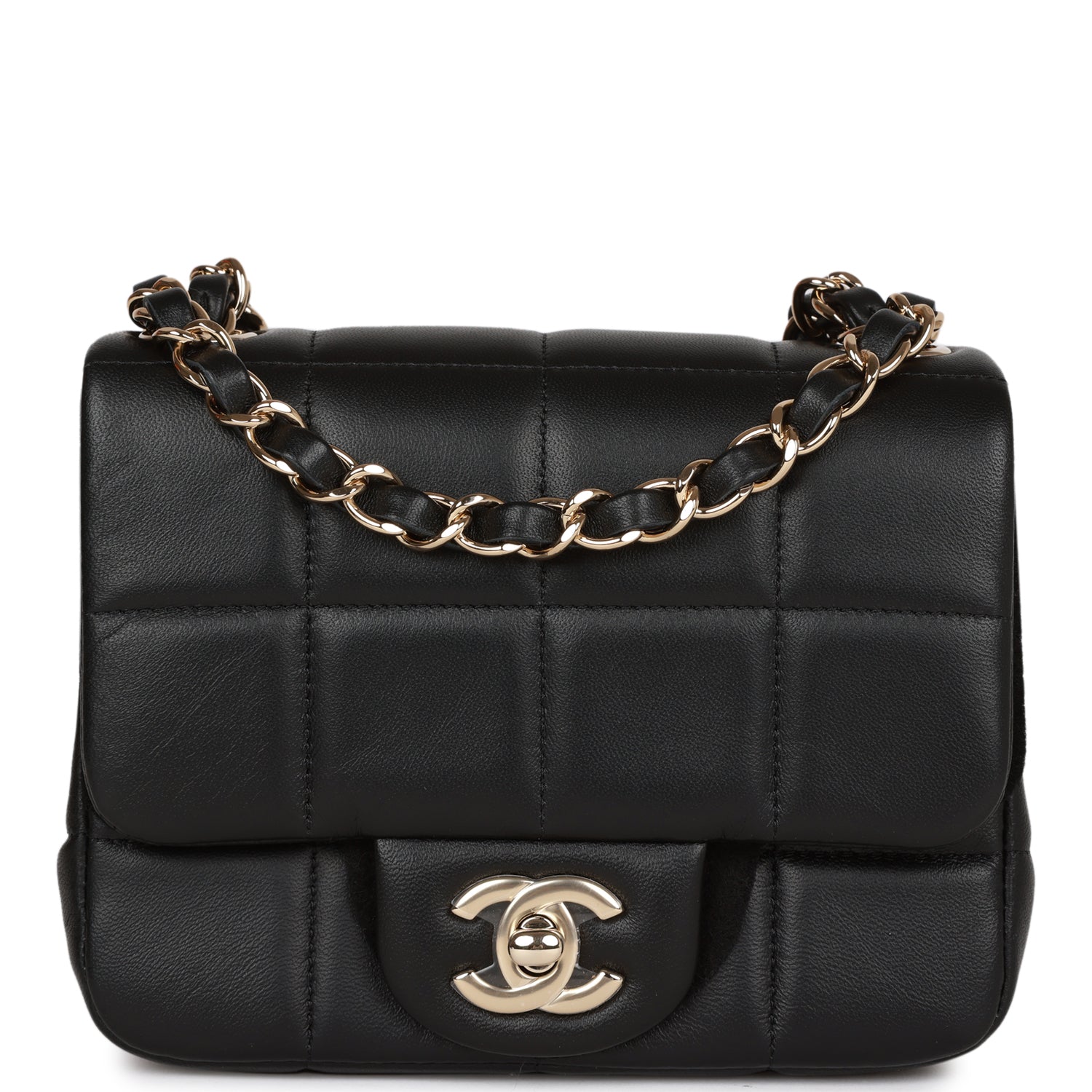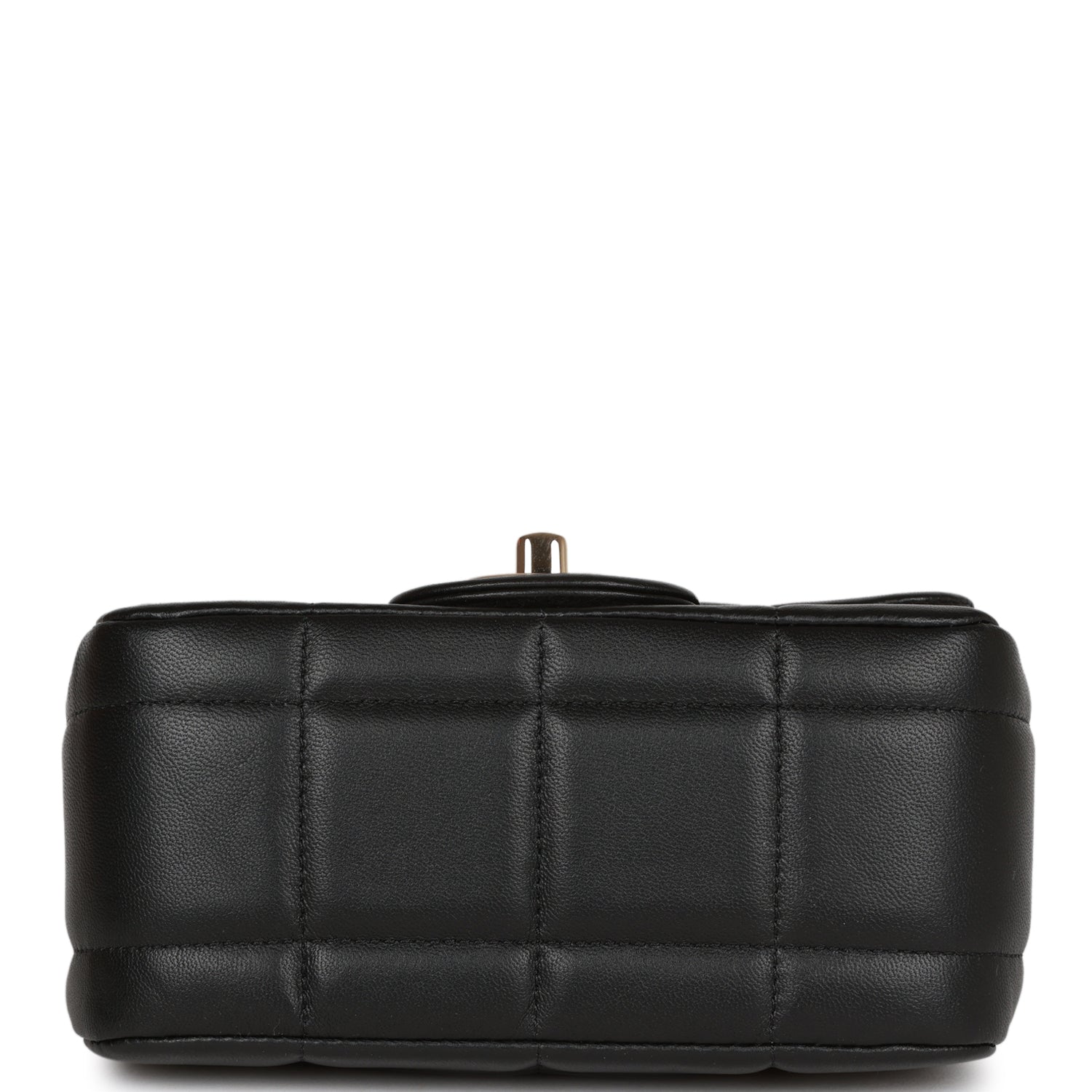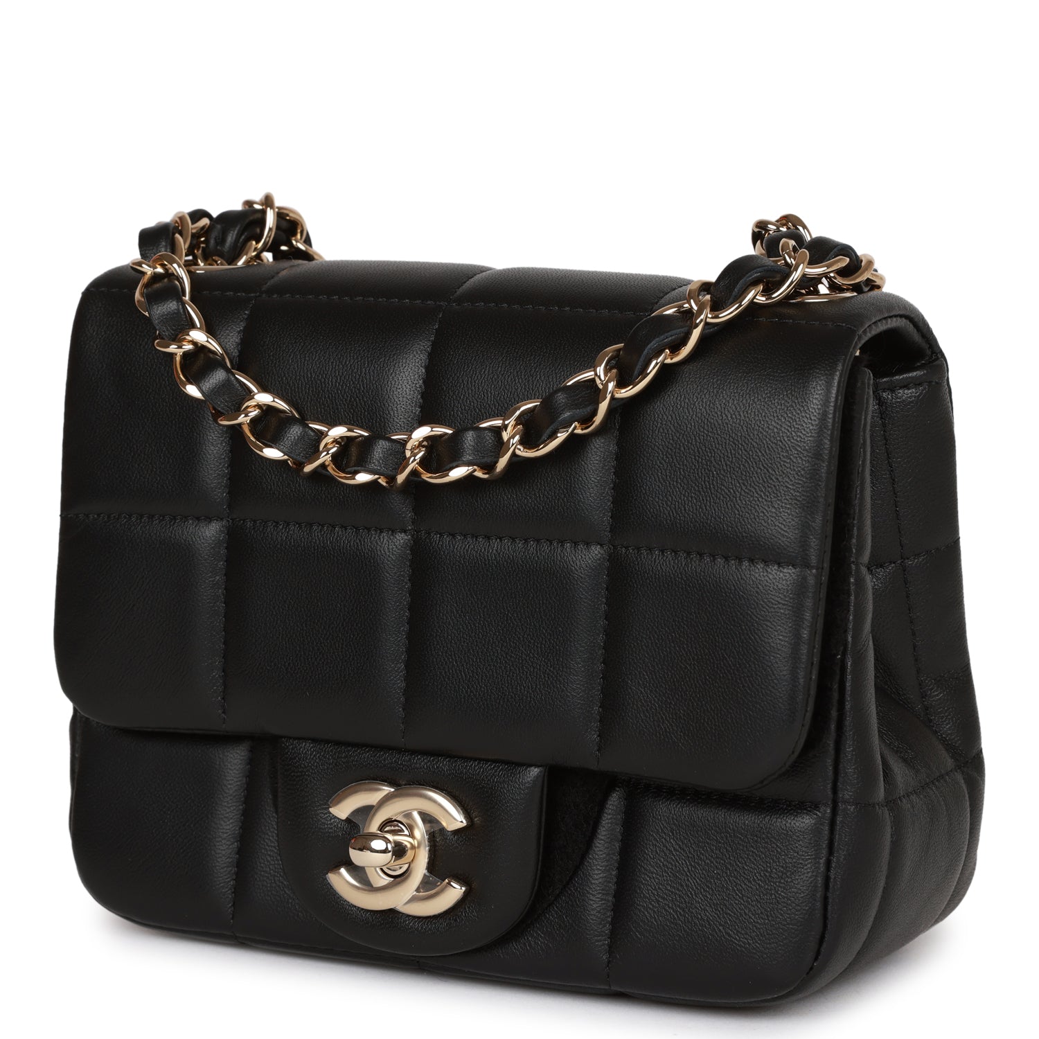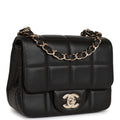 Chanel Monaco Mini Square Flap Bag Black Lambskin Light Gold Hardware