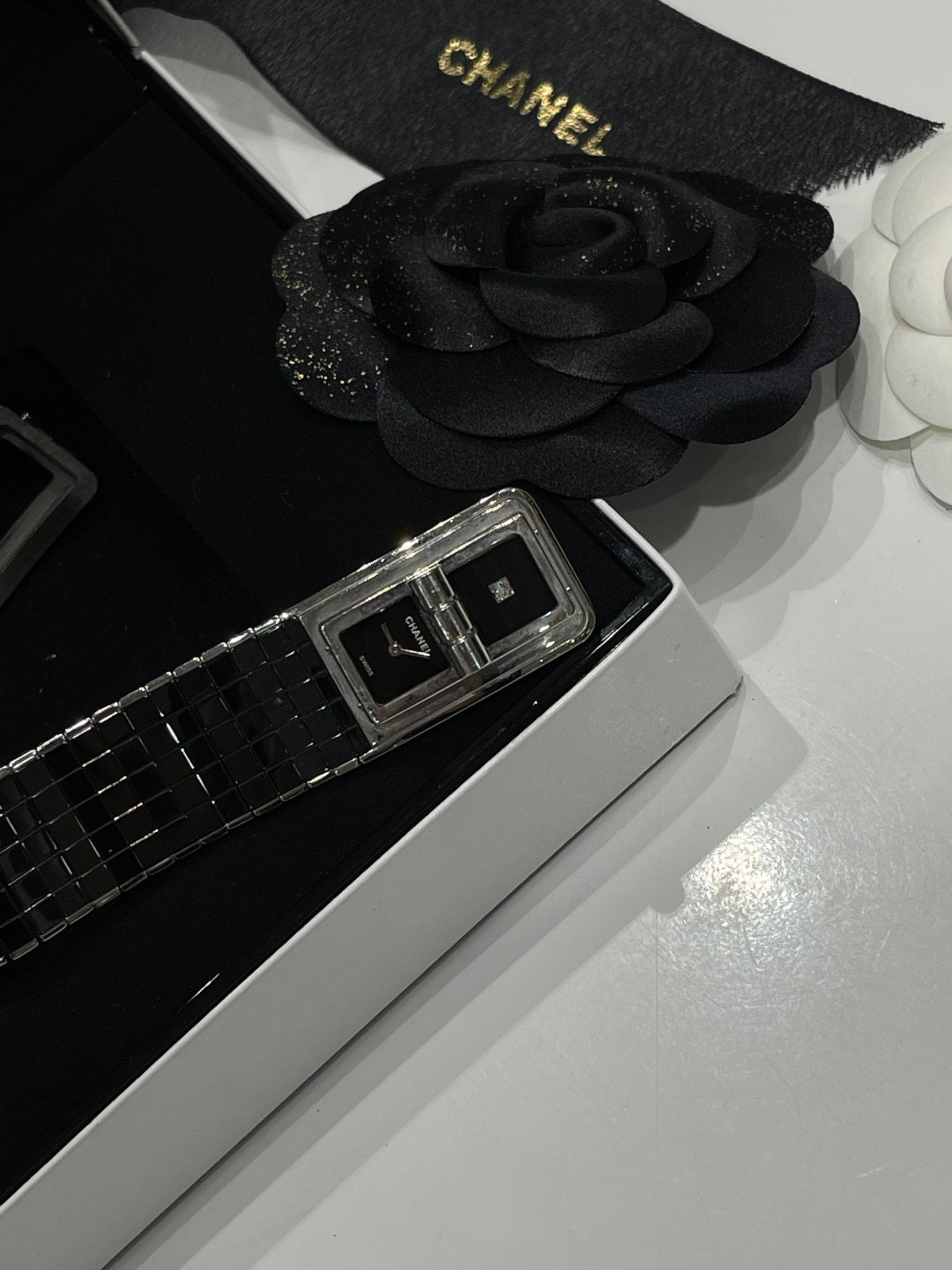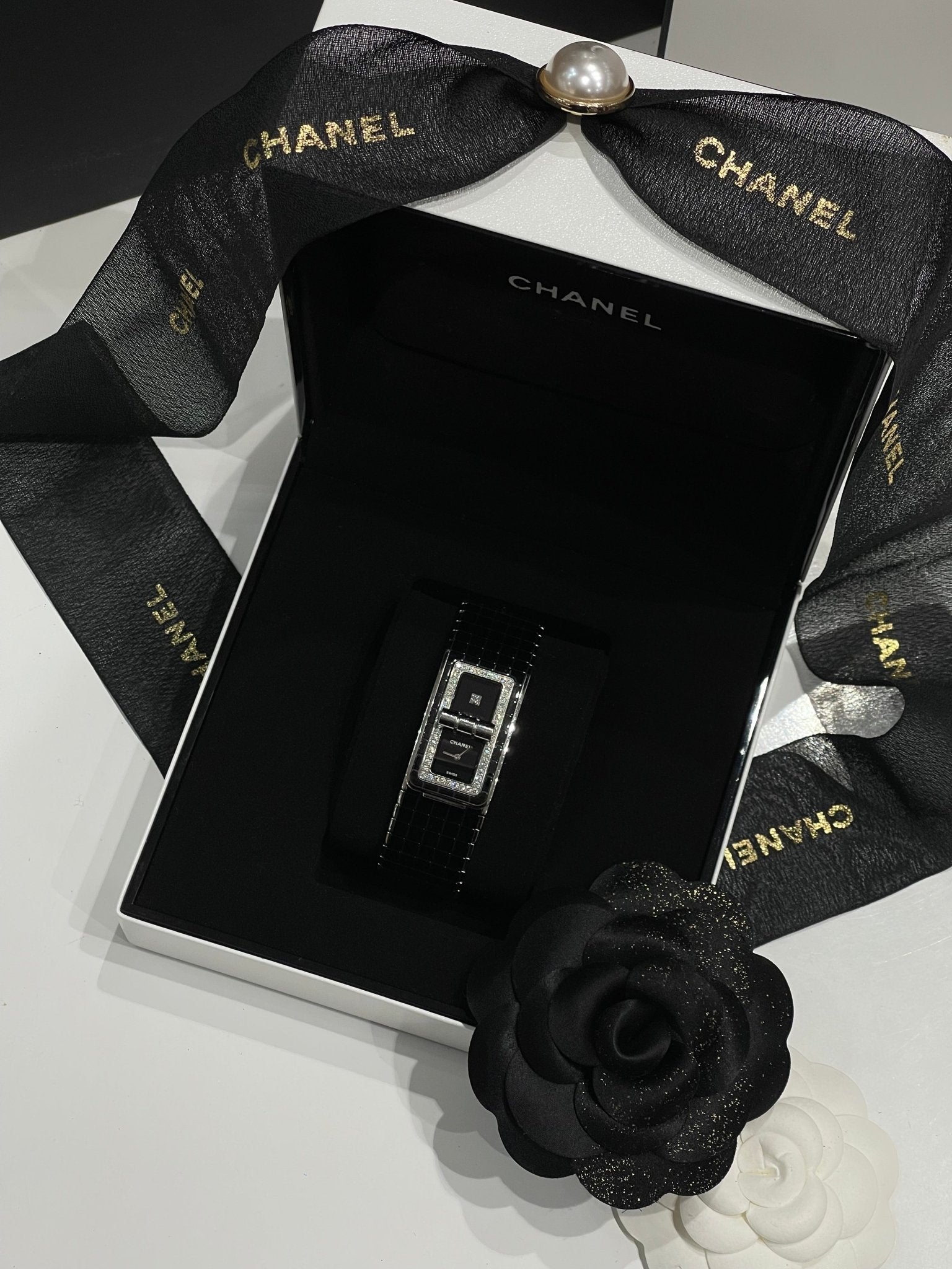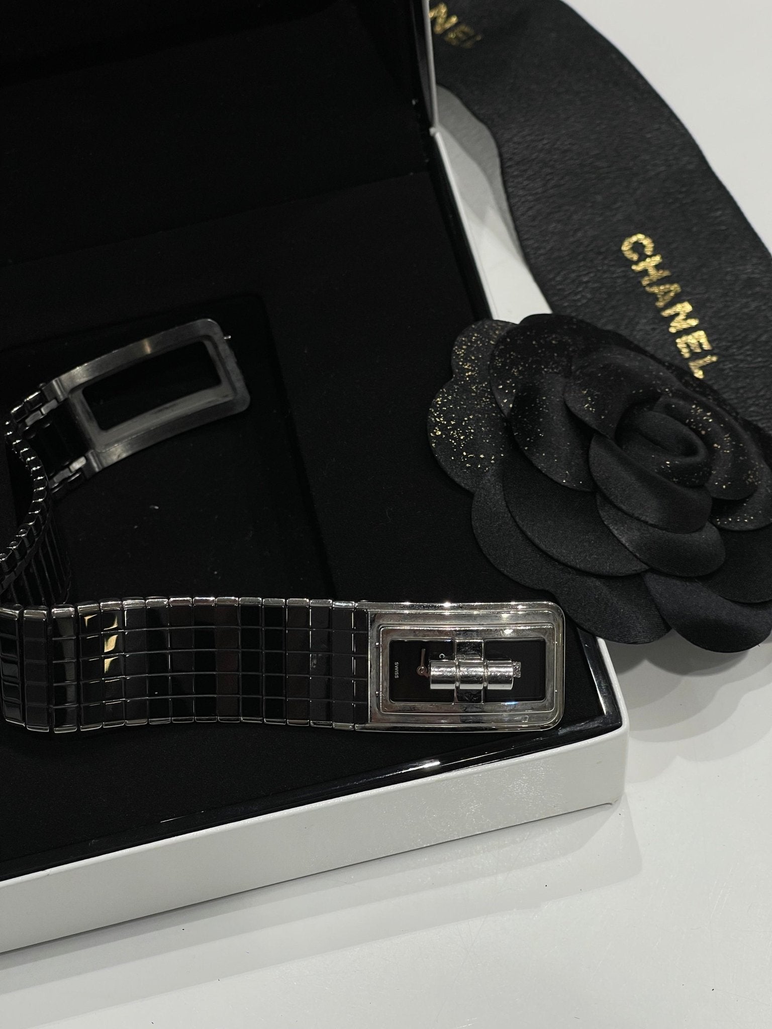 Issue de la dernière collection d’horlogerie, la Code coco est la montre signe de raffinement et de démarcation. Son large bracelet acier et céramique et sa lunette sertie de 52 diamants et son fermoir mademoiselle en font un modèle unique et ultra stylé.