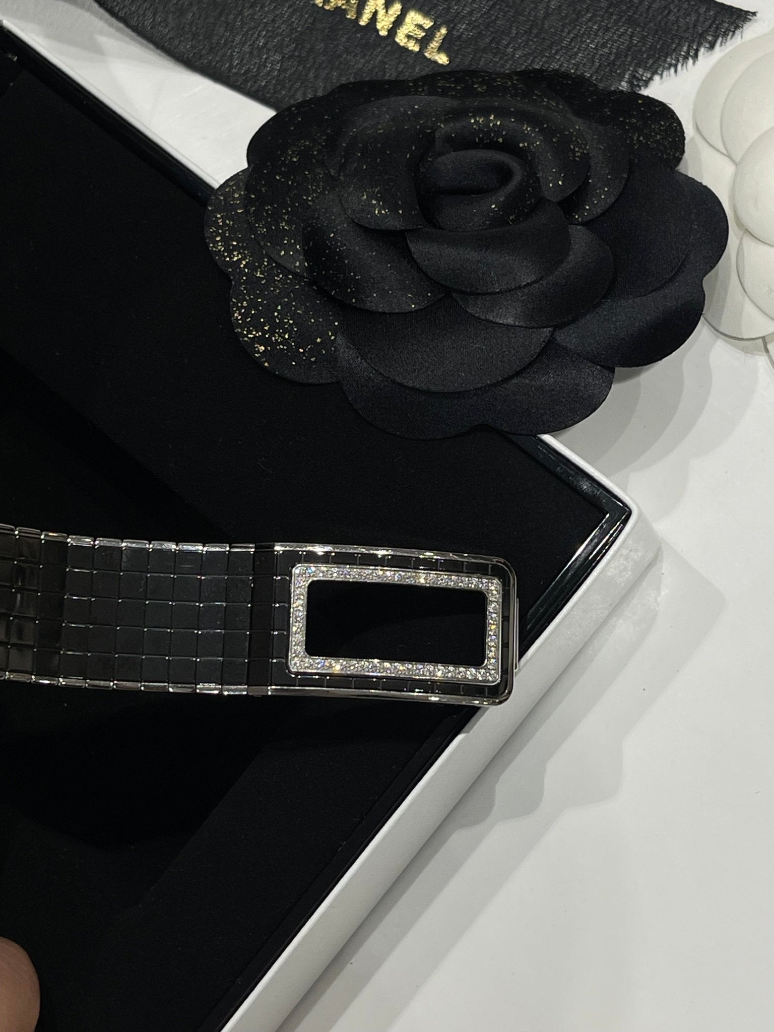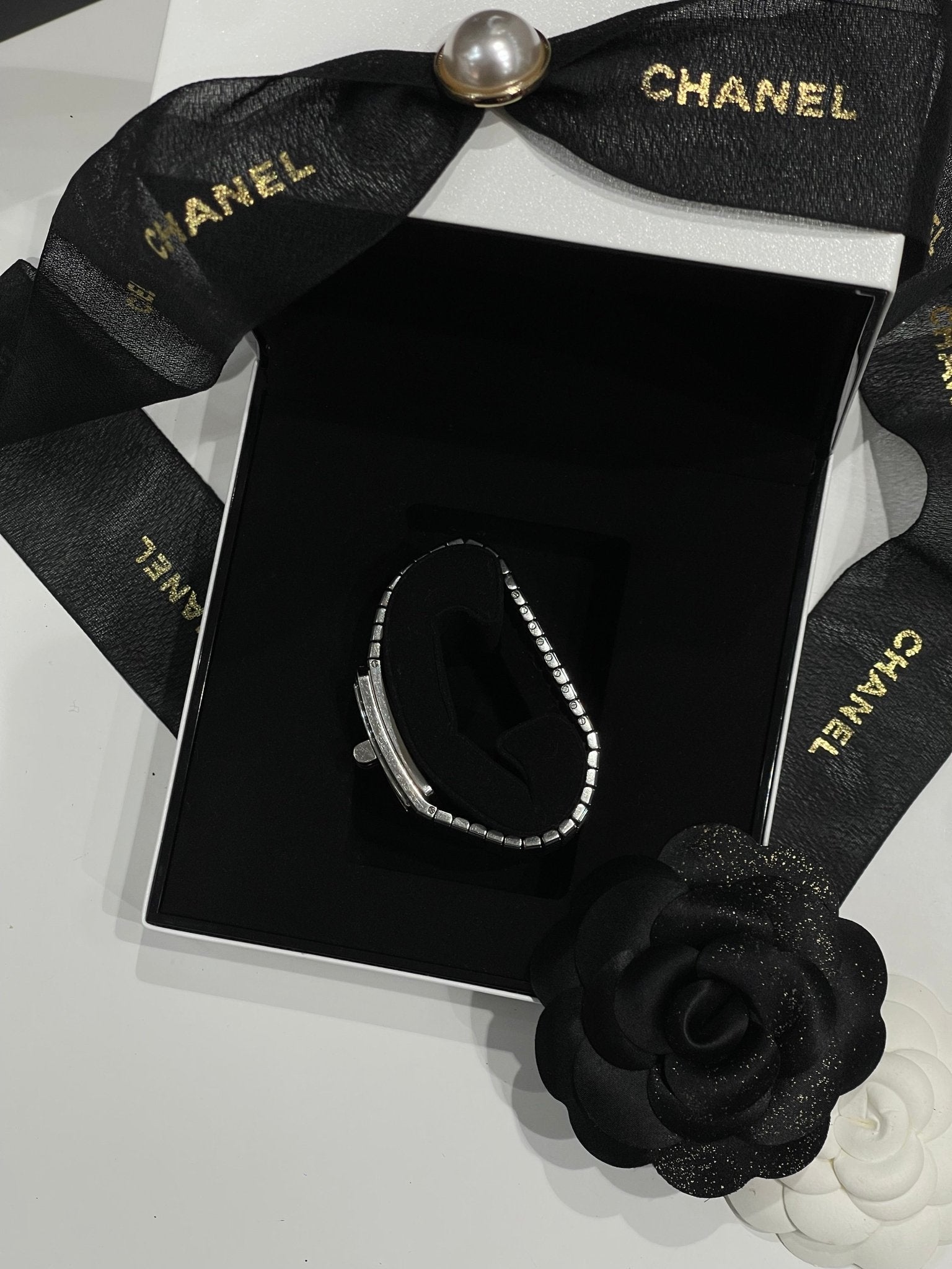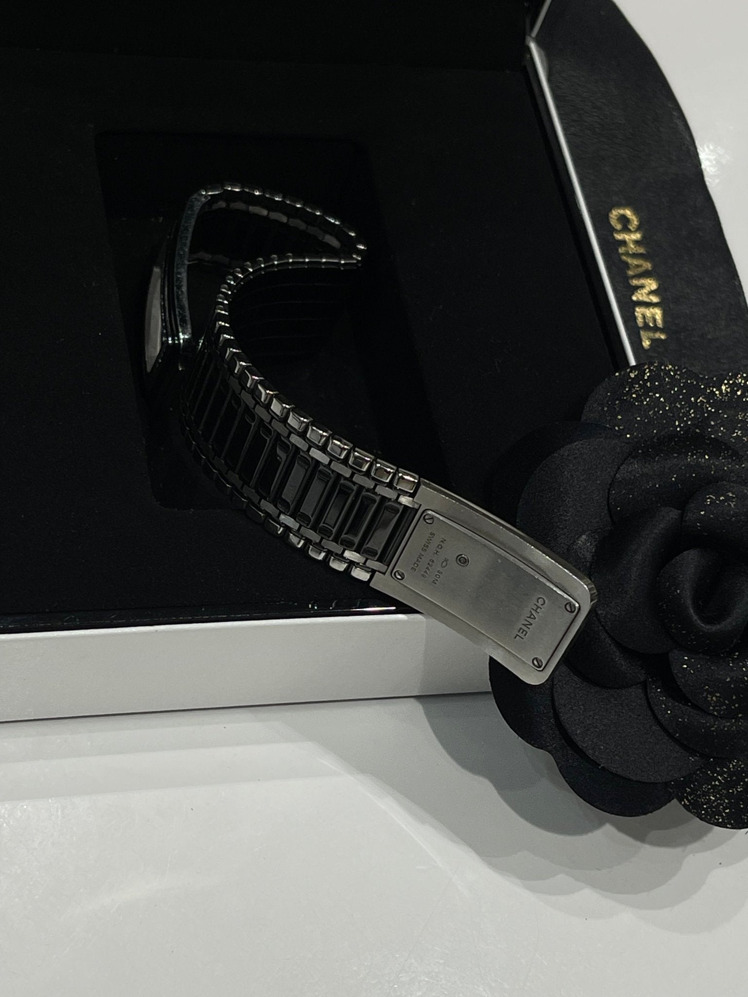 Issue de la dernière collection d’horlogerie, la Code coco est la montre signe de raffinement et de démarcation. Son large bracelet acier et céramique et sa lunette sertie de 52 diamants et son fermoir mademoiselle en font un modèle unique et ultra stylé.