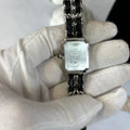 Découvrez l'élégance intemporelle de l’iconique montre première Chanel en acier, avec sa chaîne entrelacée de cuir et son cabochon en onix. Cette montre allie style et fonctionnalité. Parfaite pour toutes les occasions, elle ajoutera une touche de sophistication à votre tenue.
