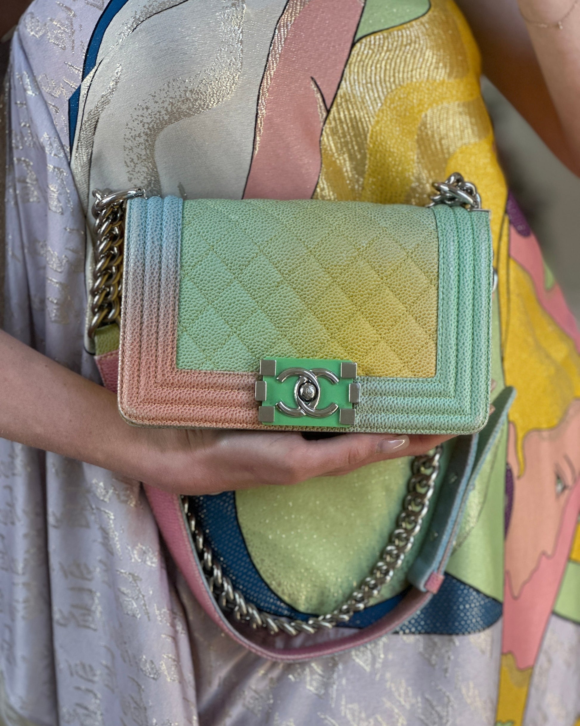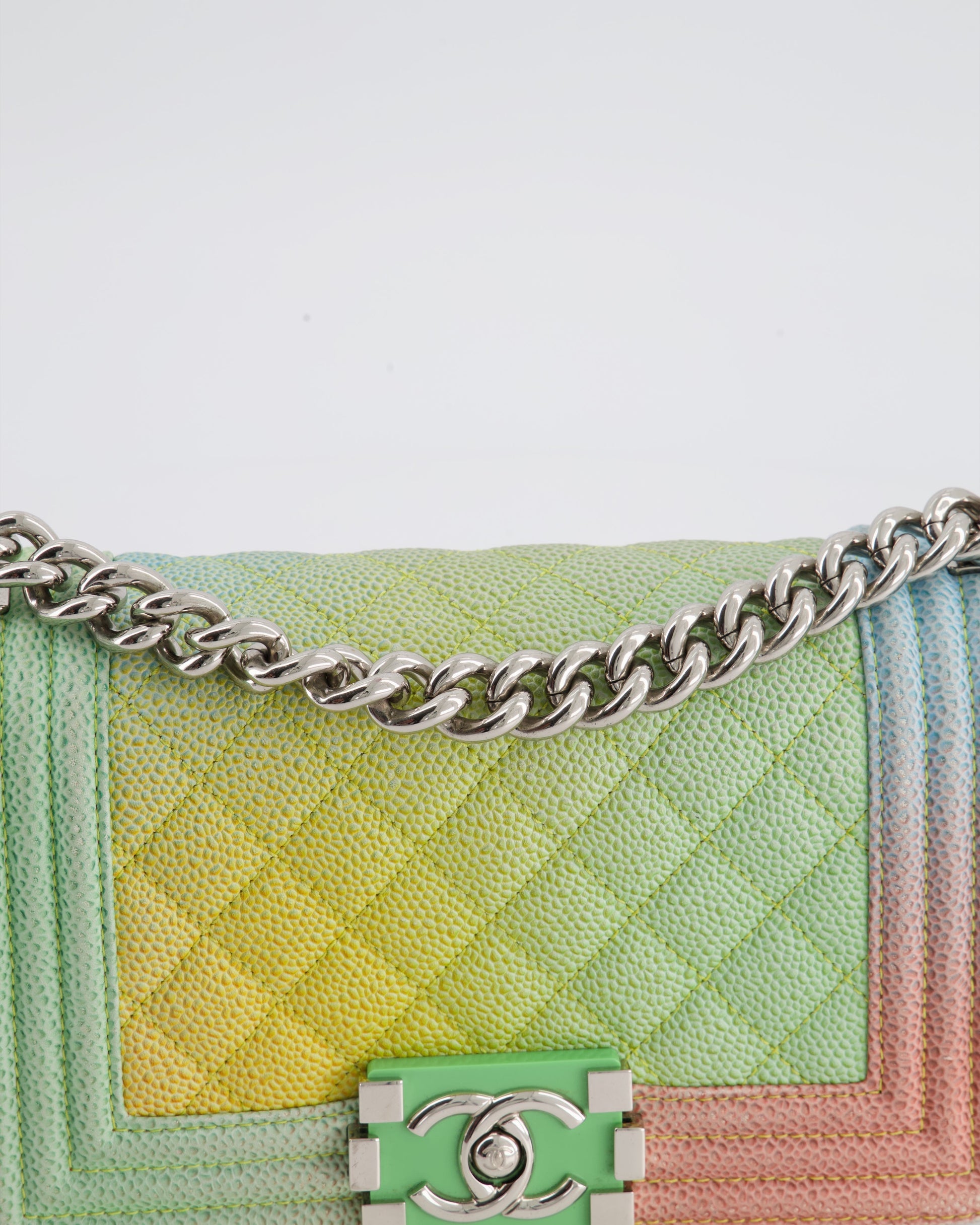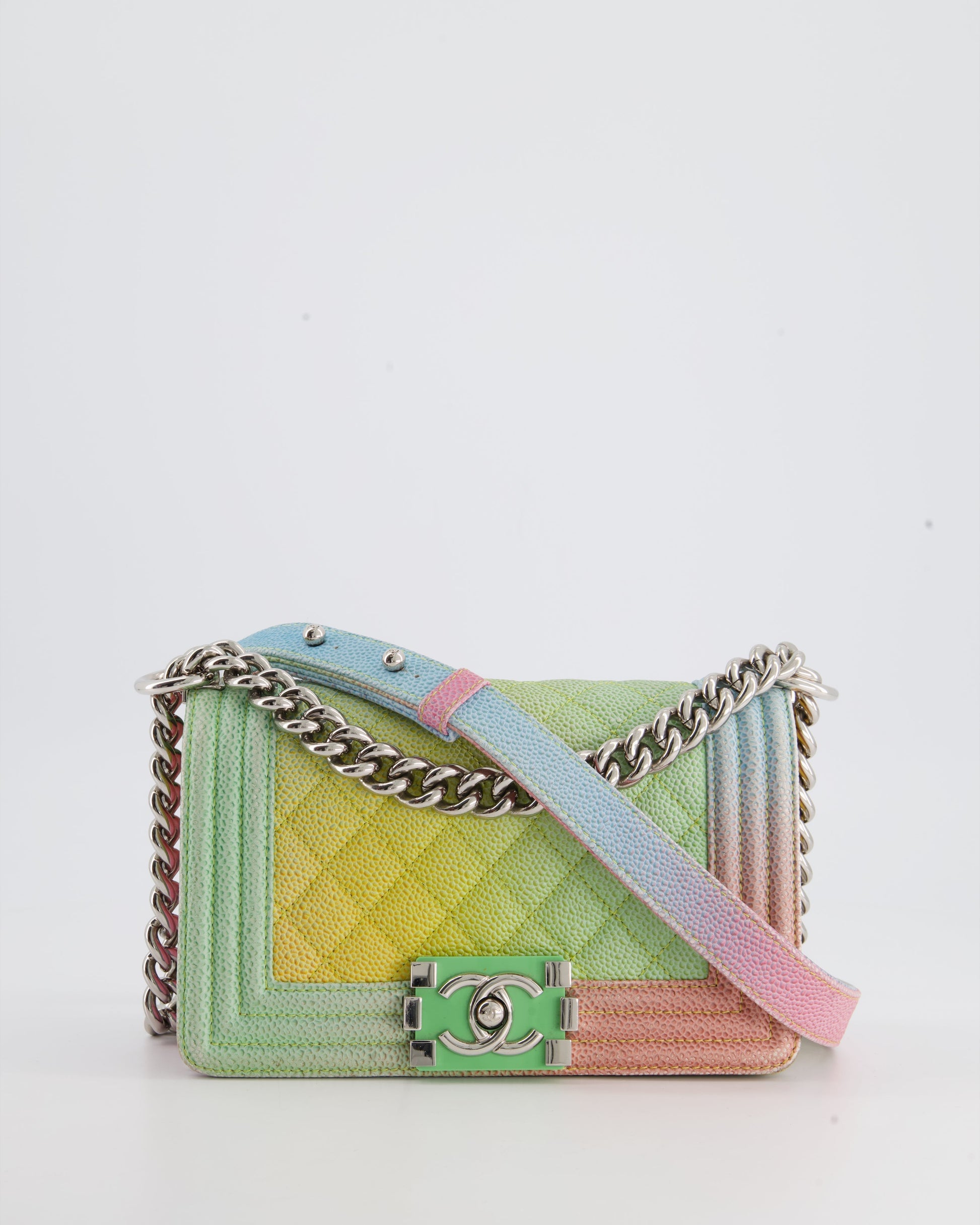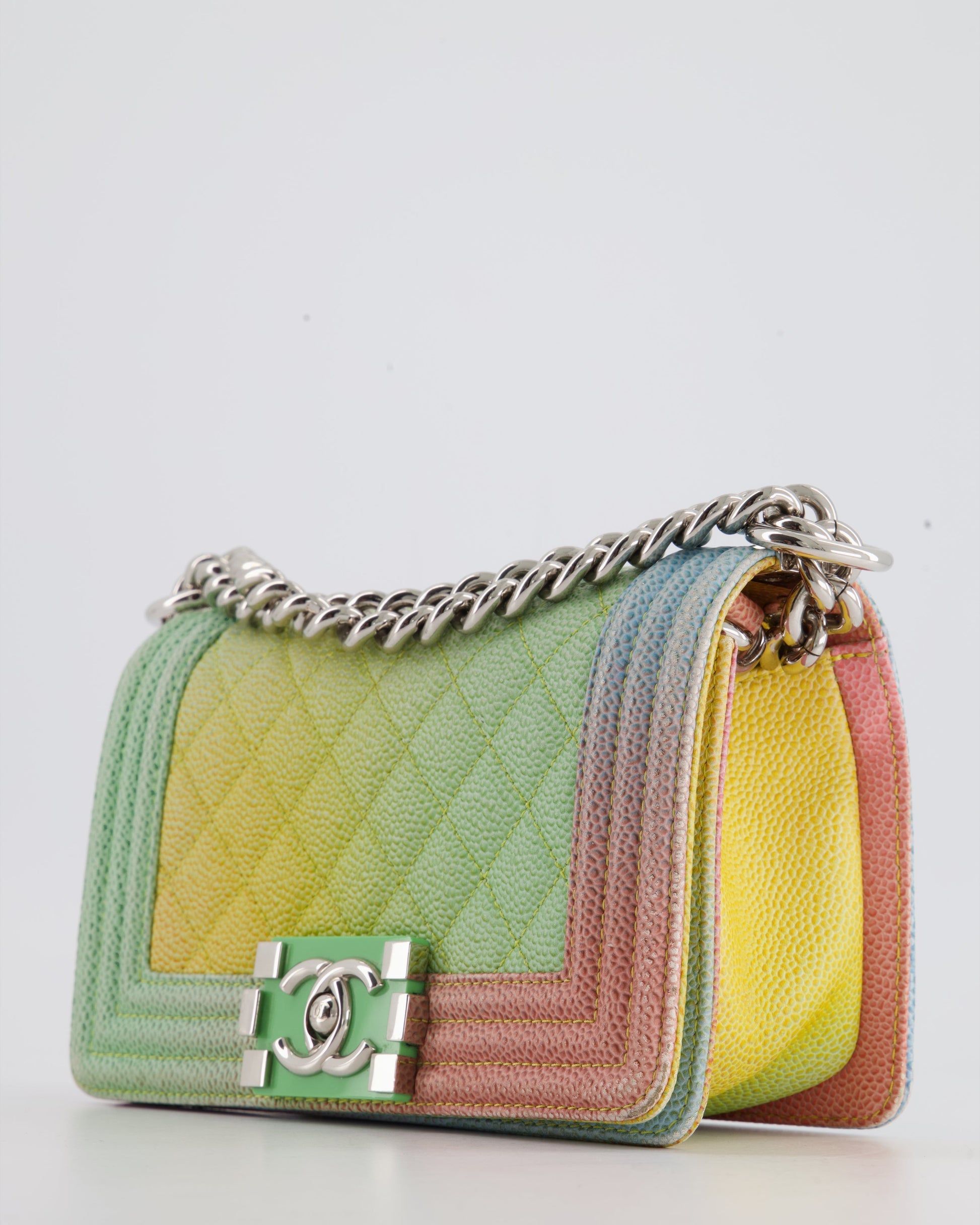 ChanelMulti-Coloured Small Boy Bag in Caviar Leather with Silver Hardware