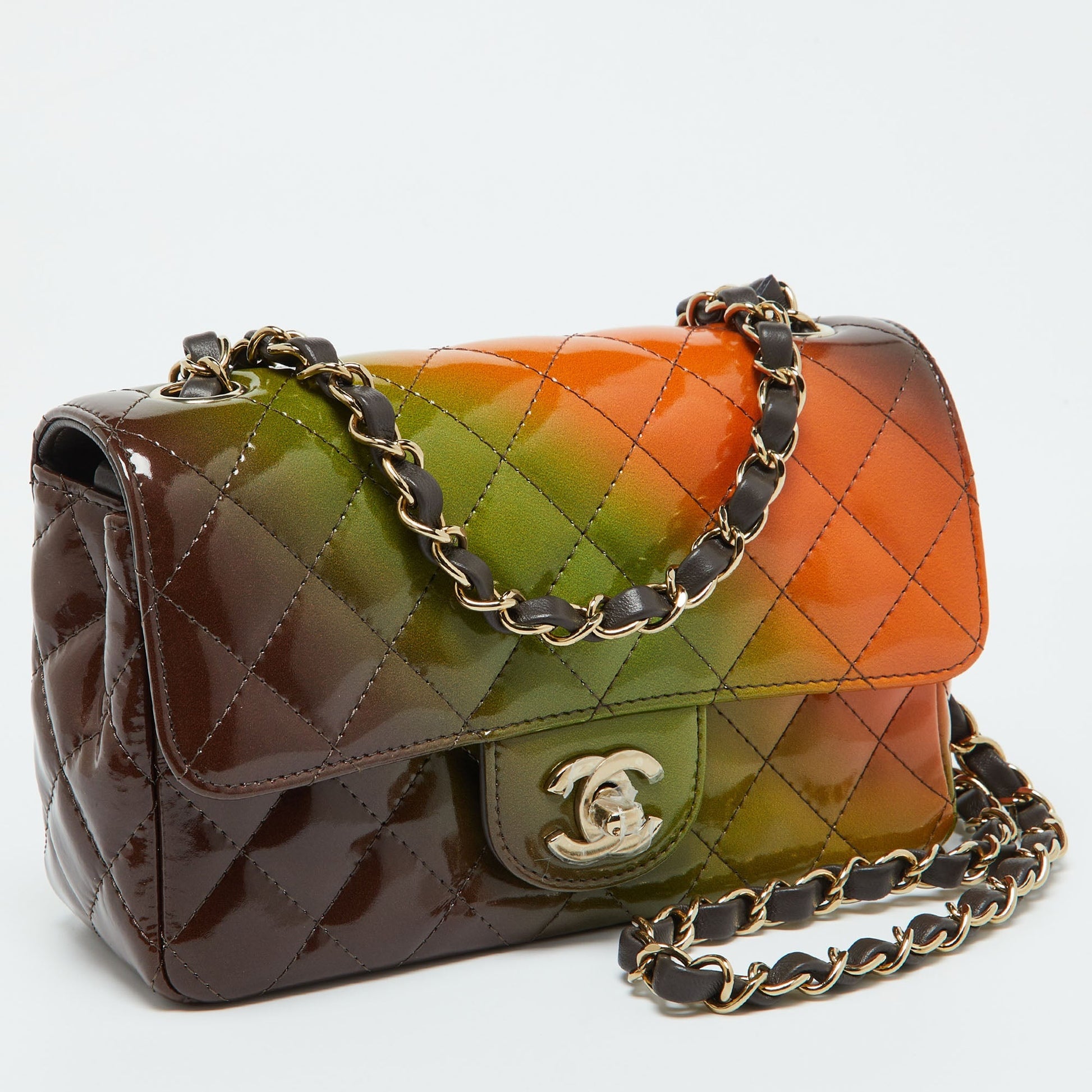 CHANEL Multicolor Quilted Patent Leather Mini Rectangle Classic Flap Shoulder Bag