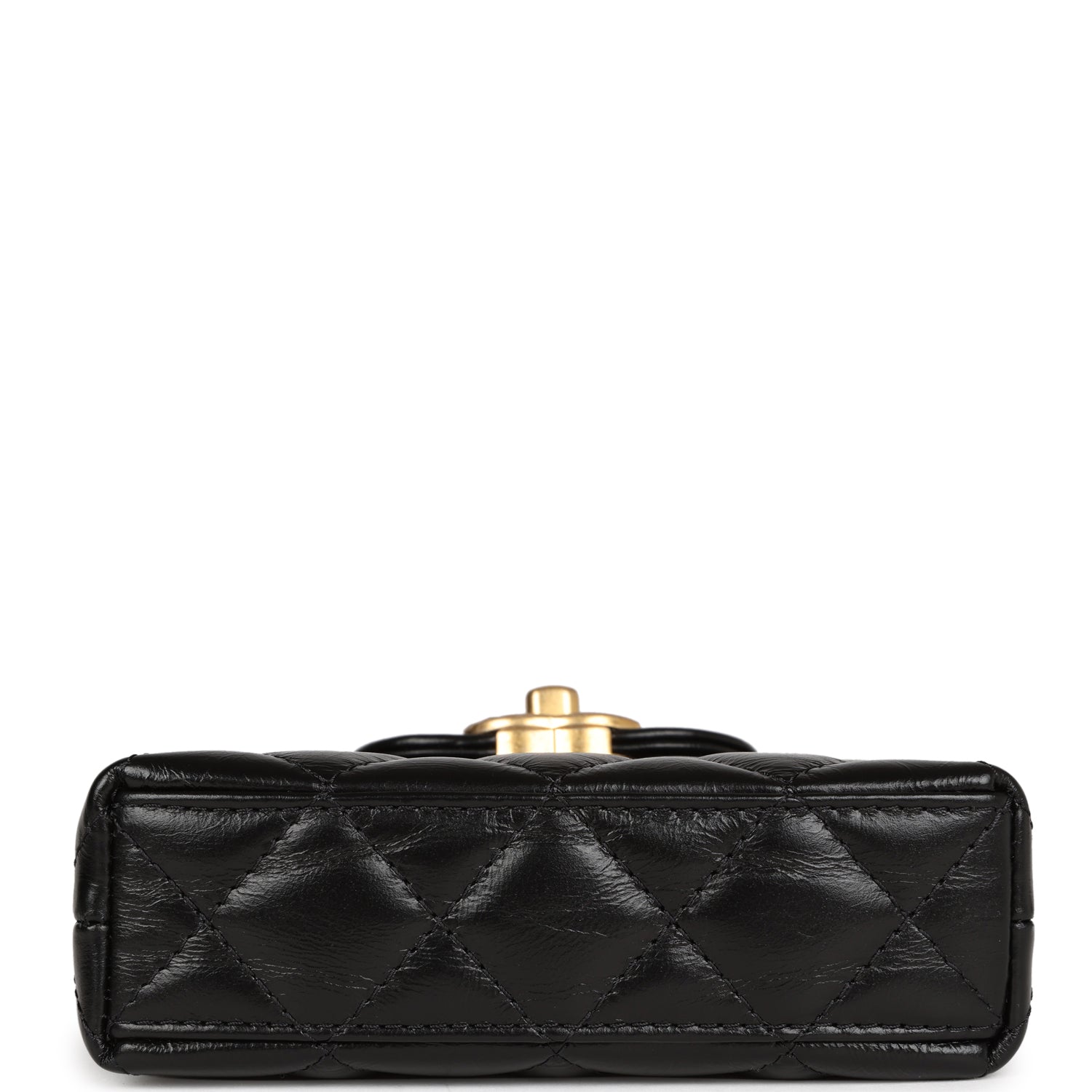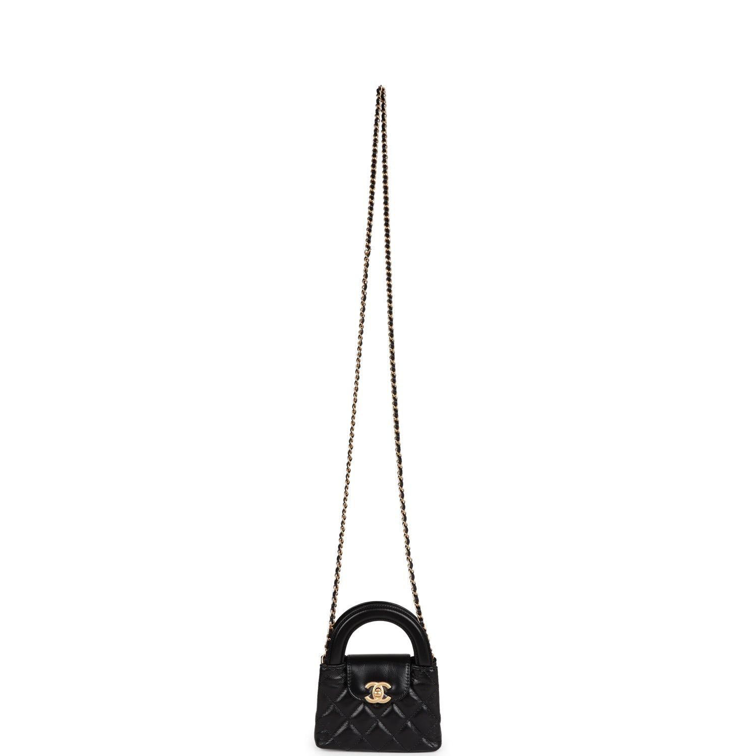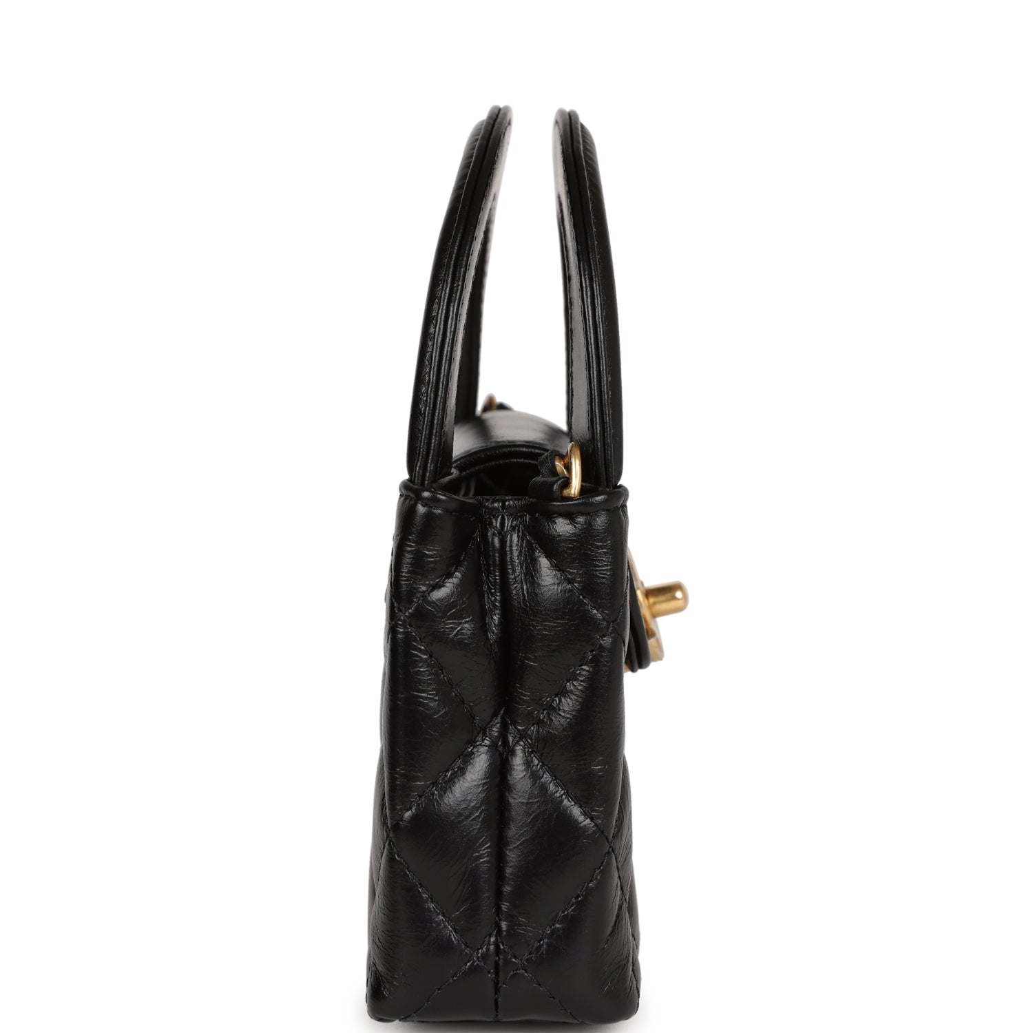Chanel Nano Kelly Shopper Black Shiny Aged Calfskin Brushed Gold Hardware