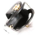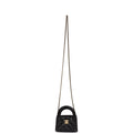 This Nano Kelly is in Black Shiny Aged Calfskin with Brushed Gold Hardware, tonal stitching, two flat back top handles and an interwoven aged gold with black leather shoulder strap