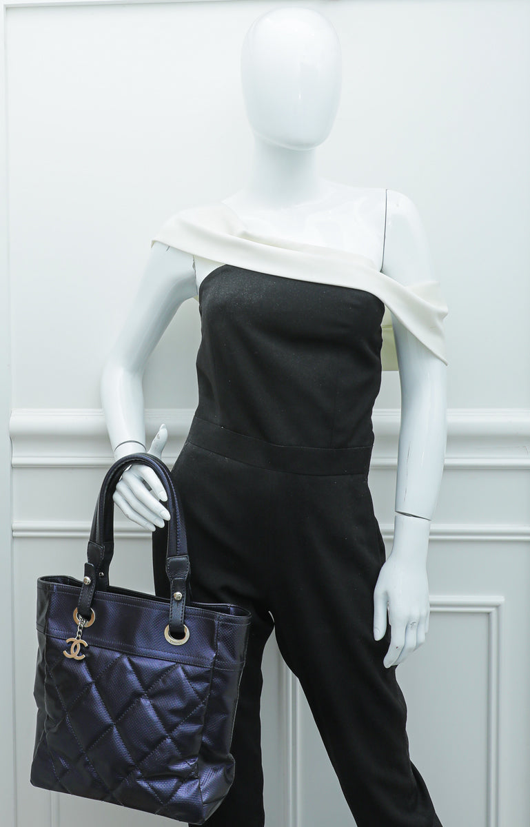 Chanel Navy Blue CC Paris Biarritz Tote Small Bag