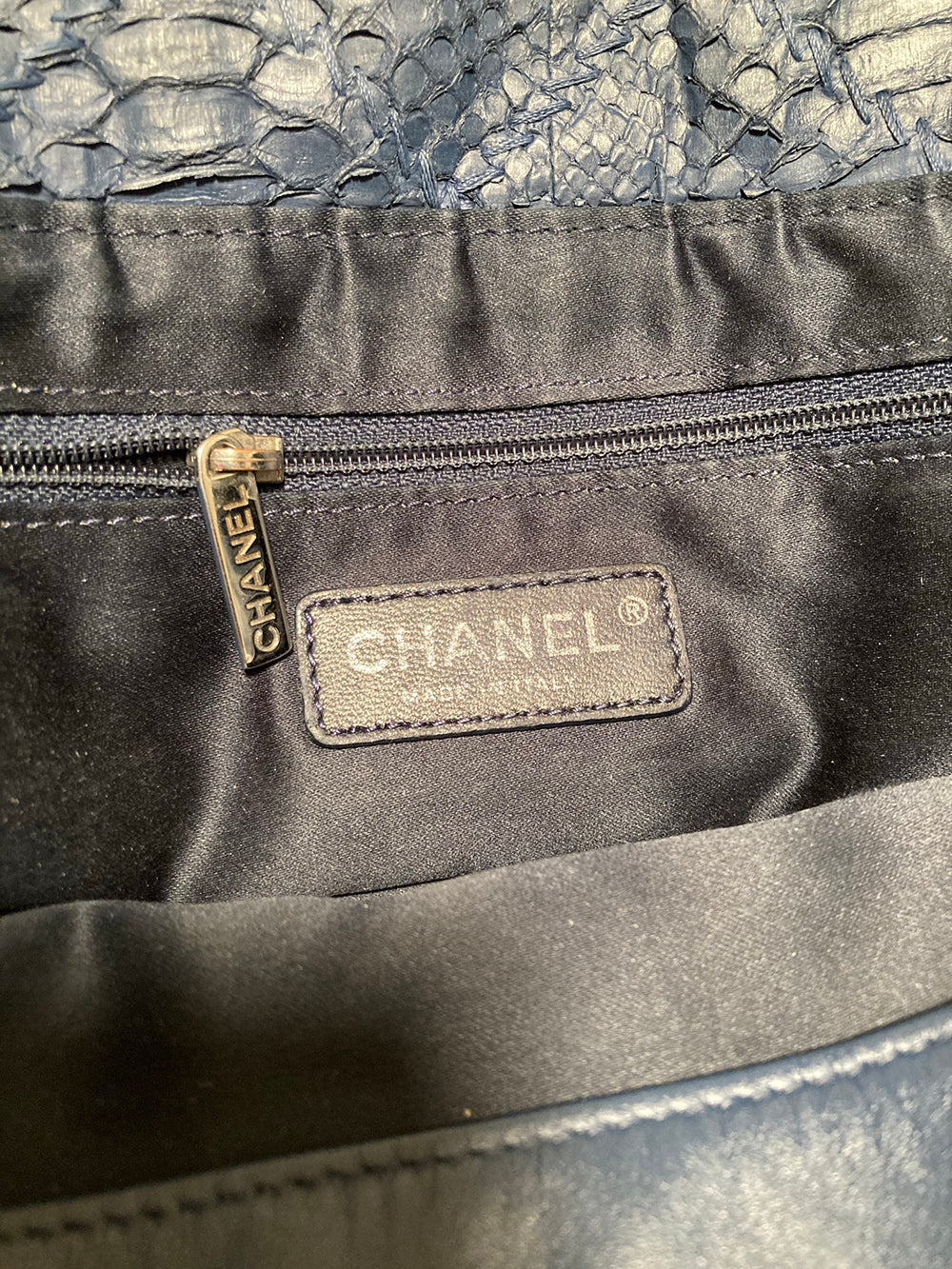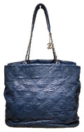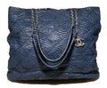 Chanel Navy Blue Quilted Matte Snakeskin Tote