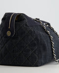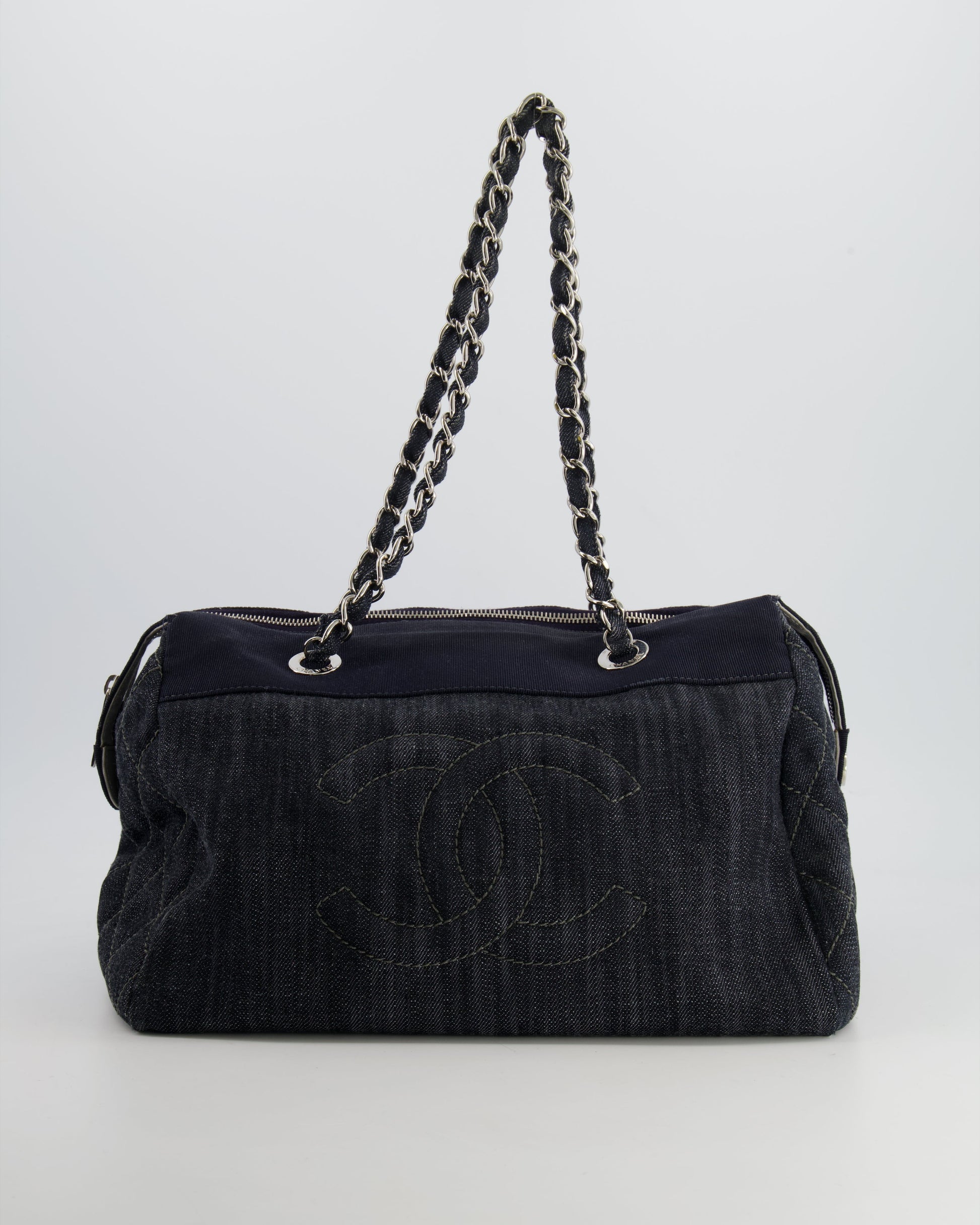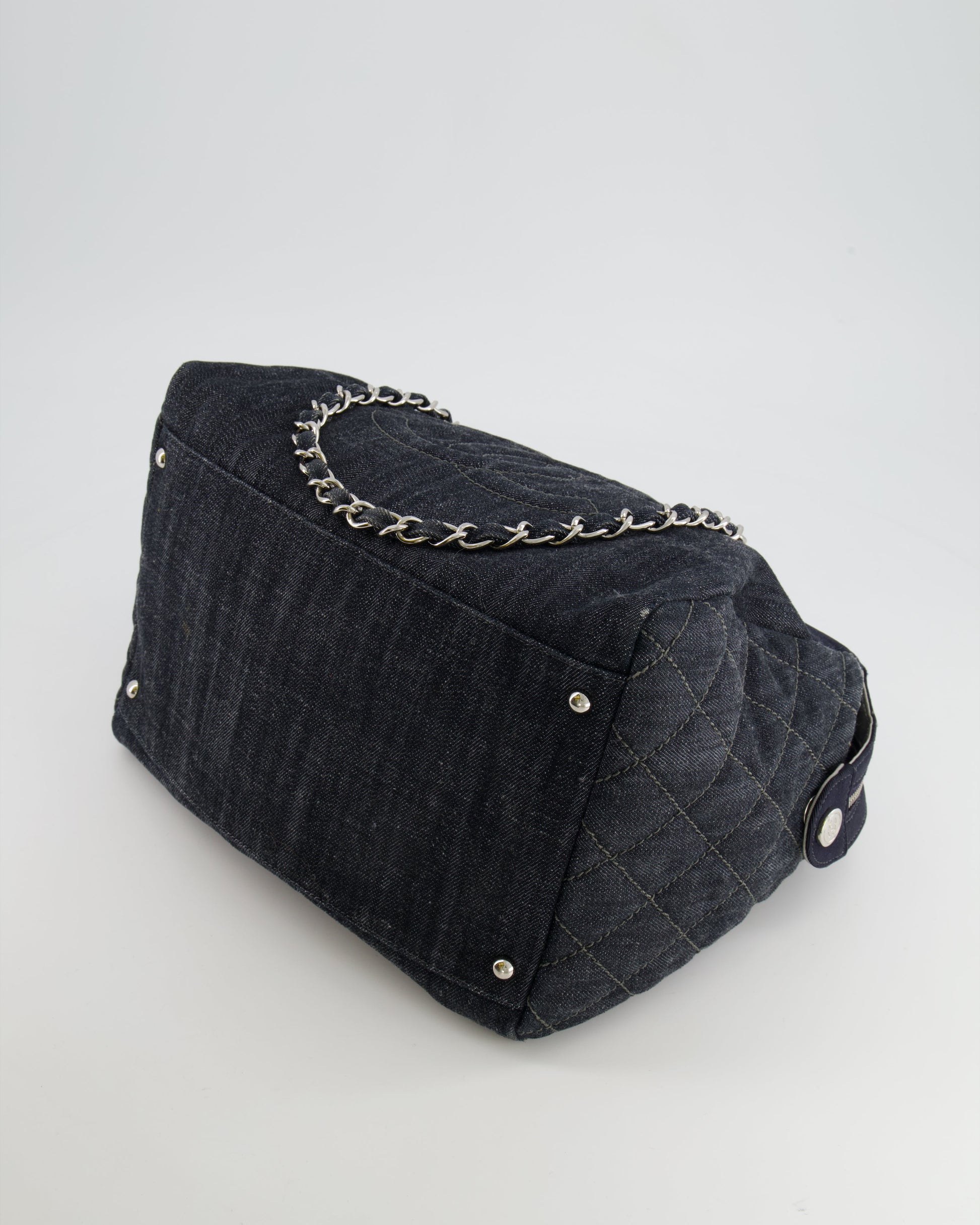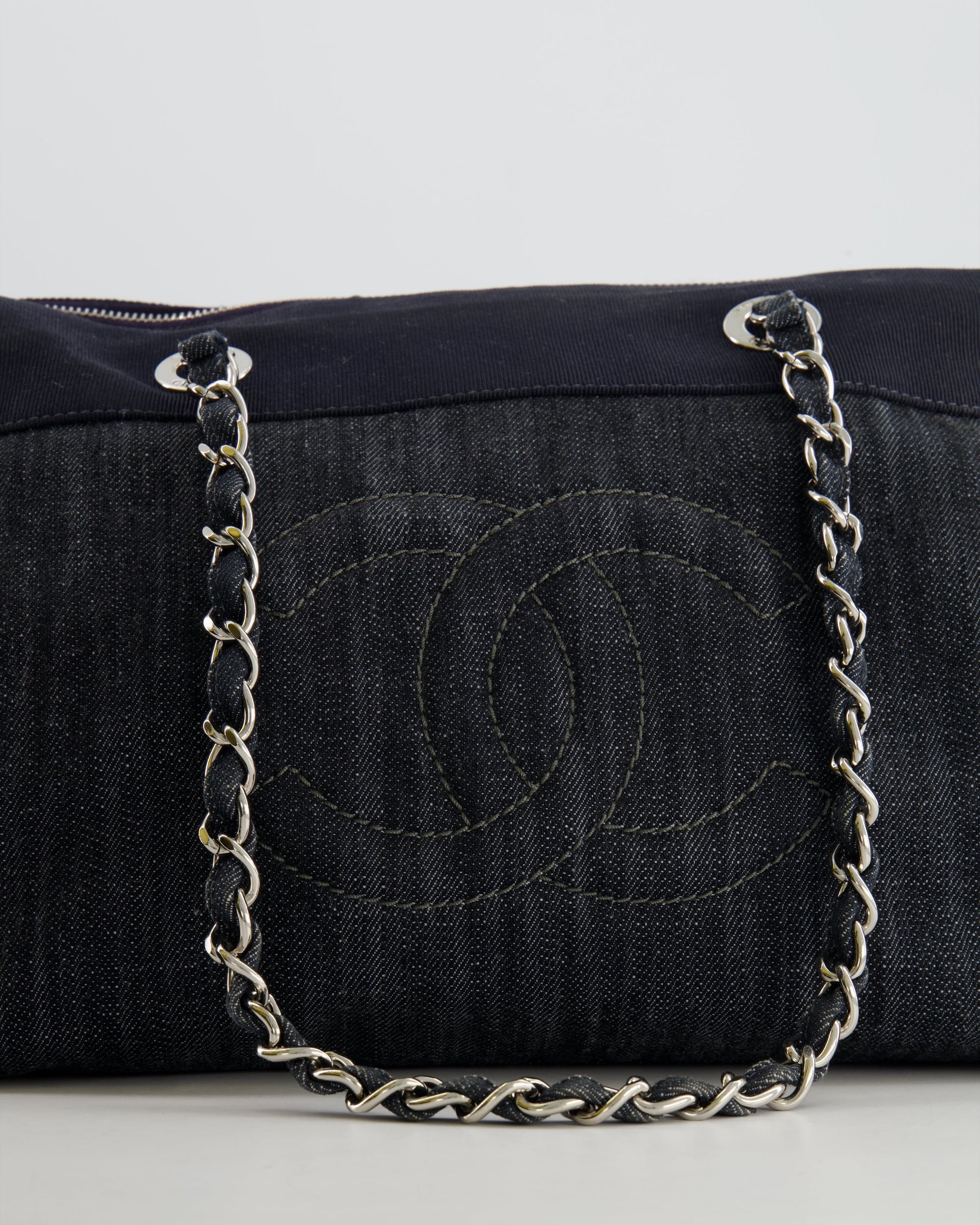 Chanel Navy Denim CC Logo Shoulder Bag with Silver Hardware