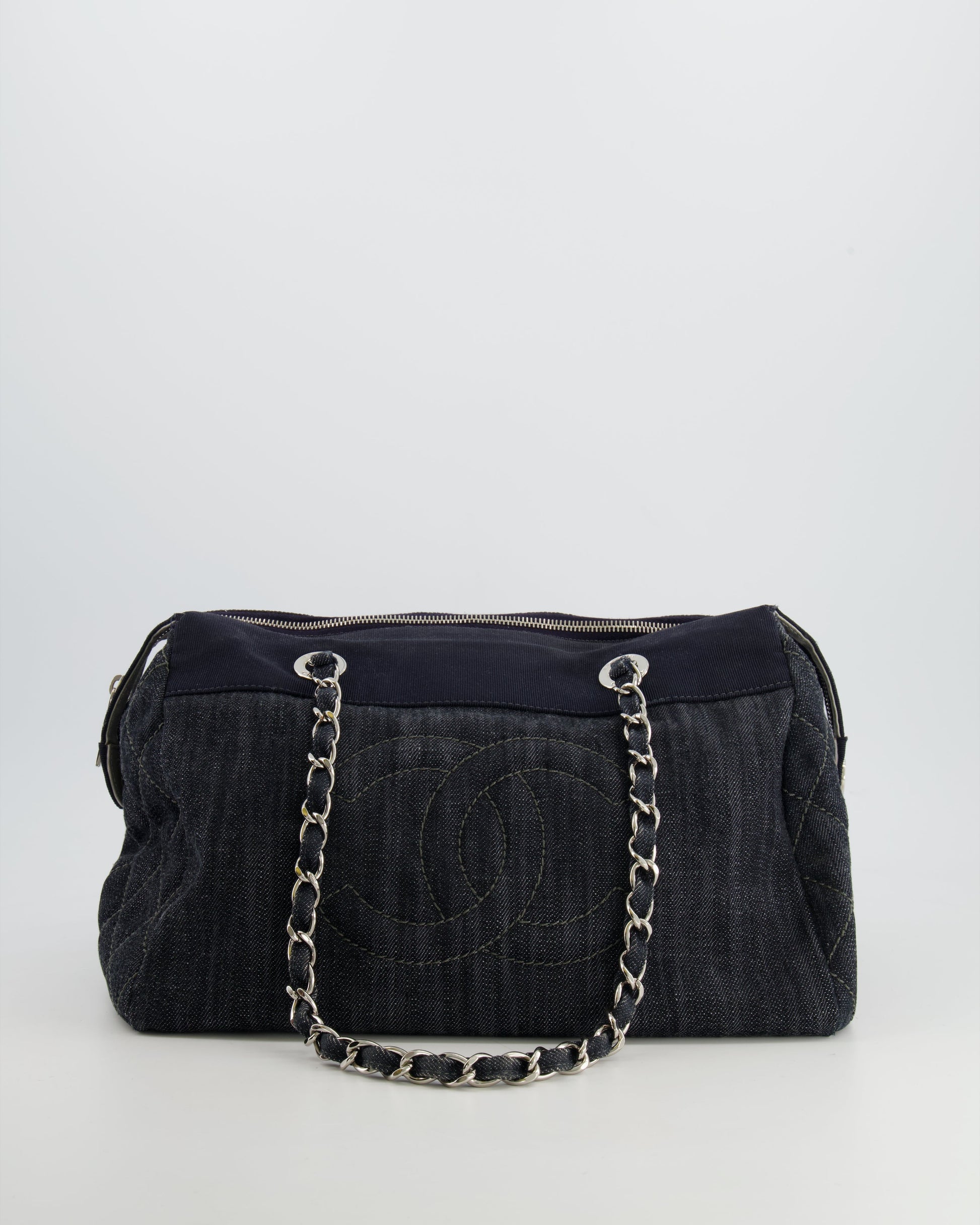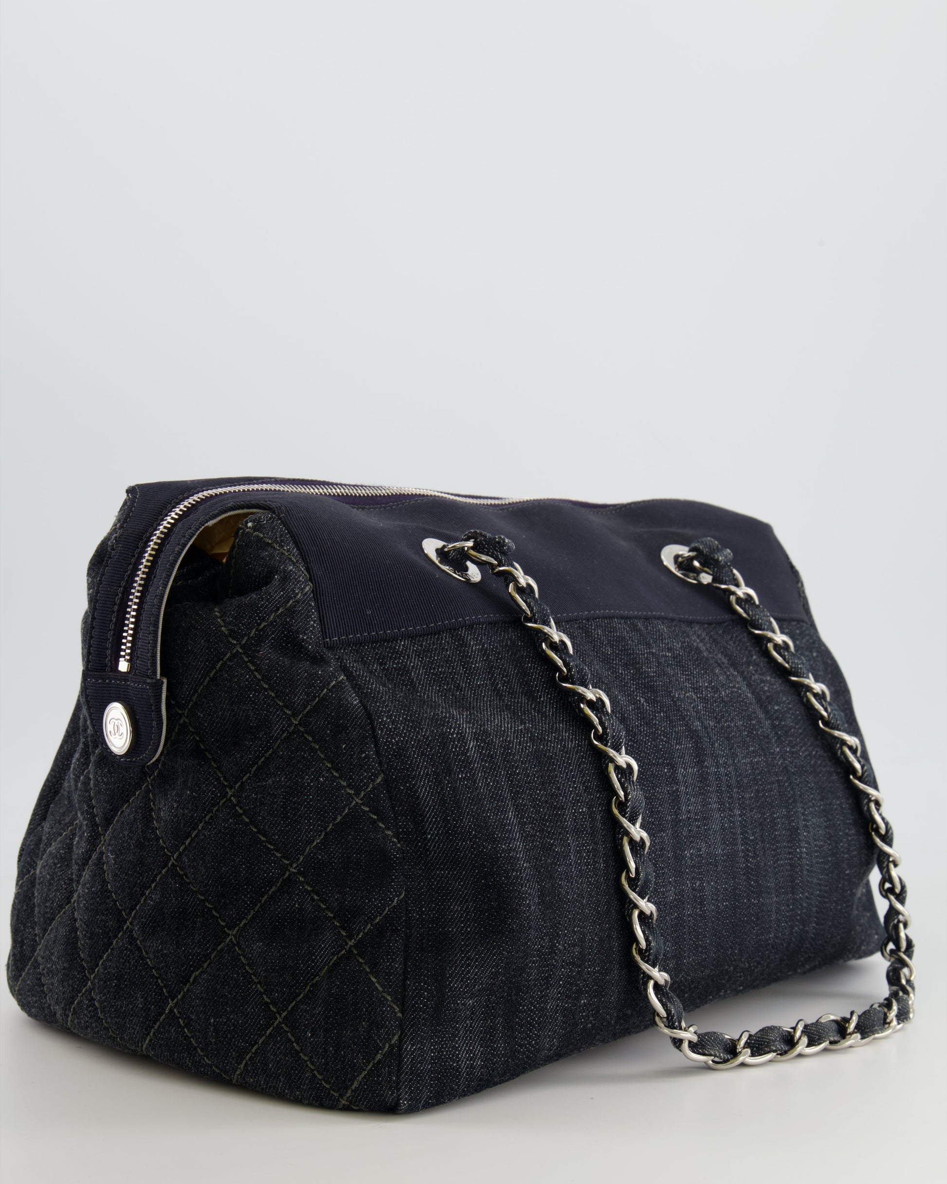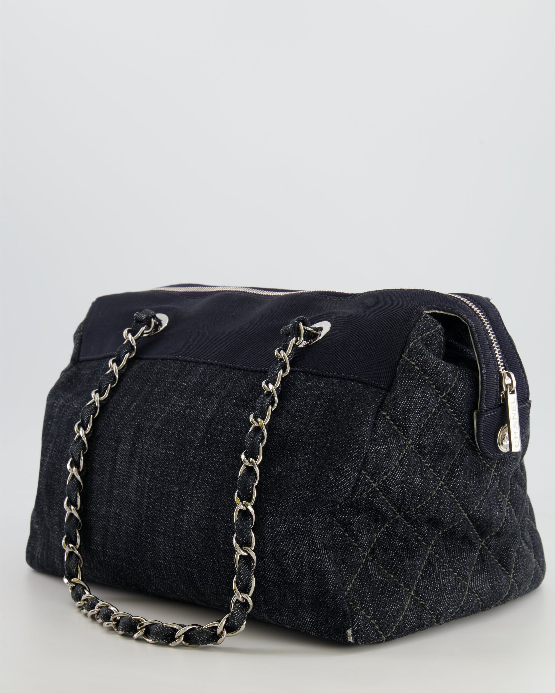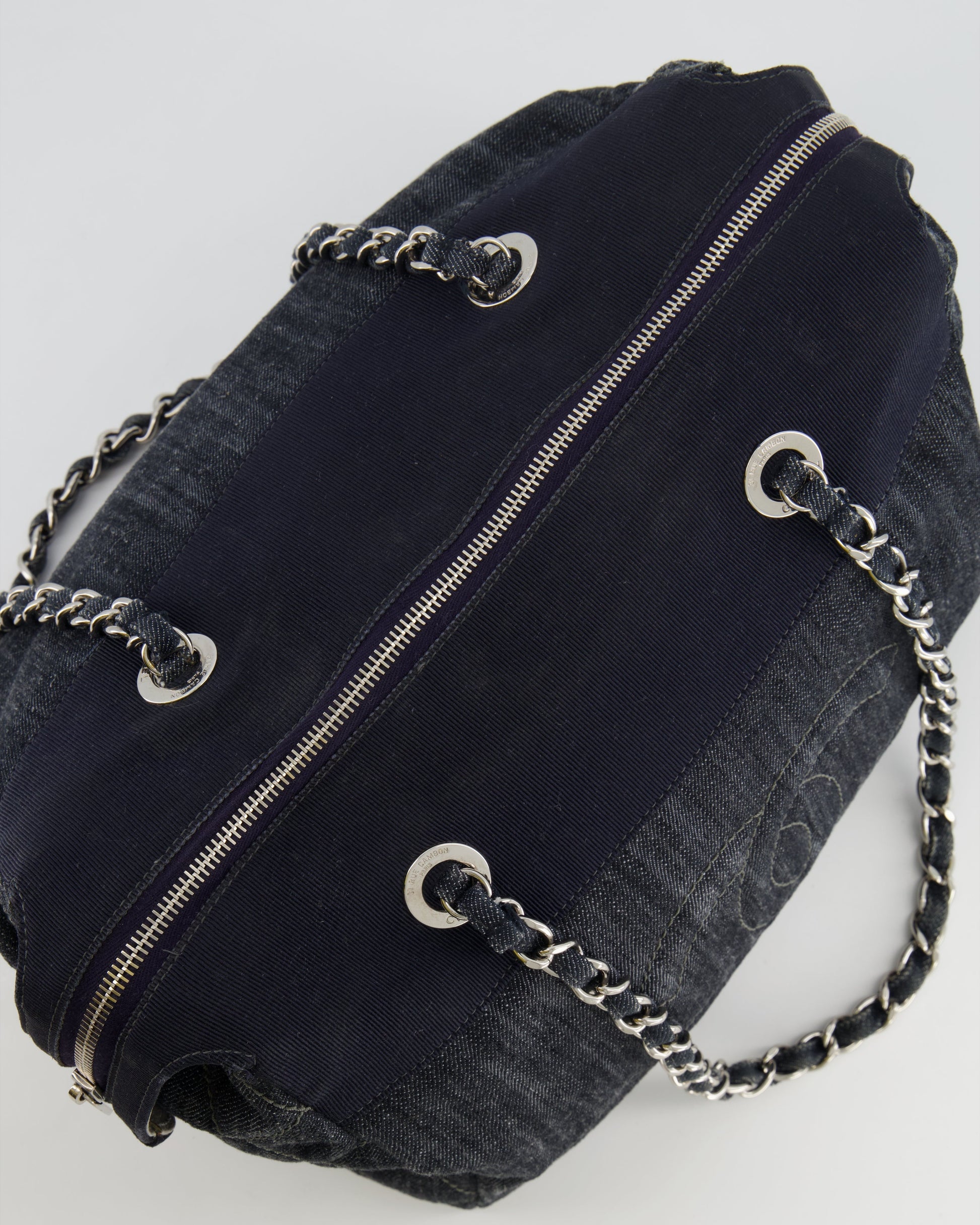 Chanel Navy Denim CC Logo Shoulder Bag with Silver Hardware