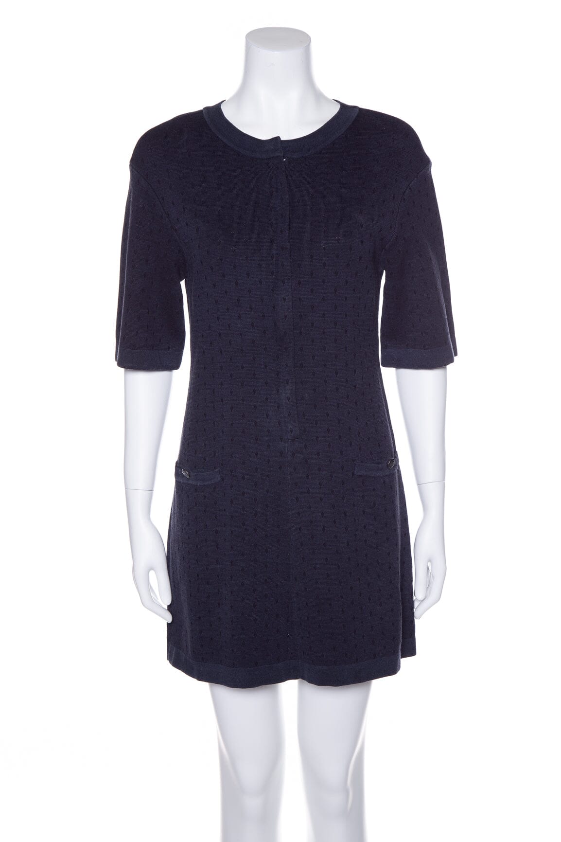Chanel Navy Knit Short Sleeve Dress SZ 38