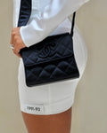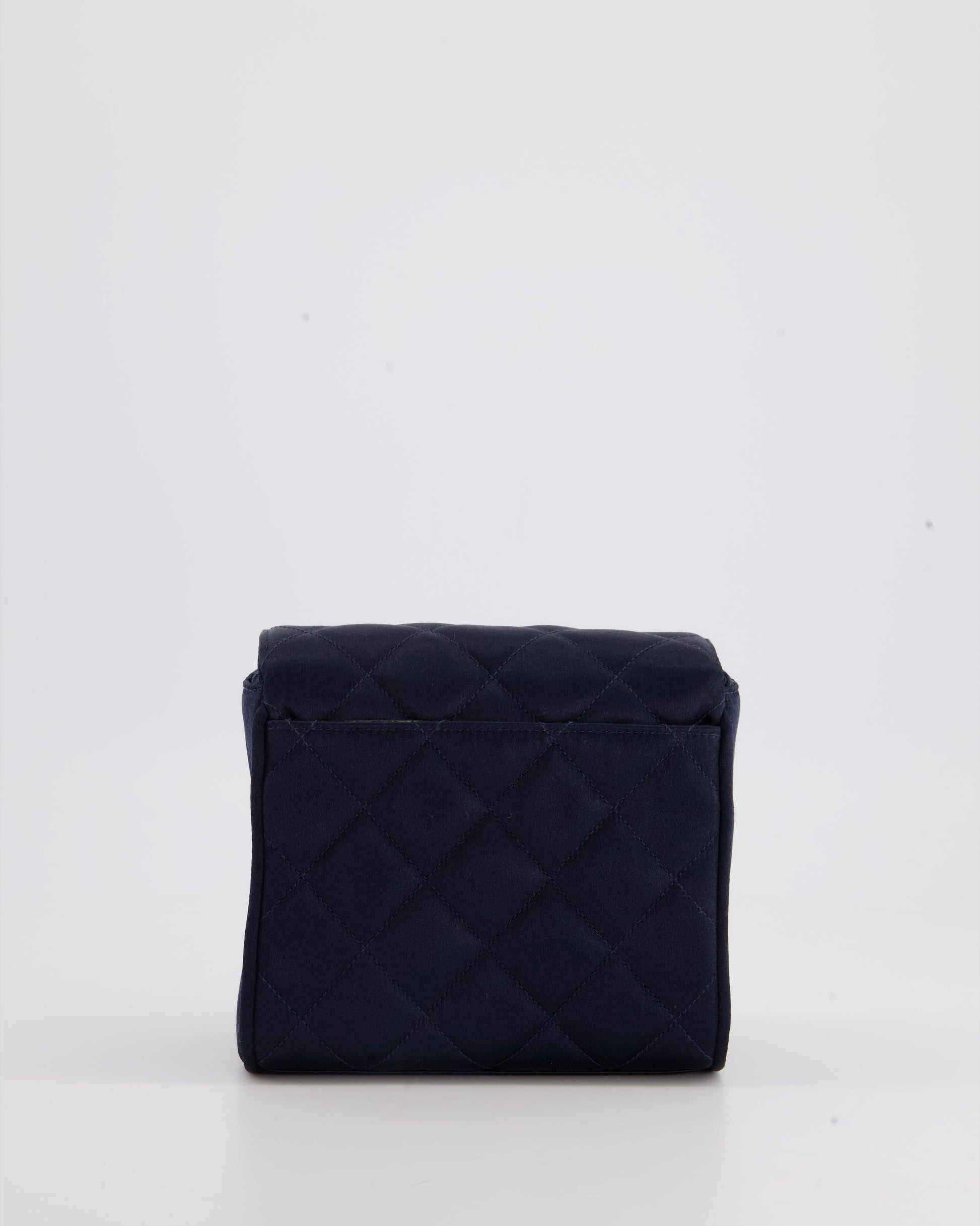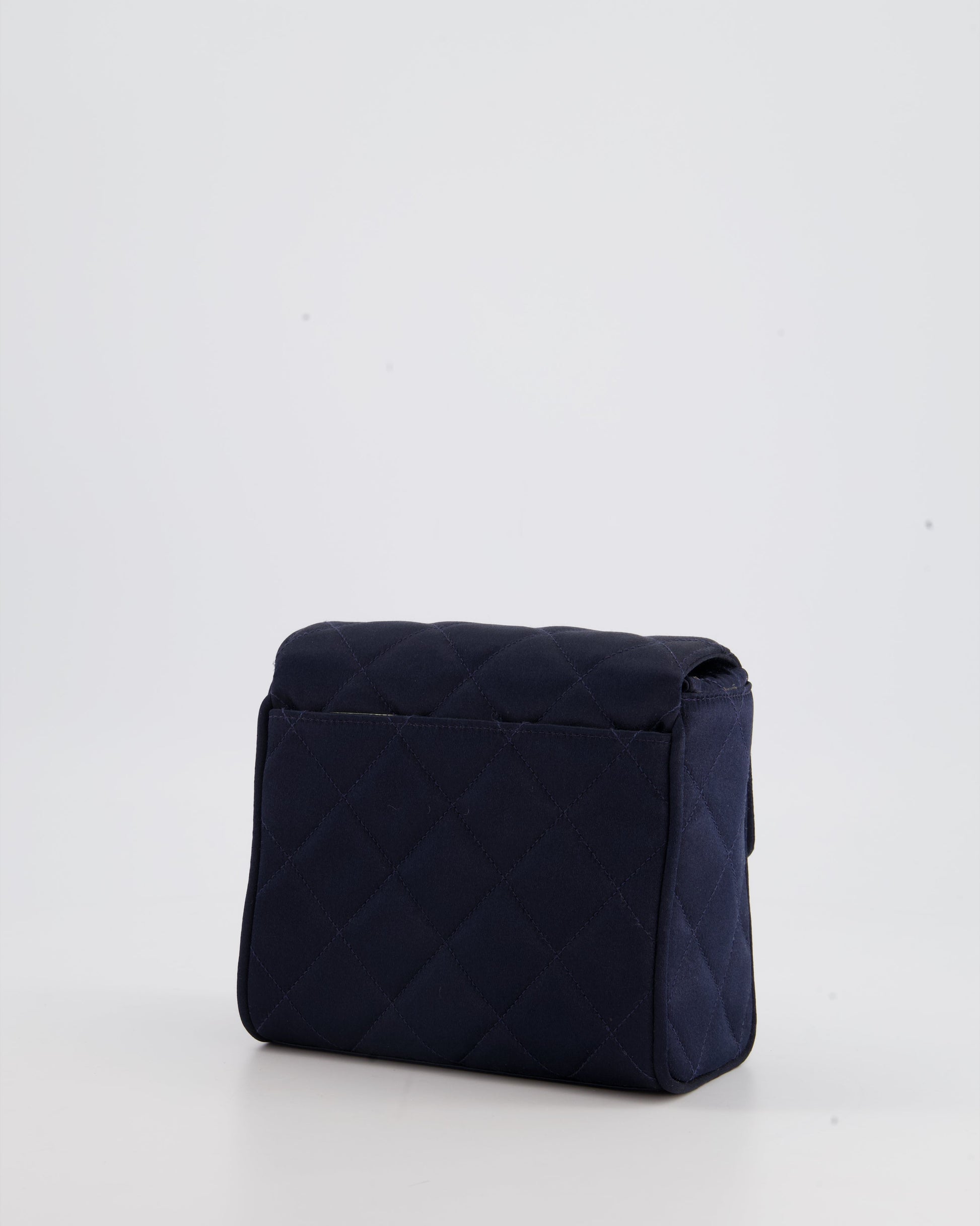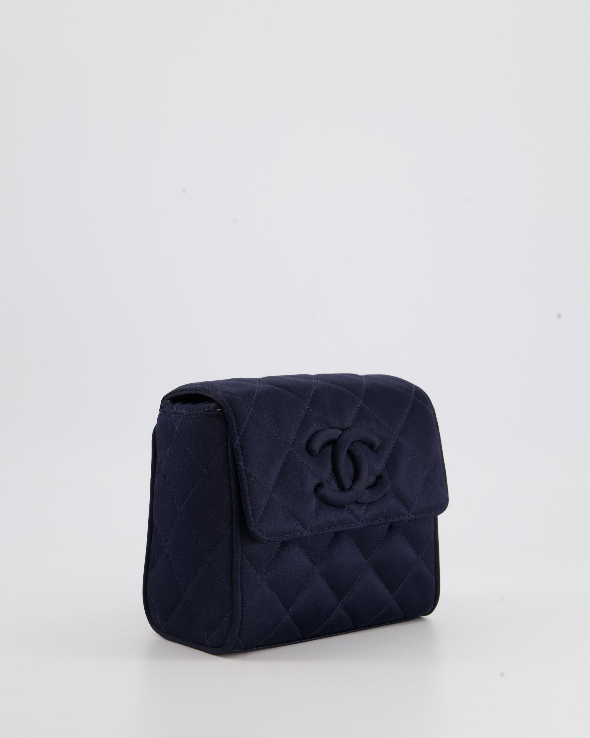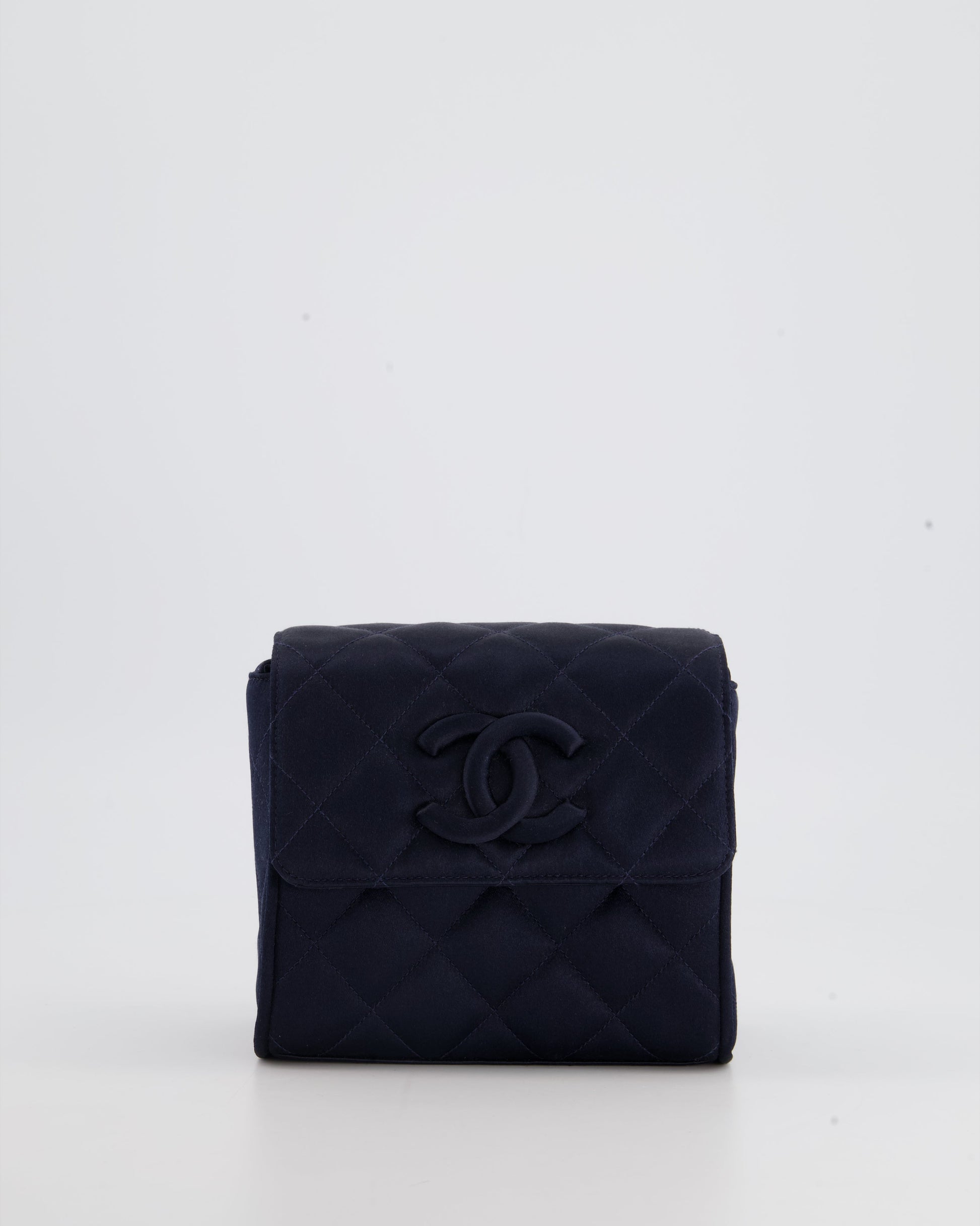 Chanel Navy Vintage Silk Diamond Quilted Shoulder Bag with CC Logo