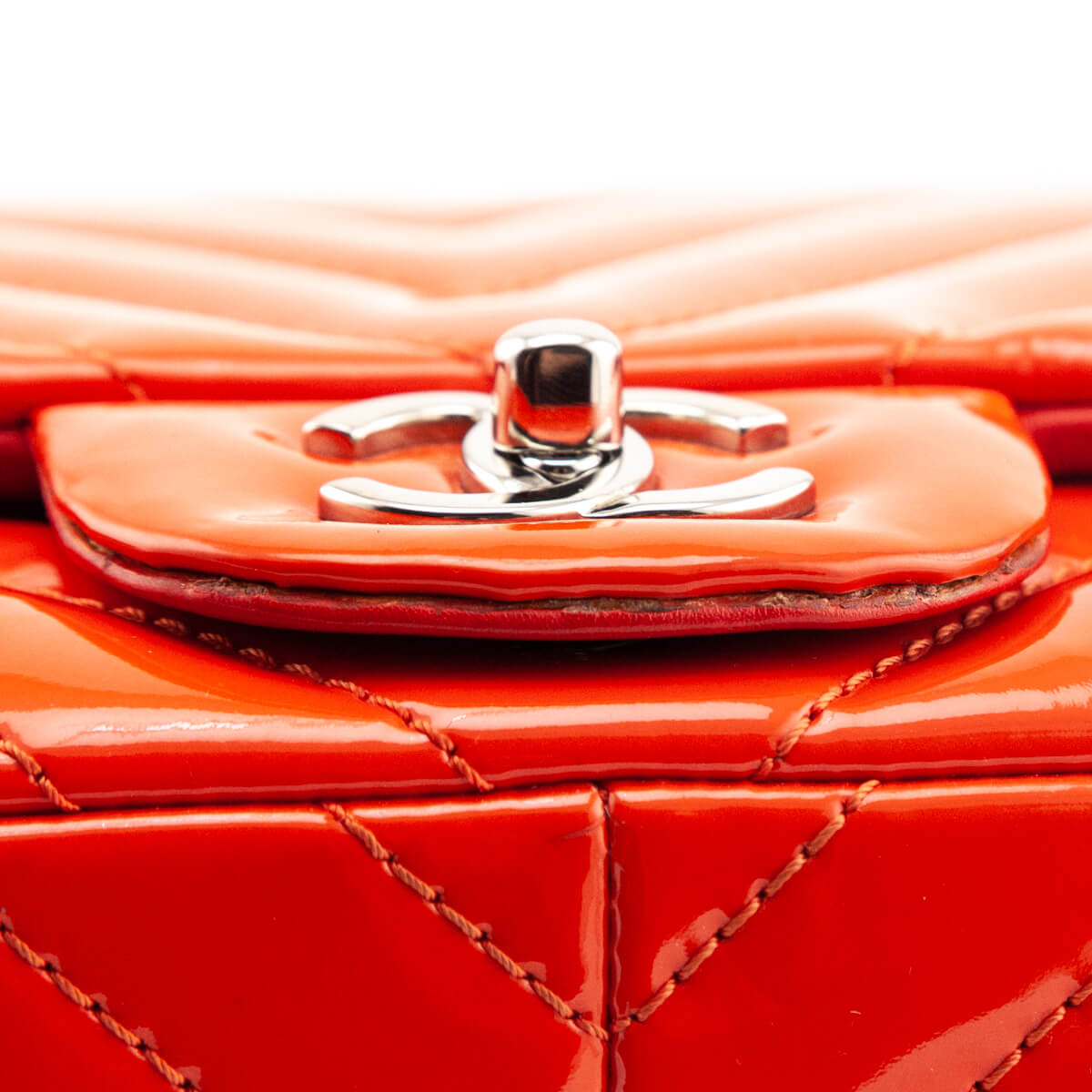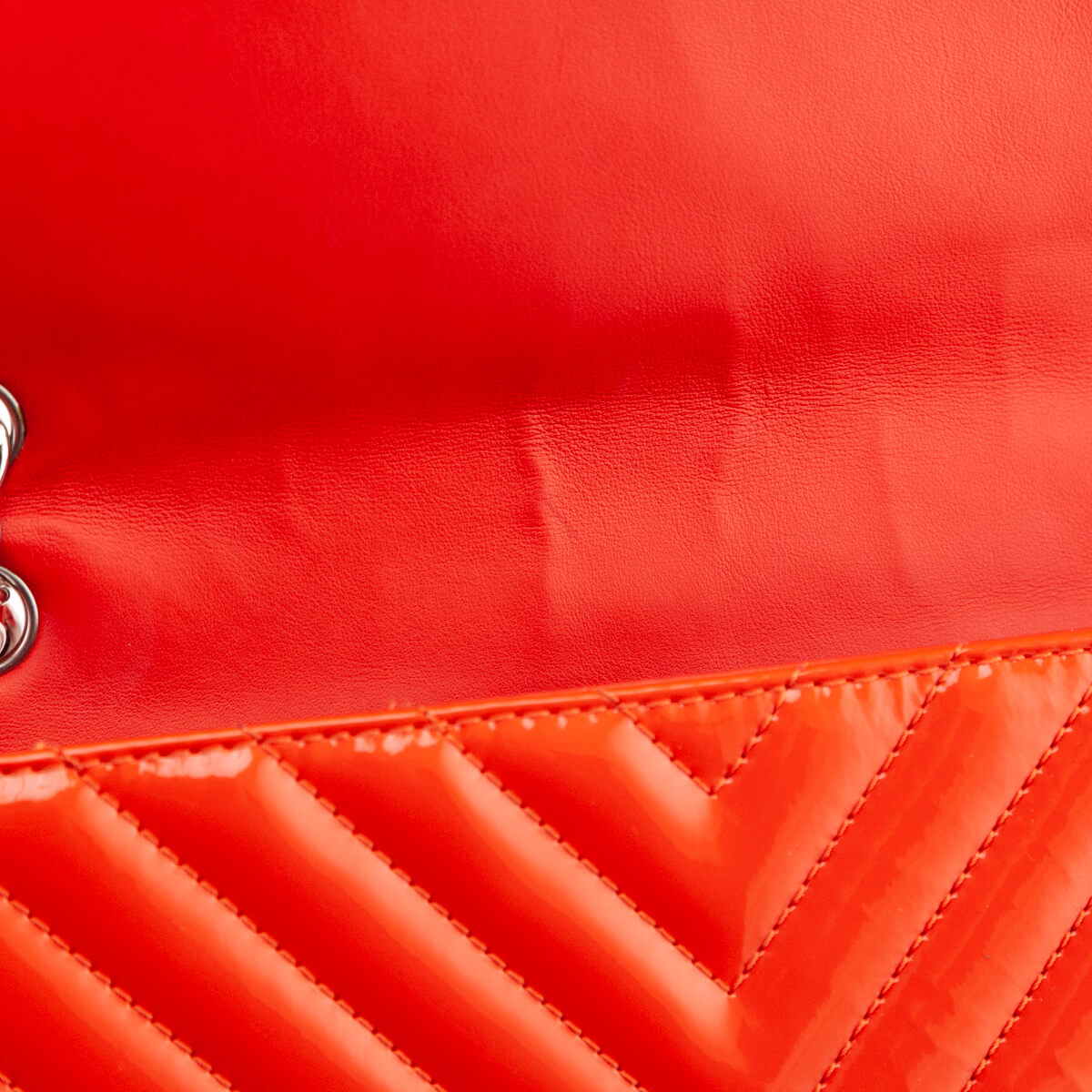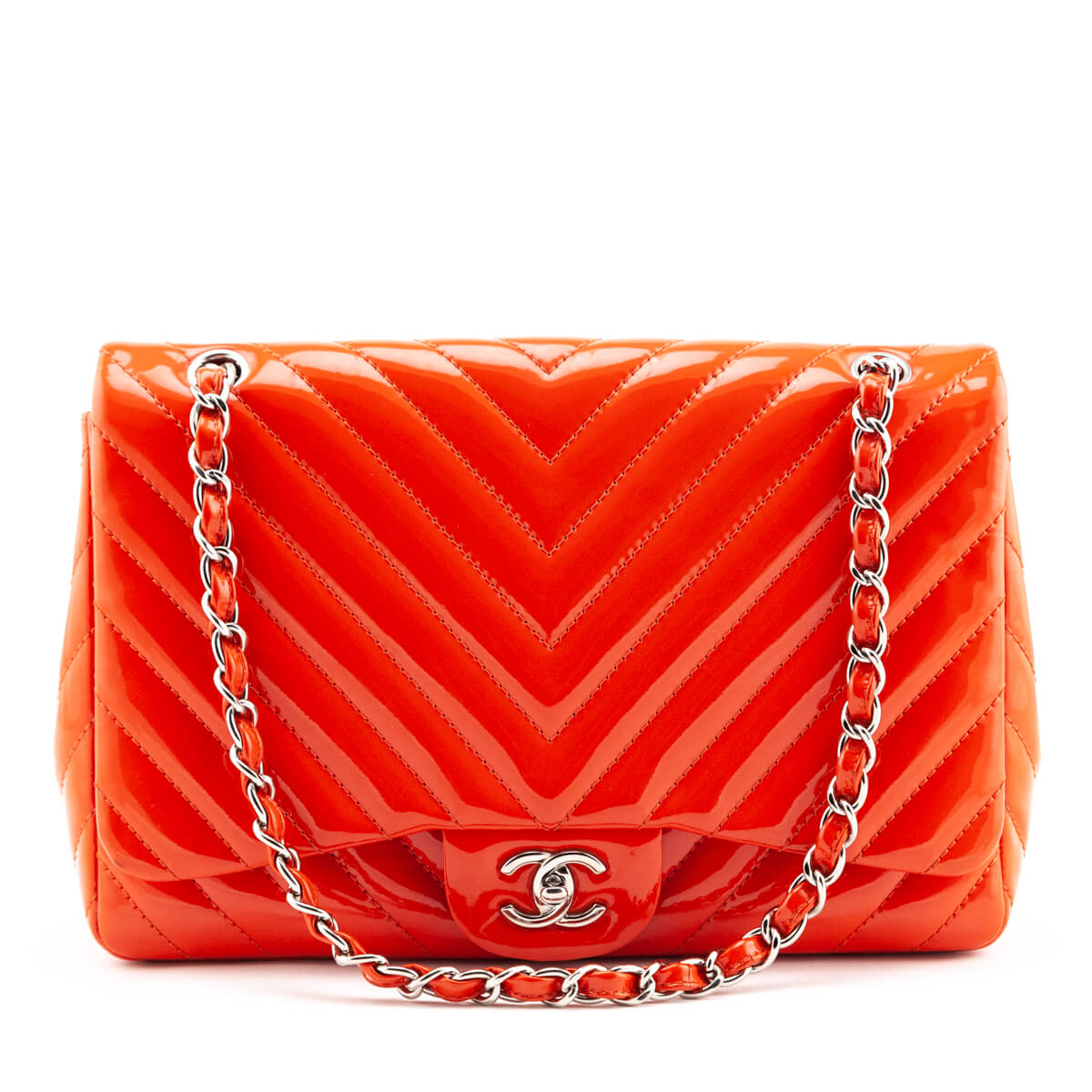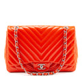Chanel Orange Quilted Chevron Patent Maxi Classic Single Flap Shoulder Bag