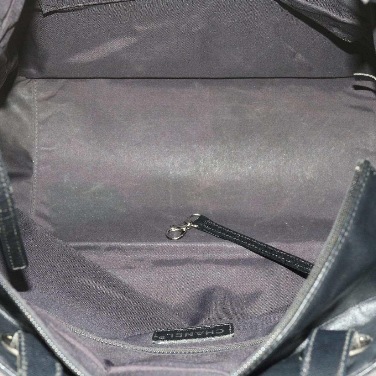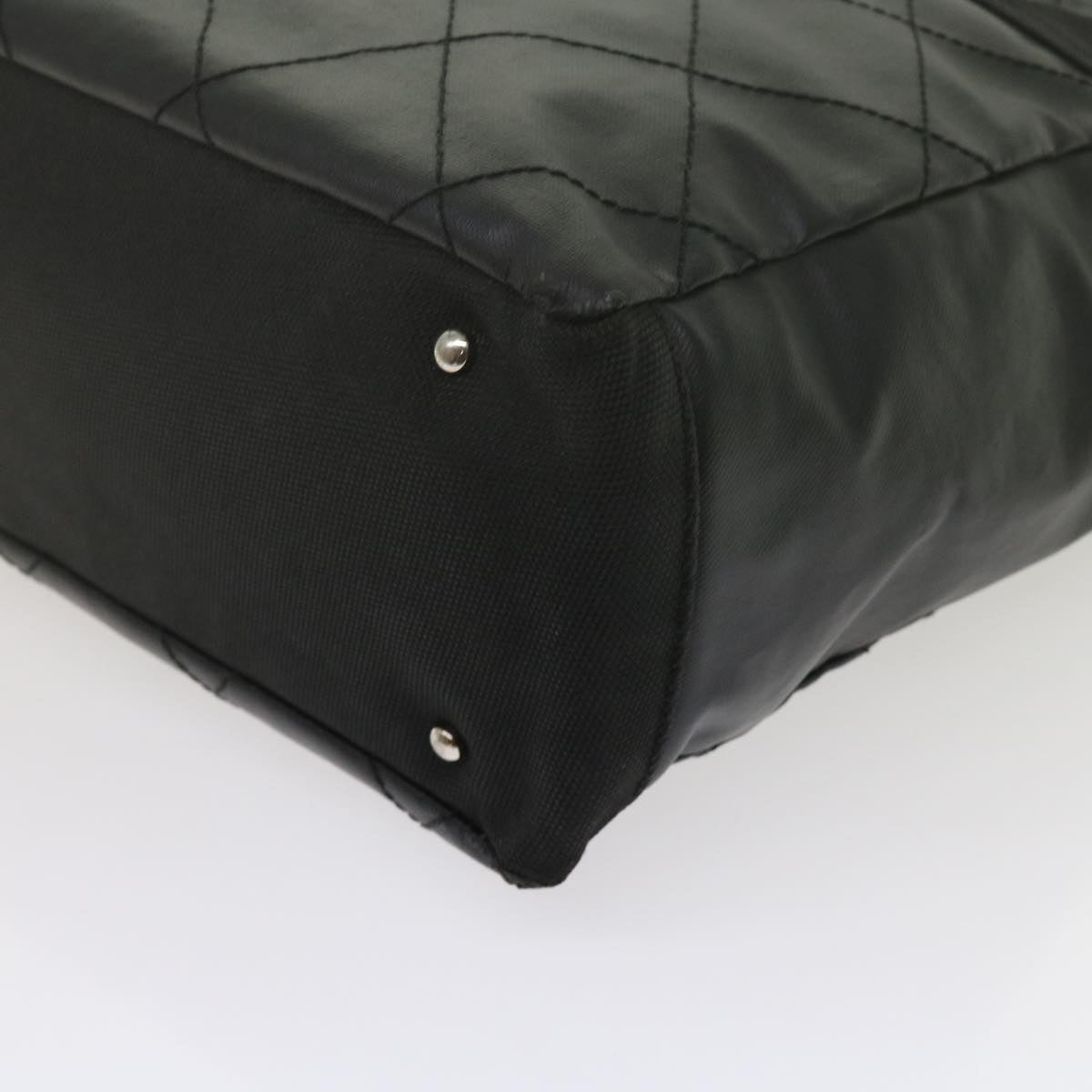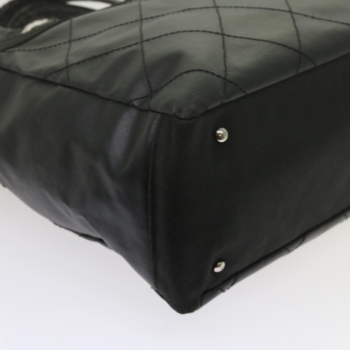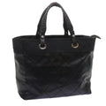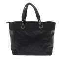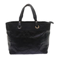 CHANEL Paris Biarritz MM Tote Bag Coated Canvas Black CC Auth bs10905