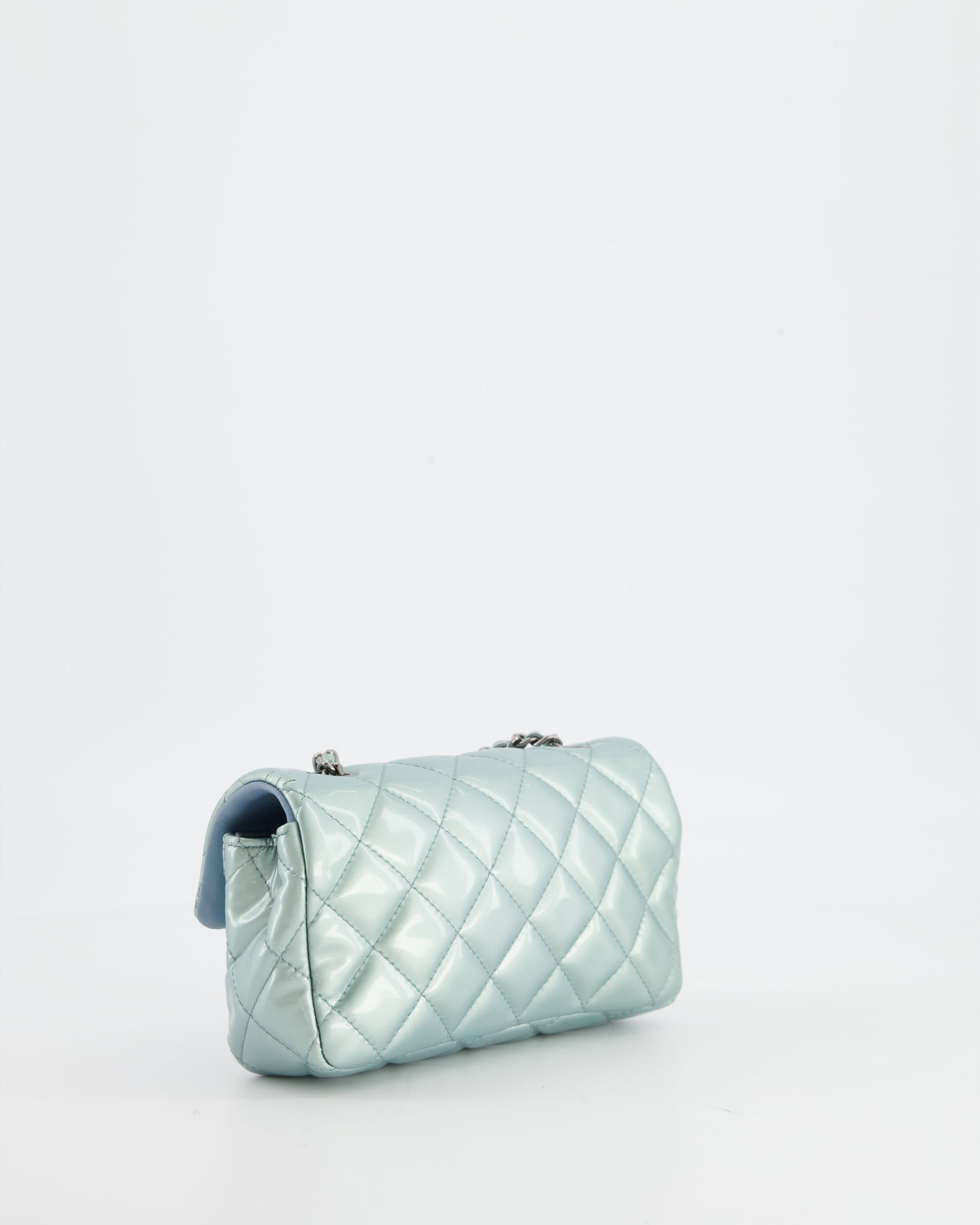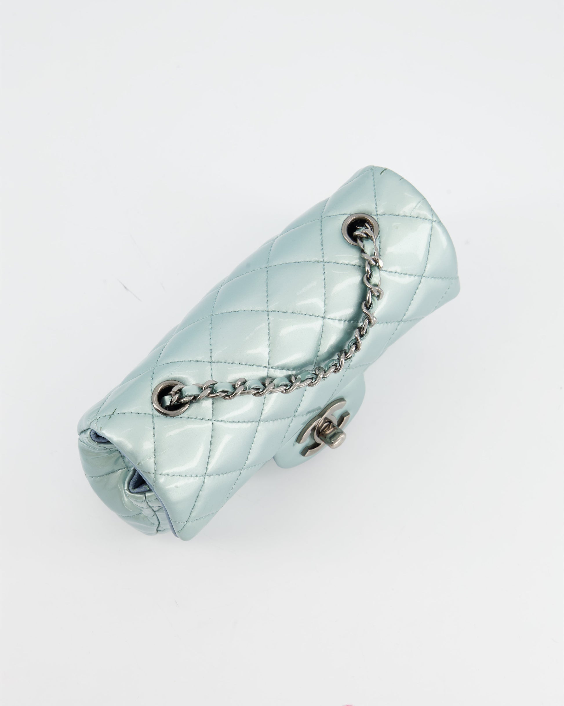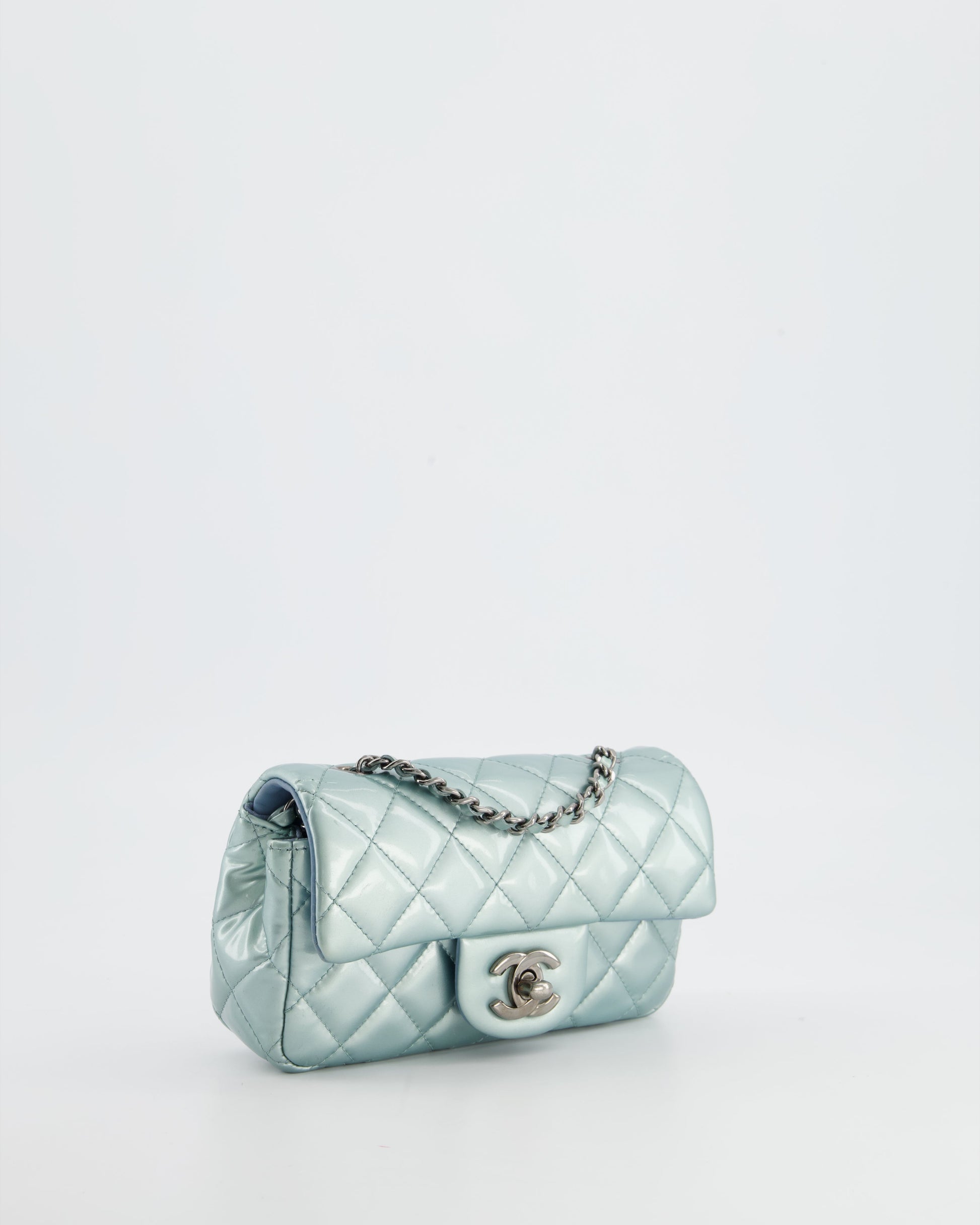 Chanel Pearl Light Blue Mini Rectangular Flap Bag with Ruthenium Hardware