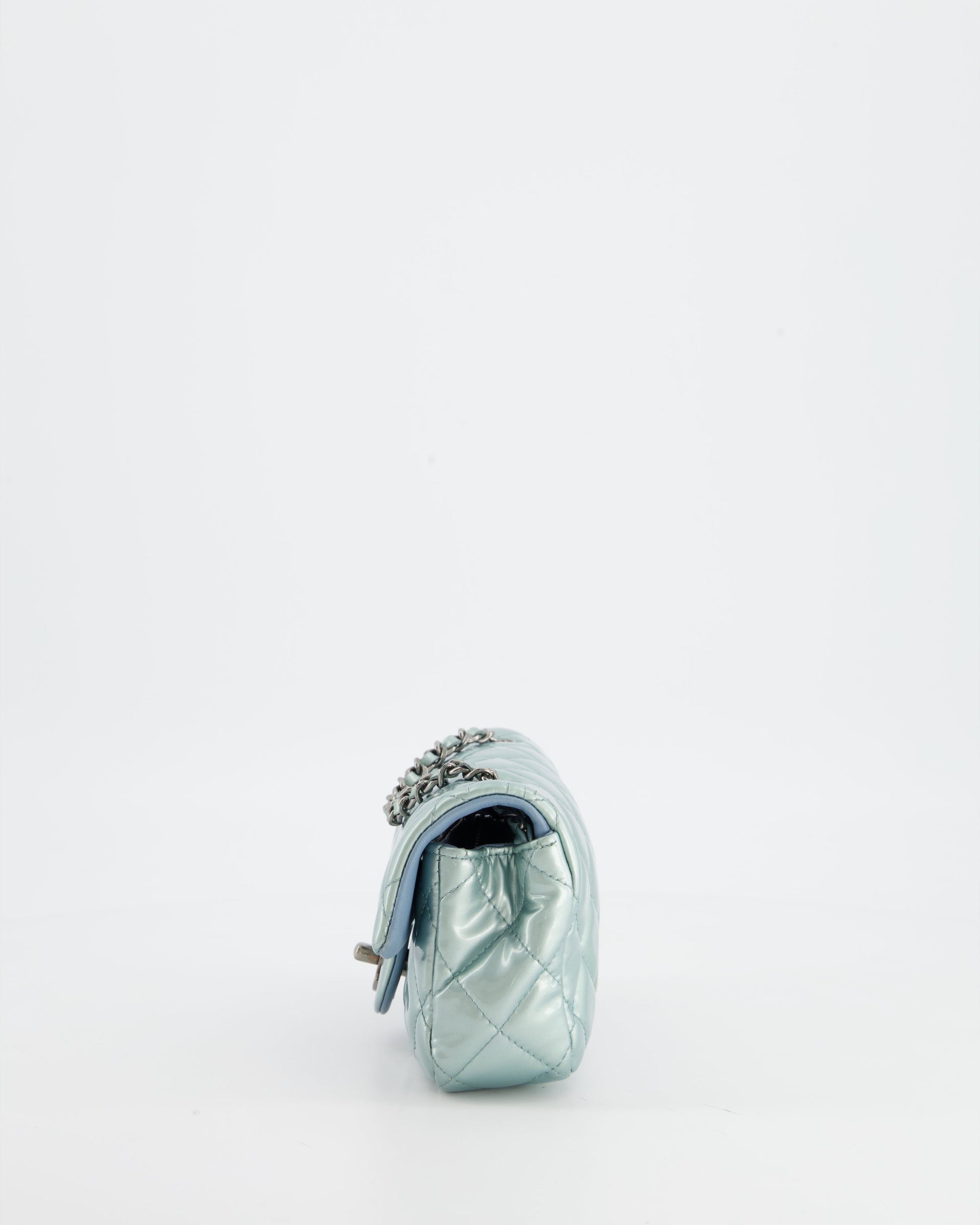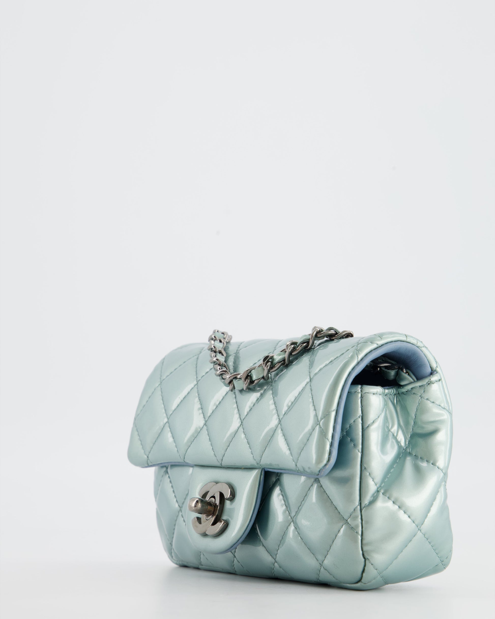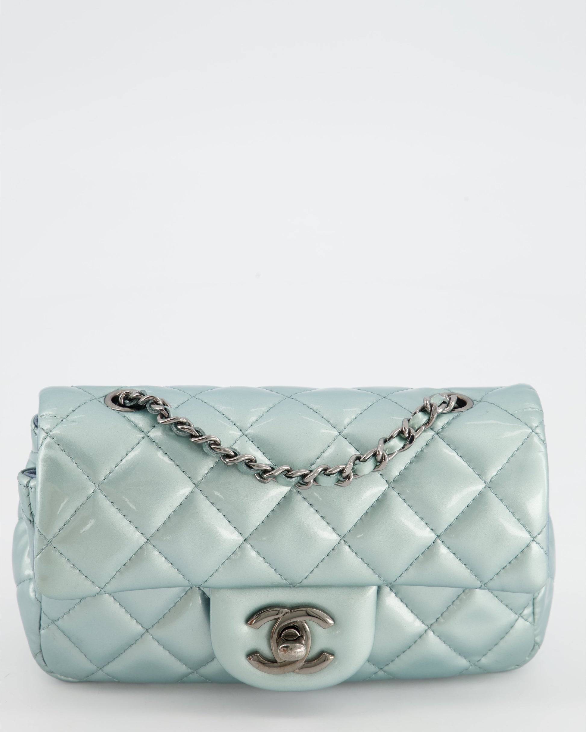 Chanel Pearl Light Blue Mini Rectangular Flap Bag with Ruthenium Hardware