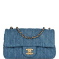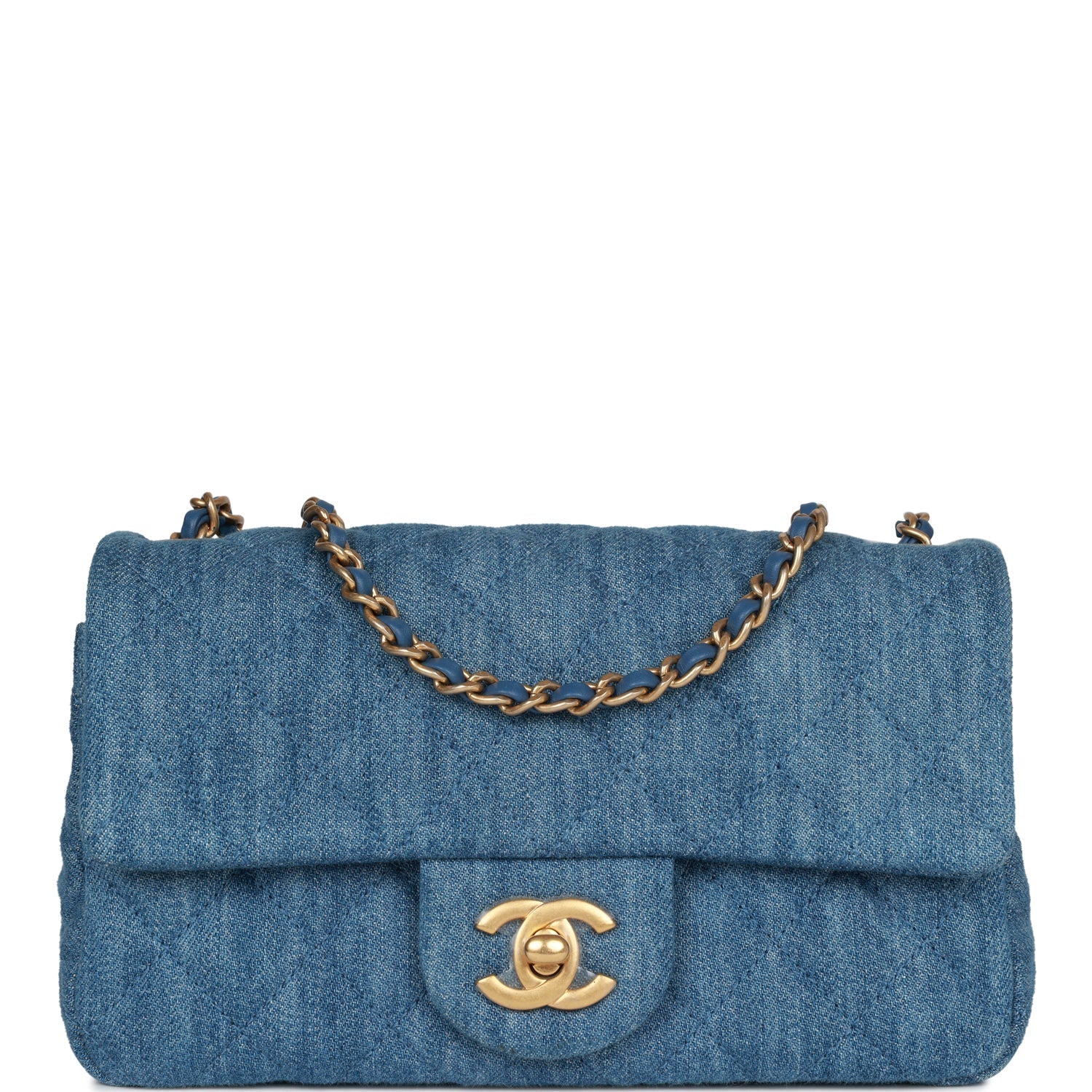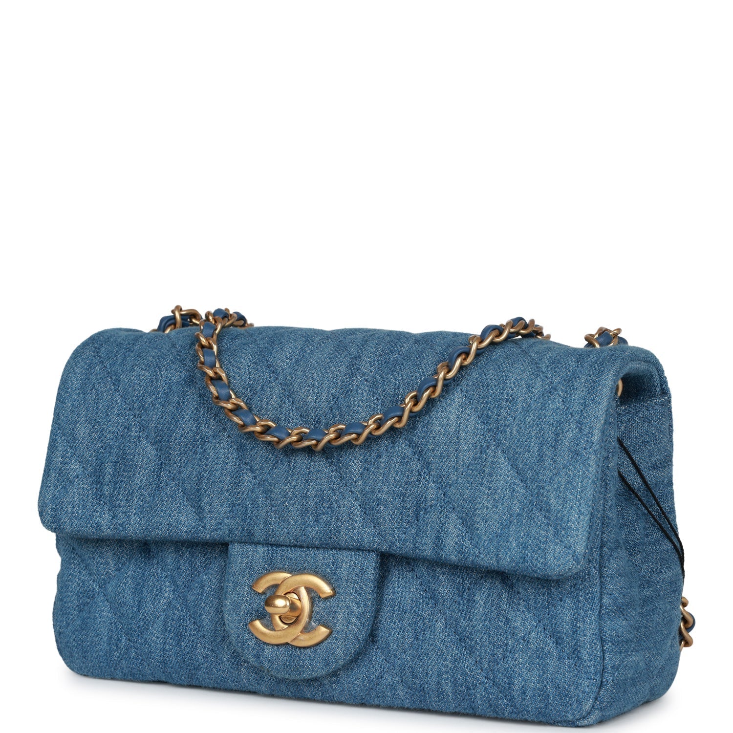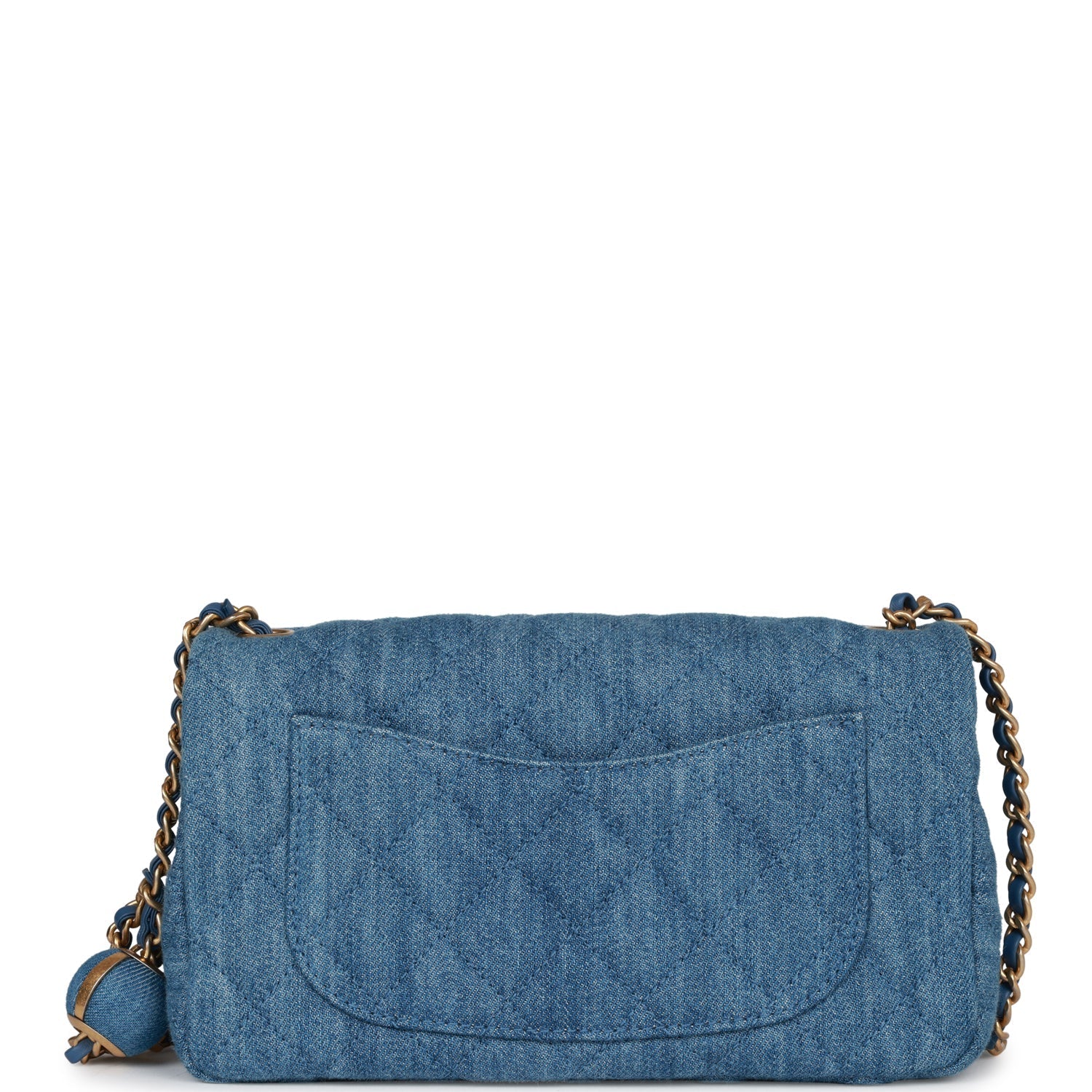 Chanel Pearl Crush Mini Rectangular Flap Bag Blue Denim Lambskin Antique Gold Hardware