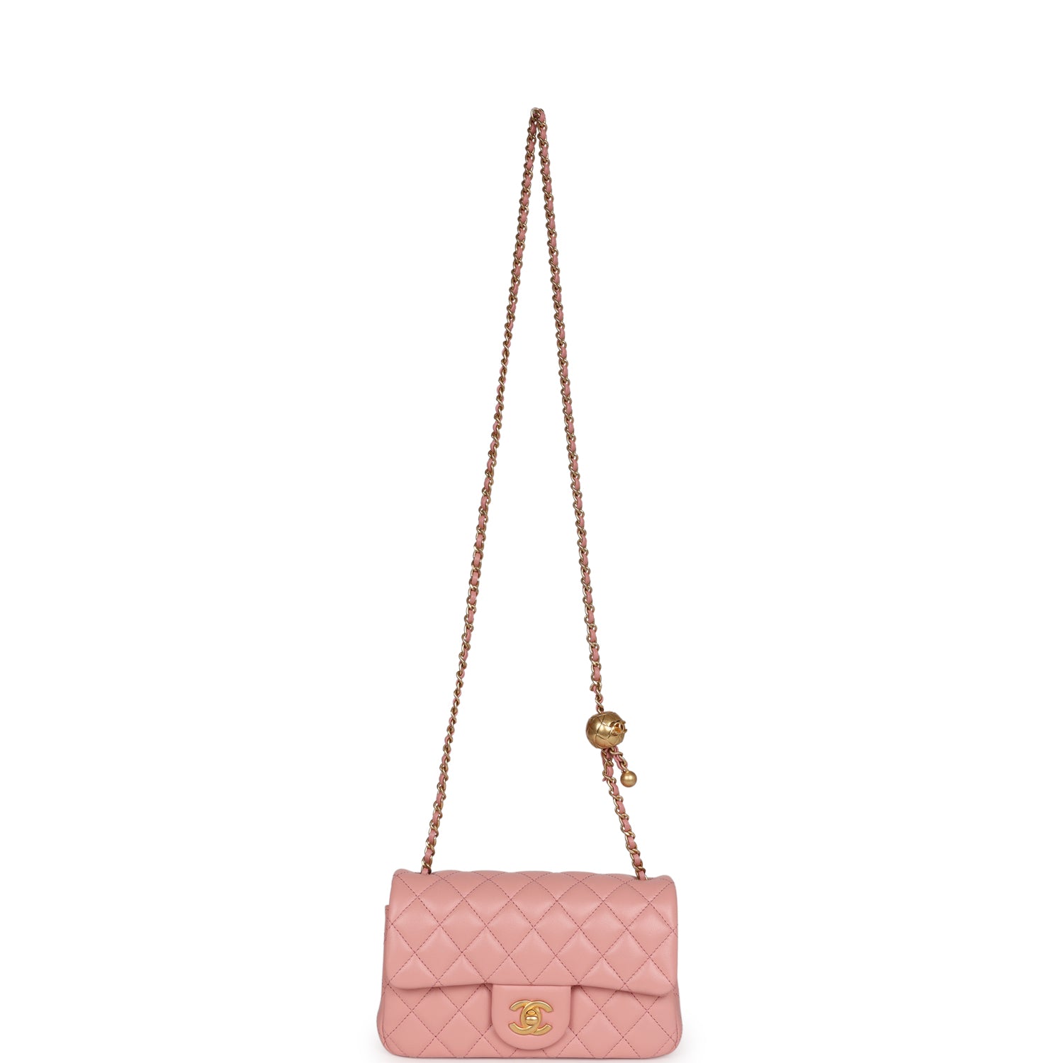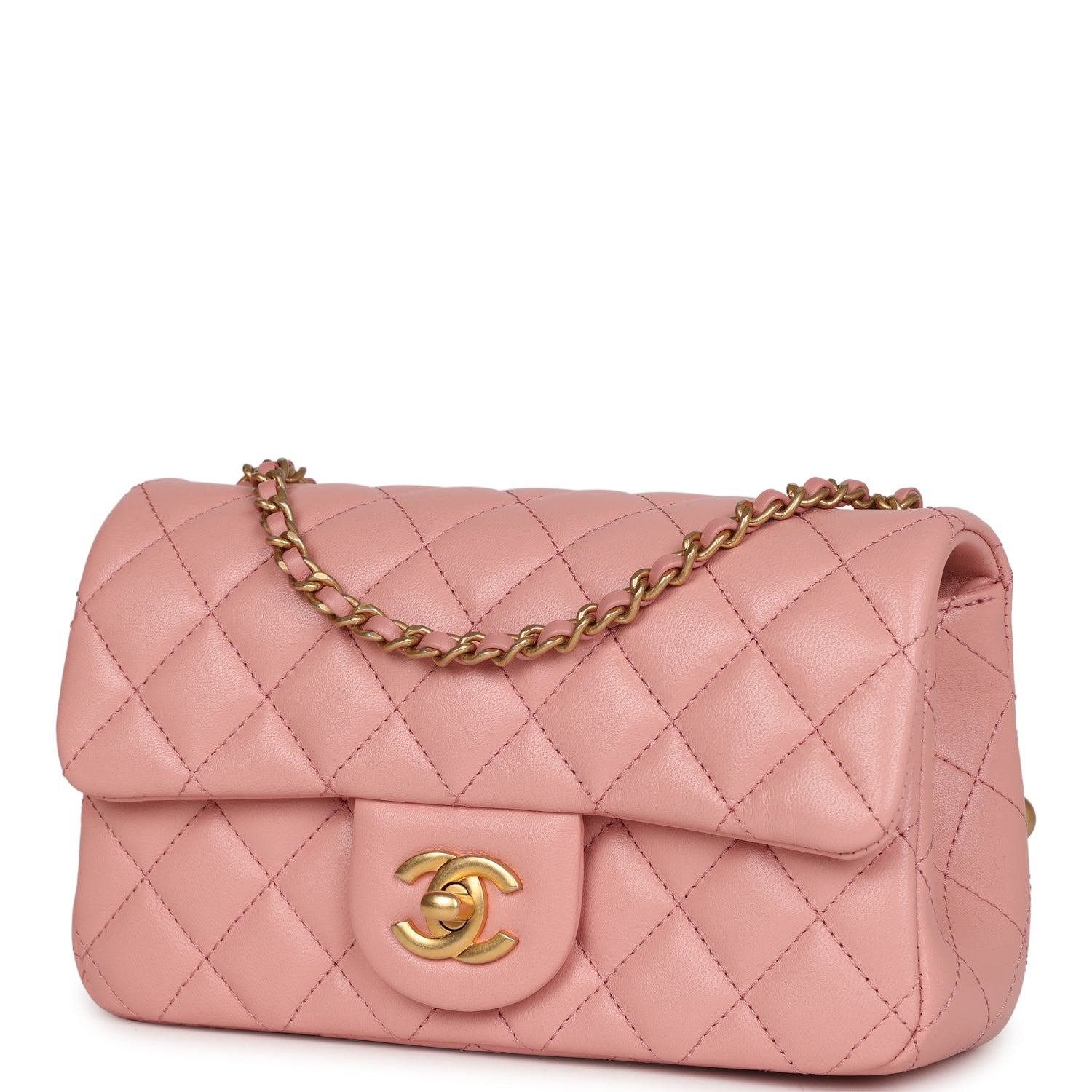 Chanel Pearl Crush Mini Rectangular Flap Dark Pink Lambskin Brushed Gold Hardware