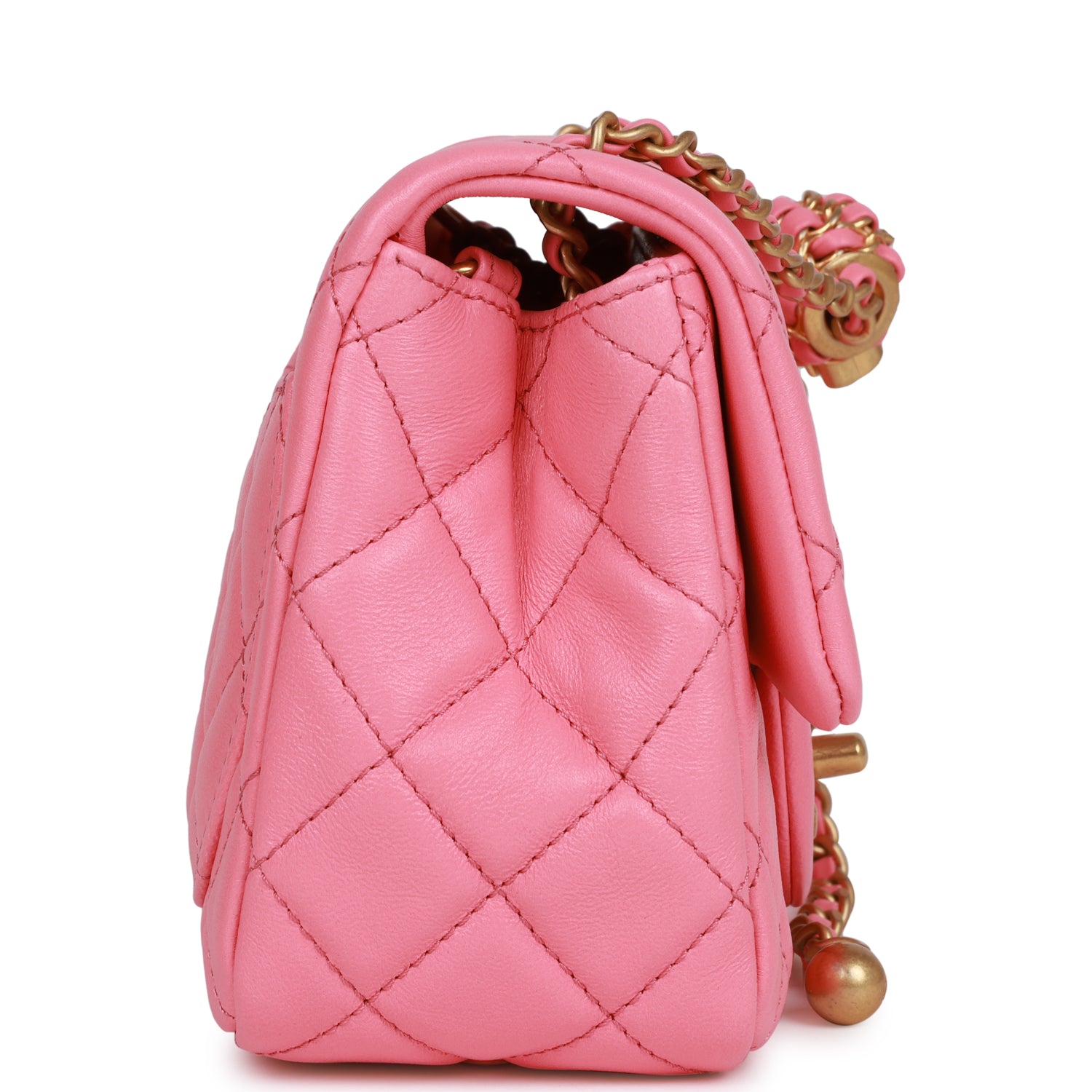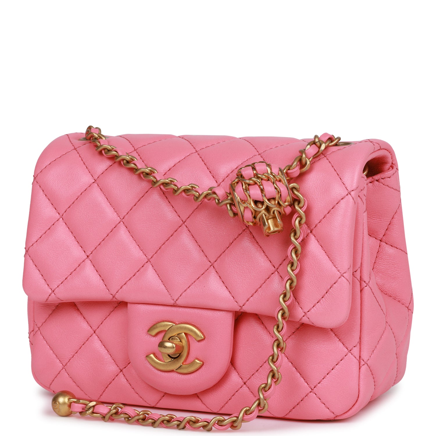 Chanel Pearl Crush Mini Square Flap Bag Pink Lambskin Antique Gold Hardware